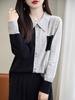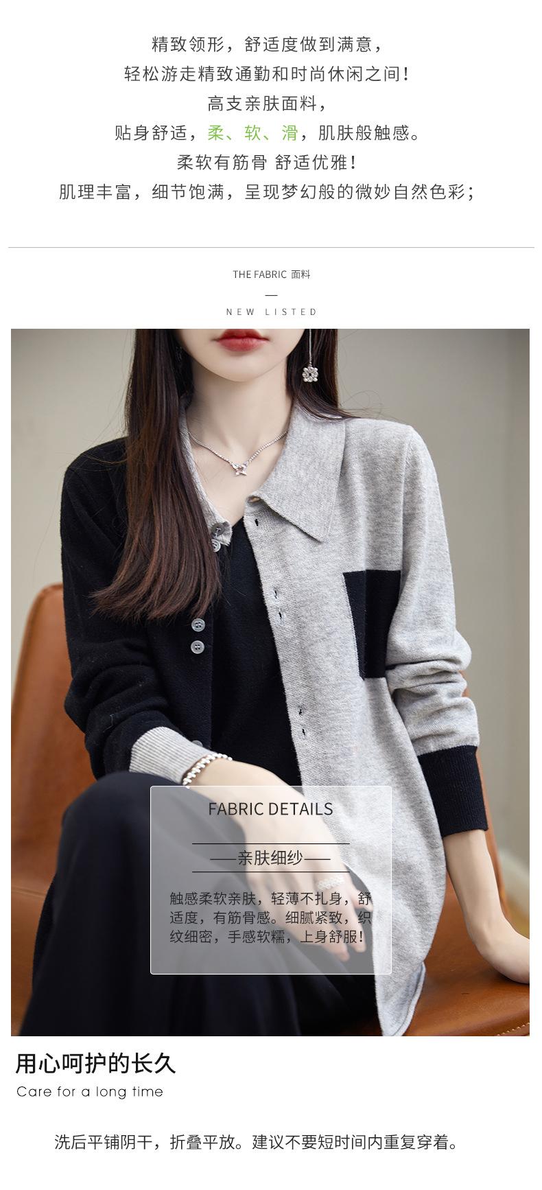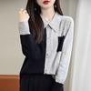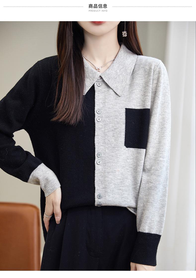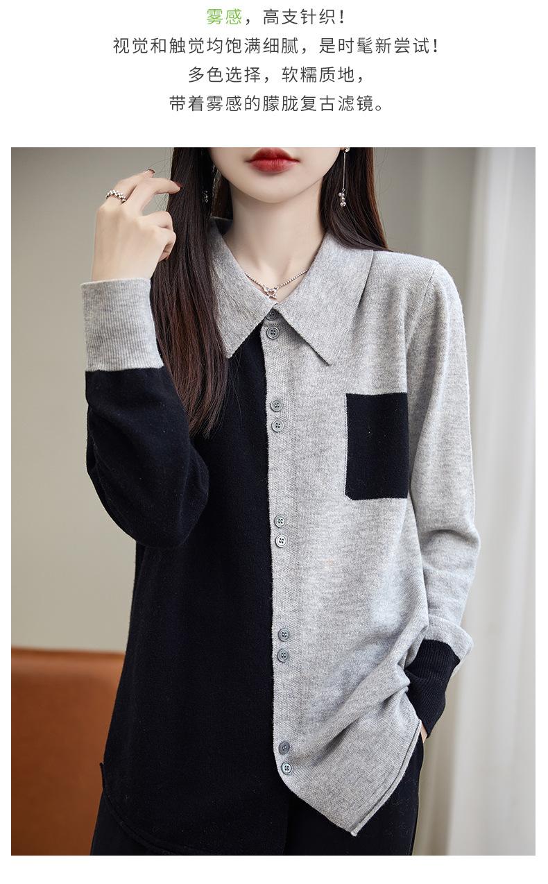 Cárdigan de punto de lana pura con cuello POLO para mujer, elegante, informal, sencillo, holgado, de manga larga, con hebilla que combina con todo.