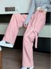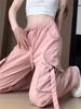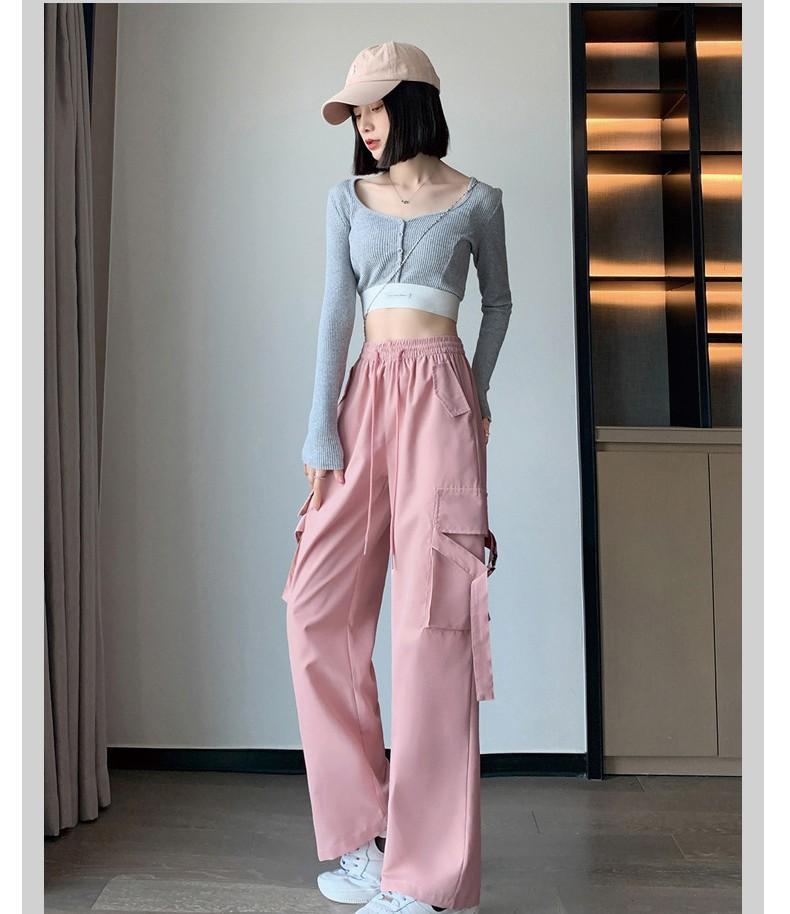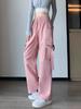 Pantalones de precaución rosa para mujer, primavera y verano 2025, nuevos, cintura alta, adelgazantes, holgados, pierna ancha, estrechos, informales, americanos, de secado rápido, deportivos.