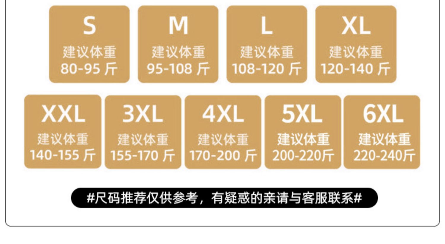 S, M, L, XL, 2XL, 3XL, 4XL, 5XL, 6XL