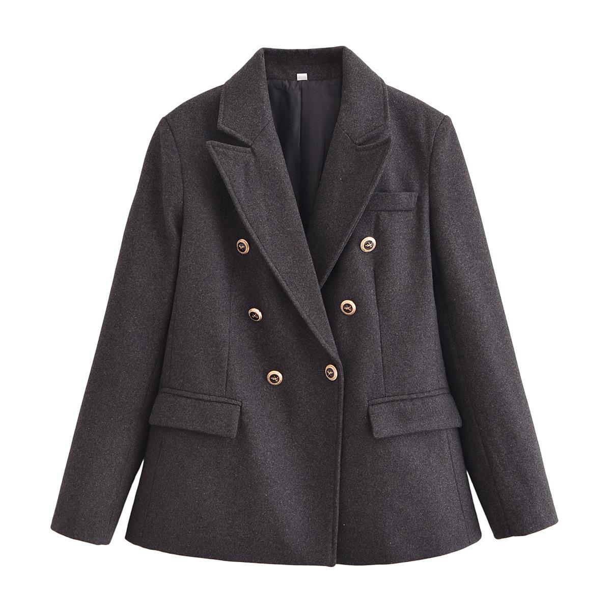 Chaqueta de traje cruzada de moda europea y americana con hombreras y manga larga, doble botonadura, nueva primavera 2025 E5240450