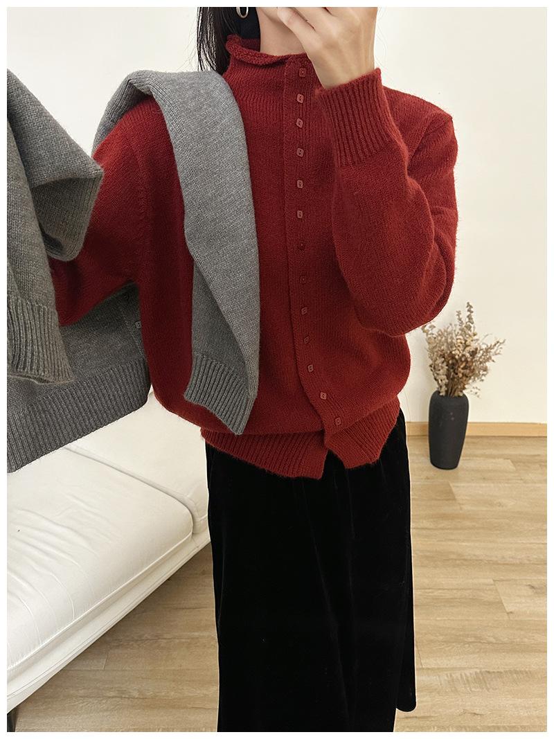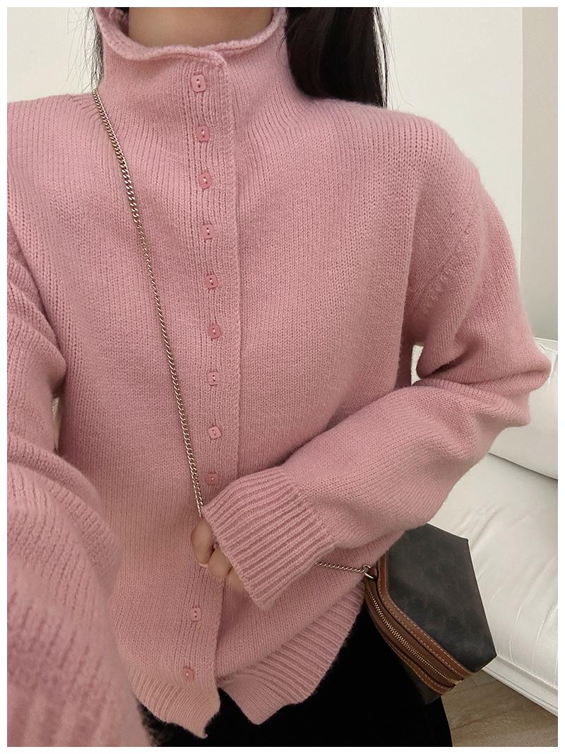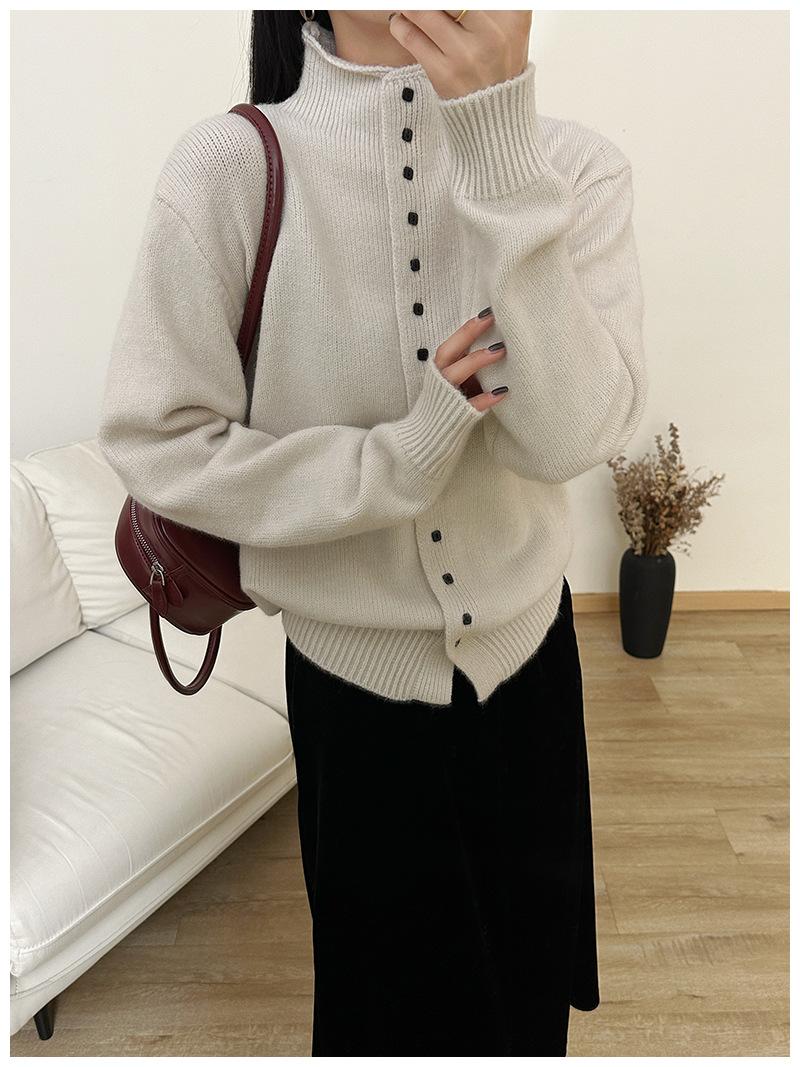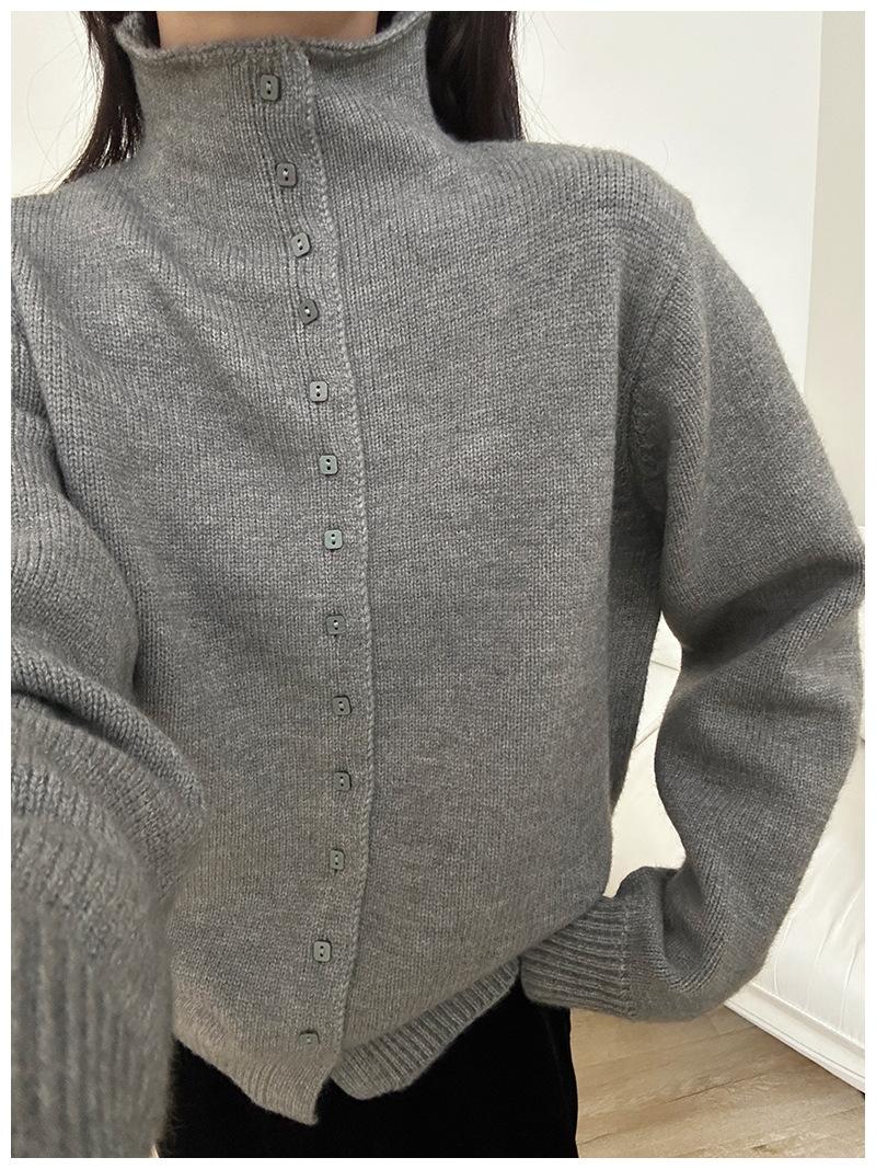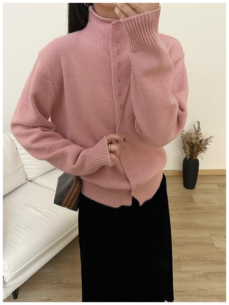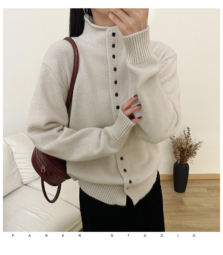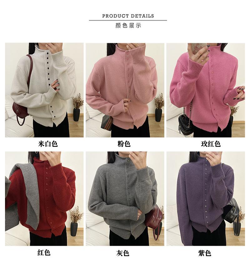 Abrigo Suéter de Cuello Alto con Hebilla Estilo Coreano Estilo Perezoso para Mujer Otoño e Invierno Suelto Casual Ajustado Básico de Punto Cárdigan