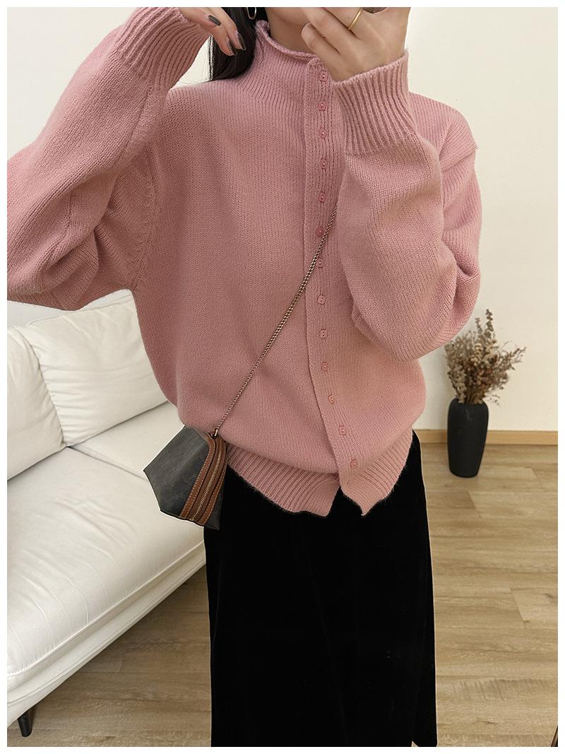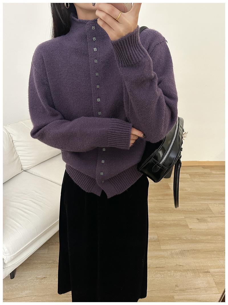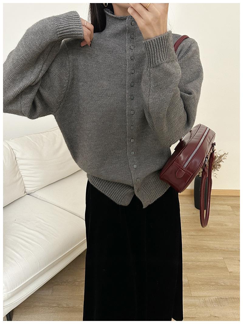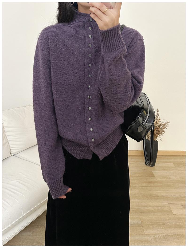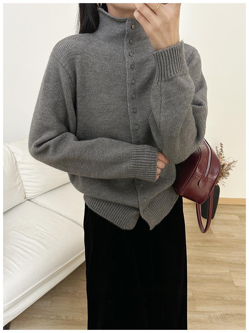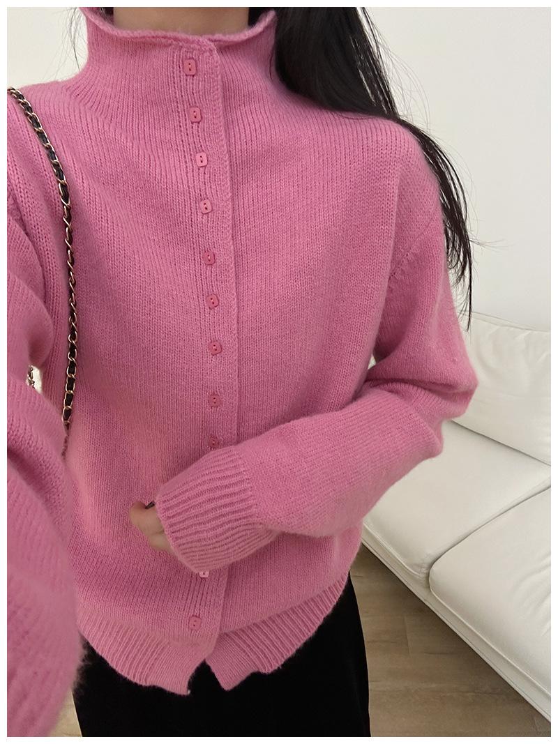 Abrigo Suéter de Cuello Alto con Hebilla Estilo Coreano Estilo Perezoso para Mujer Otoño e Invierno Suelto Casual Ajustado Básico de Punto Cárdigan
