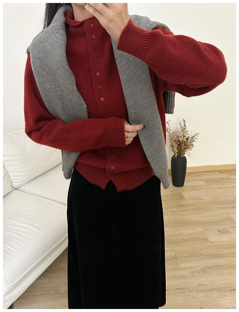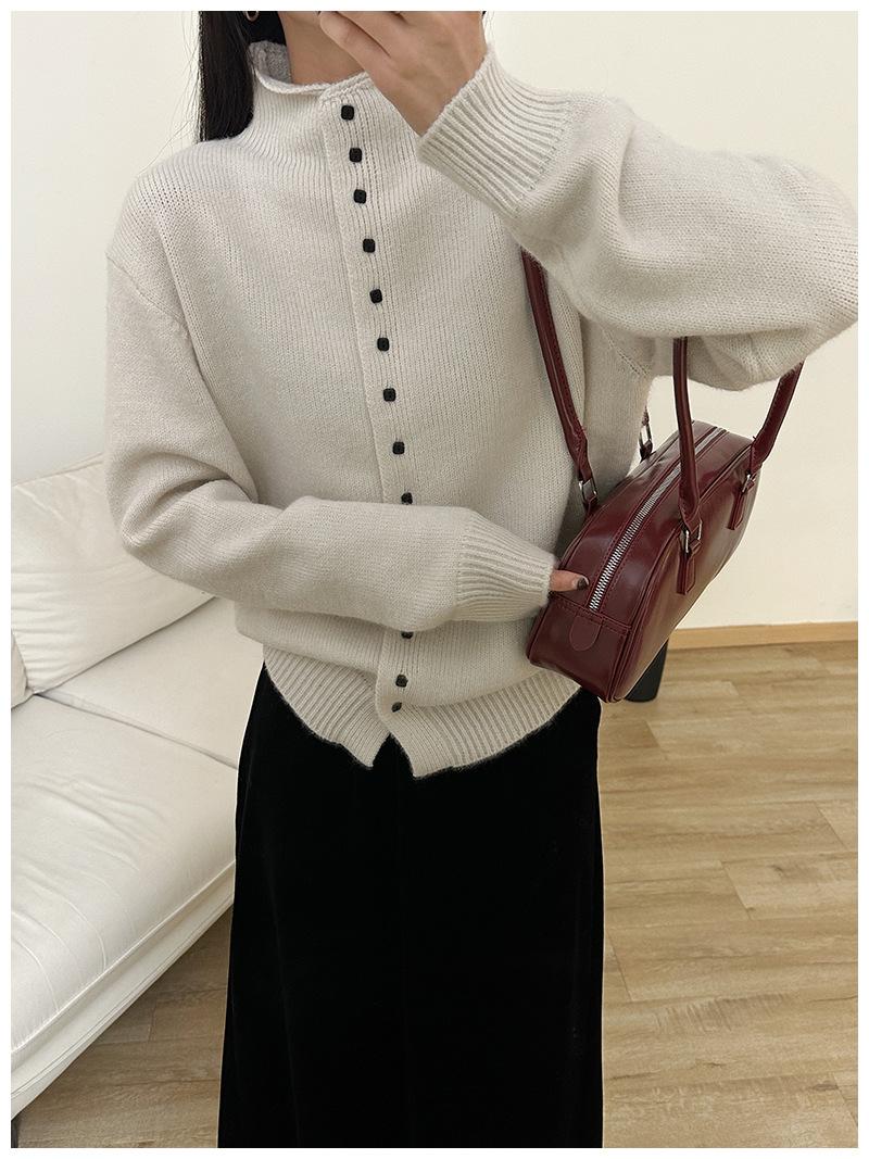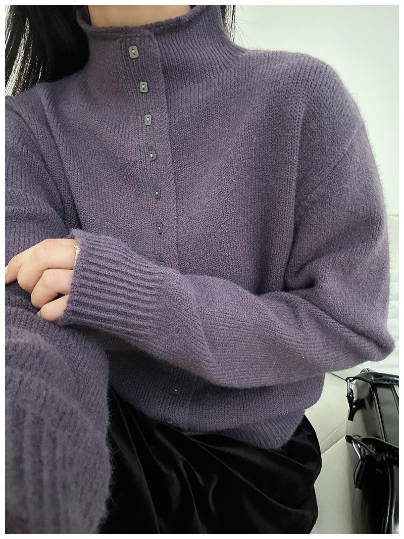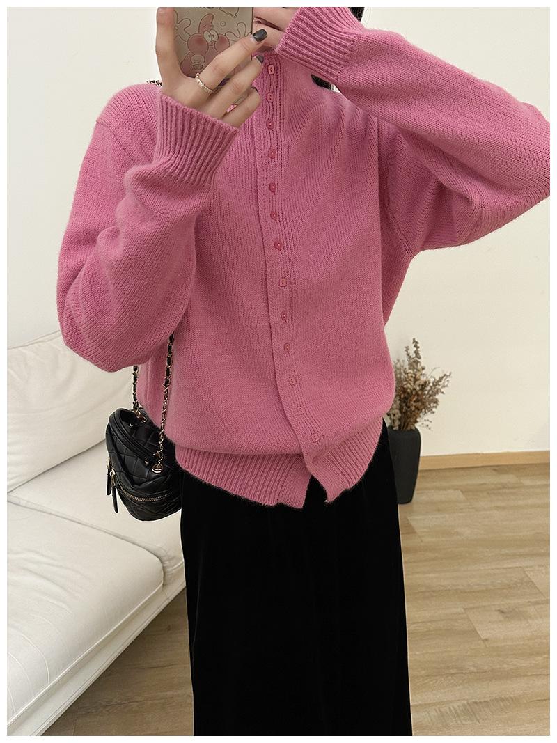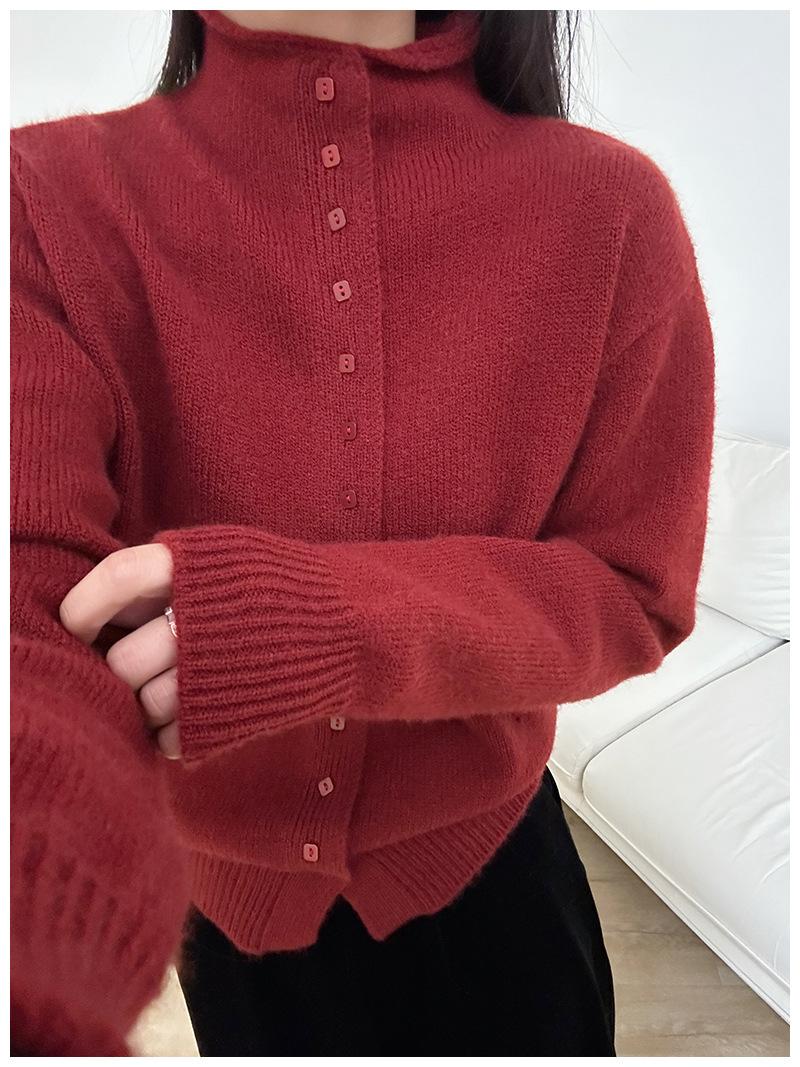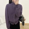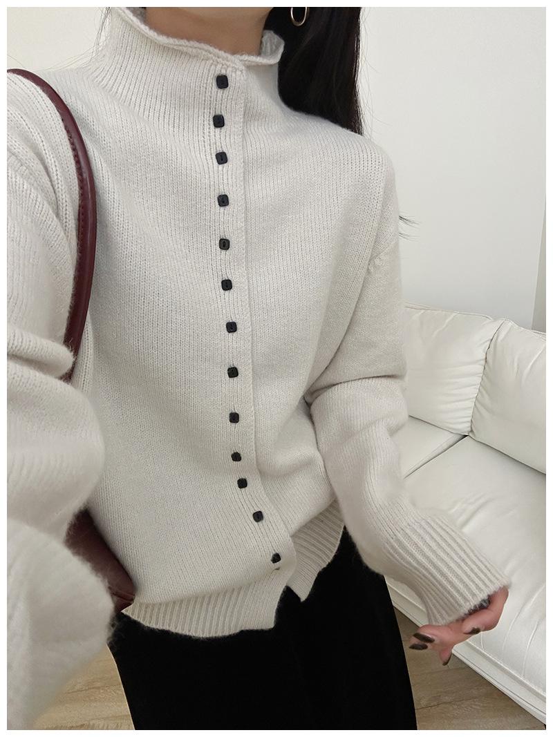 Abrigo Suéter de Cuello Alto con Hebilla Estilo Coreano Estilo Perezoso para Mujer Otoño e Invierno Suelto Casual Ajustado Básico de Punto Cárdigan