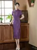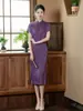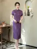 Cheongsam de madre de alta calidad, largo, primavera y verano, nuevo, diario, retro, mejorado, nuevo, temperamento chino, vestido fino púrpura