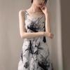 Vestido con tirantes y pintura de tinta, temperamento, gran marca, alta gama, exquisito, estilo retro nacional, nuevo estilo chino, falda adelgazante de verano para mujer