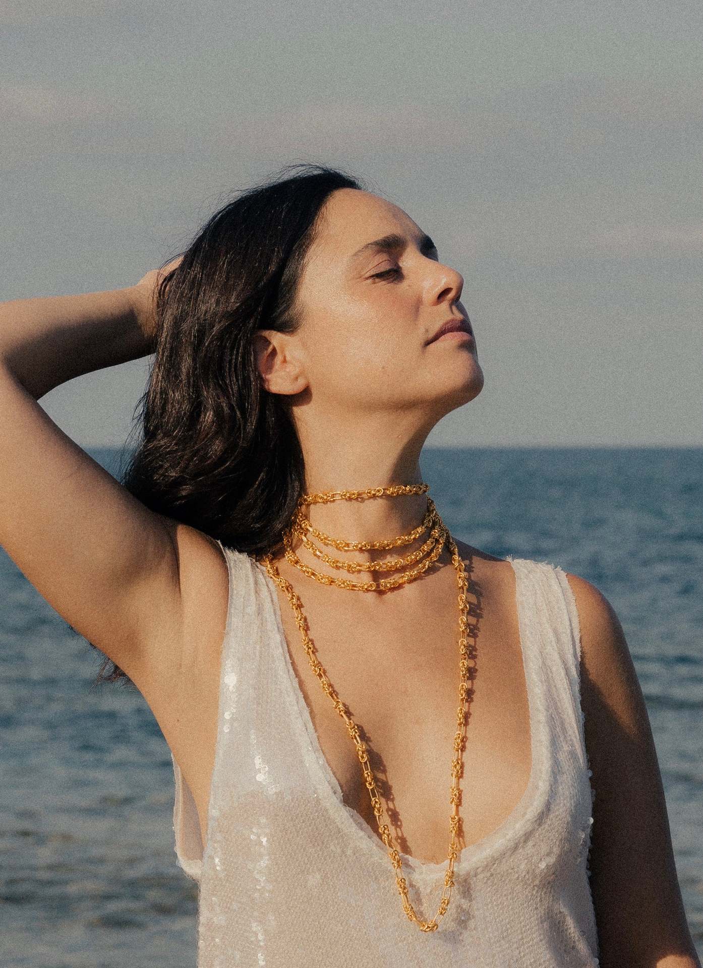 Cuello alto y diseño sin mangas: corte tridimensional ligeramente inclinado a 20°, modificando la línea del cuello, hombros rectos + cuello de cisne se crean en un segundo