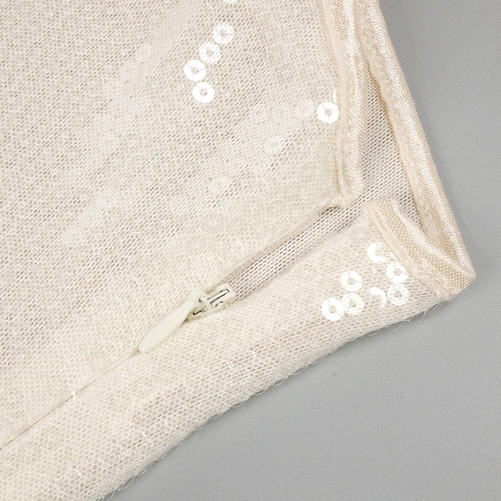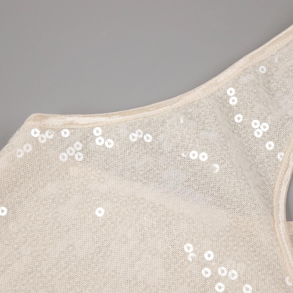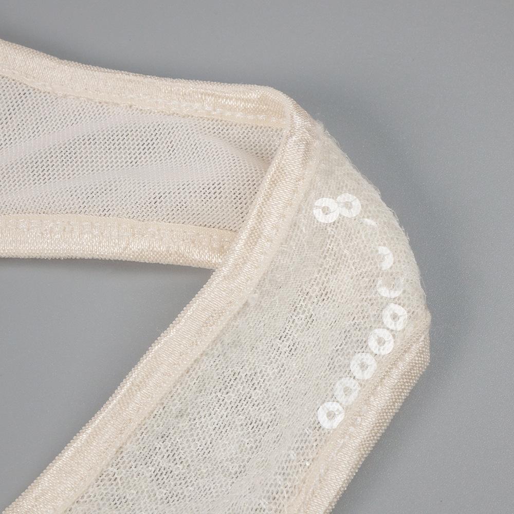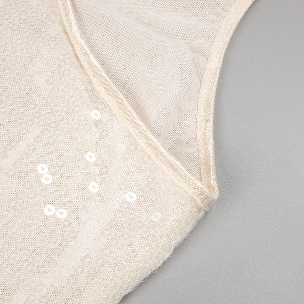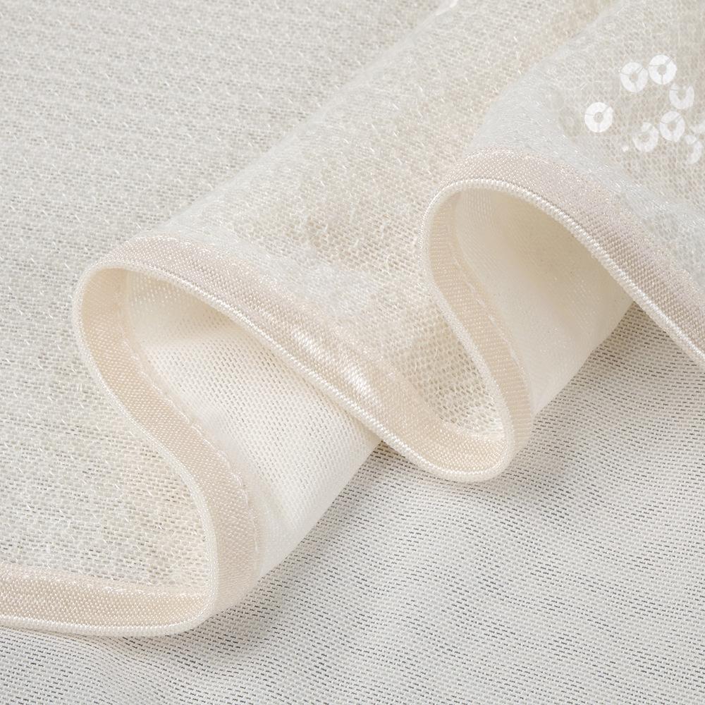 Tejido nacarado dorado claro: Adoptando tecnología compuesta de lentejuelas respetuosa con el medio ambiente, presenta un brillo delicado y fluido bajo la luz, y no irrita la piel ni se decolora.