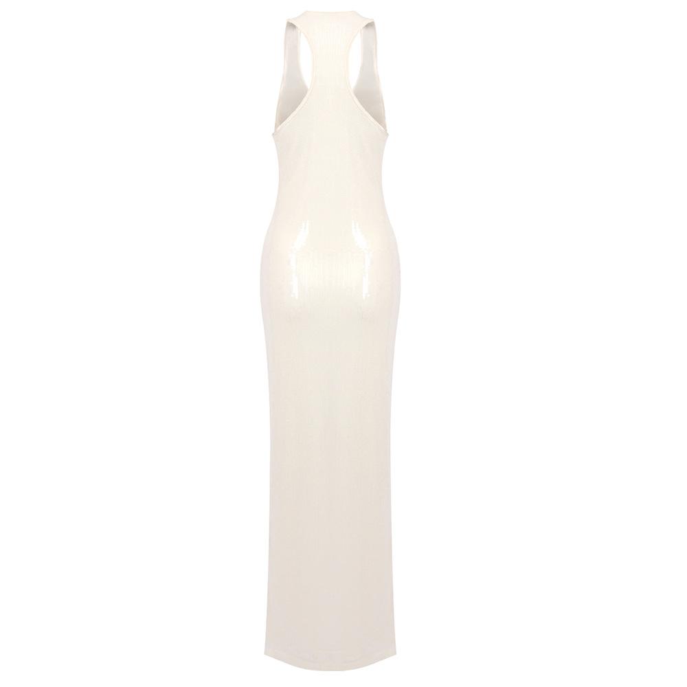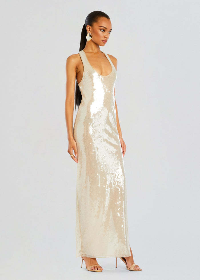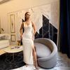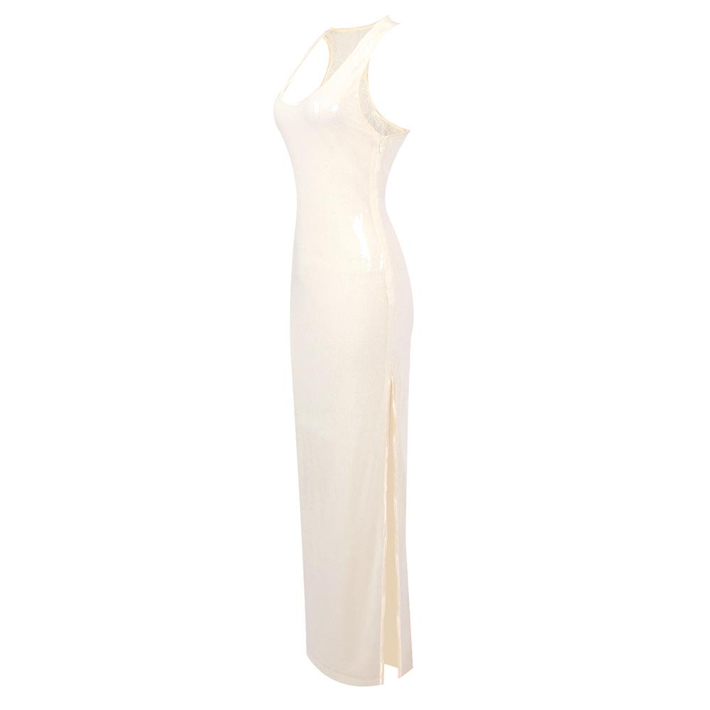 ✨Homologación transfronteriza vestido dorado claro con abertura alta cuello alto sin mangas ajustado vestido de noche falda larga nacarada suministro directo de fábrica✨