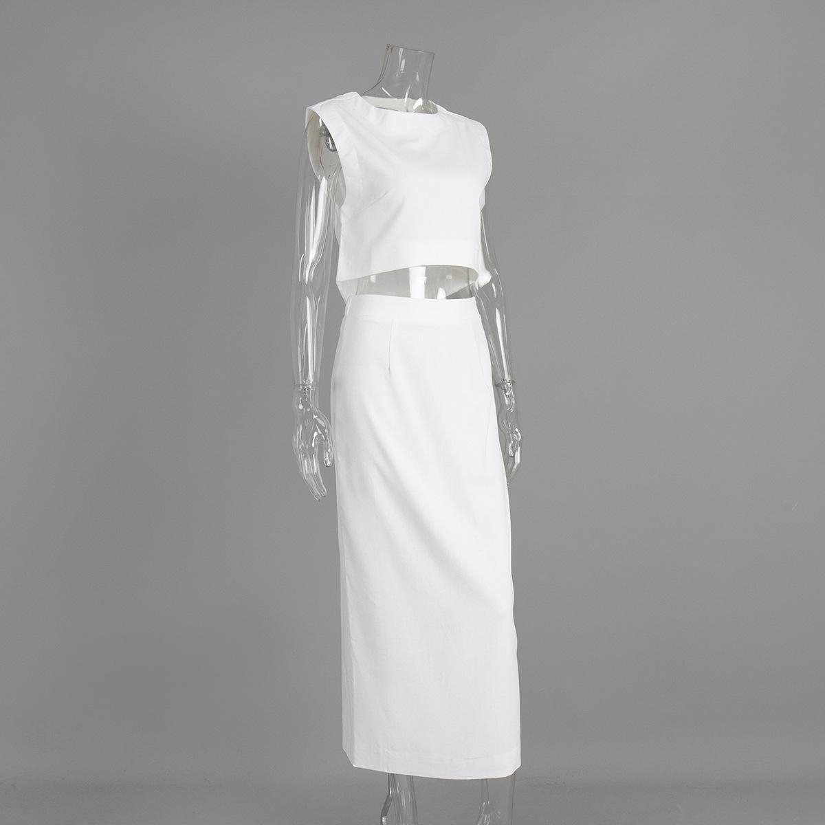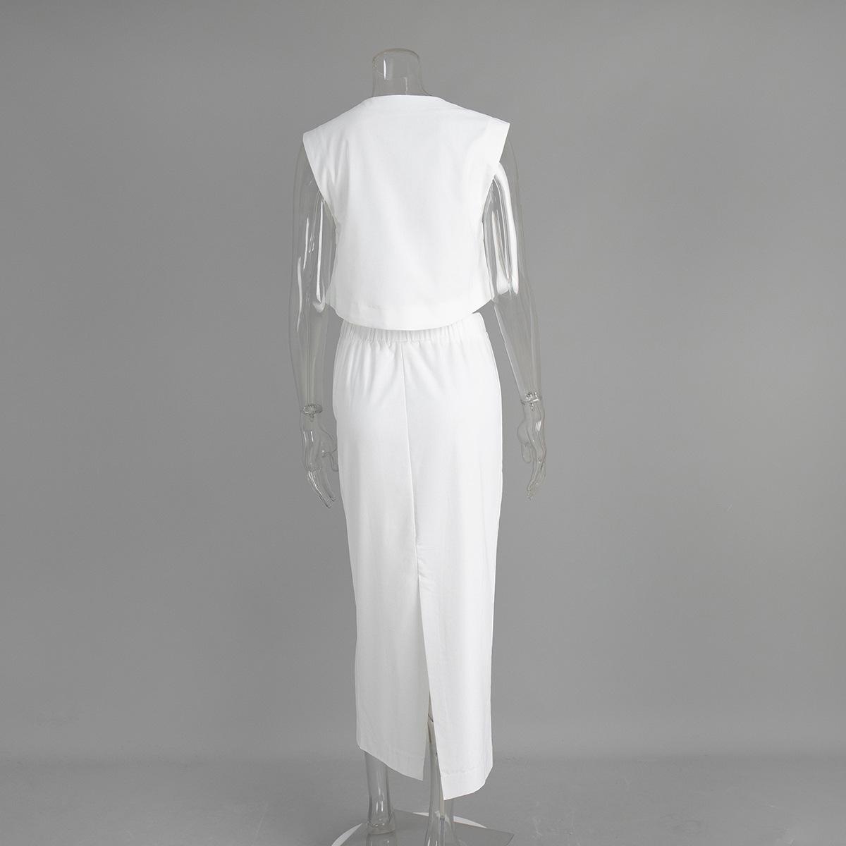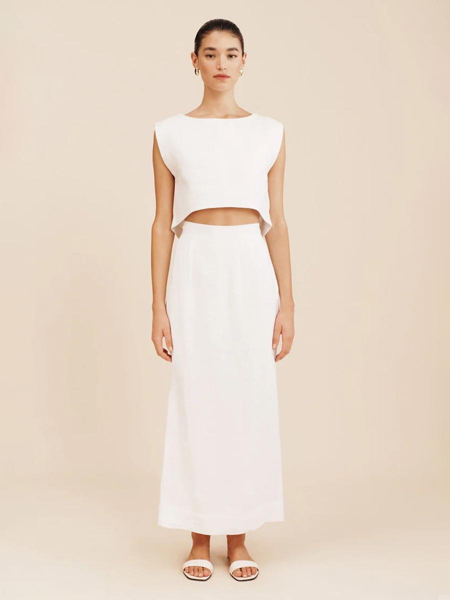 Traje de falda de chaleco de algodón y lino transfronterizo Europa y Estados Unidos 2025 primavera y verano nuevo traje de falda INS traje de ocio para mujer