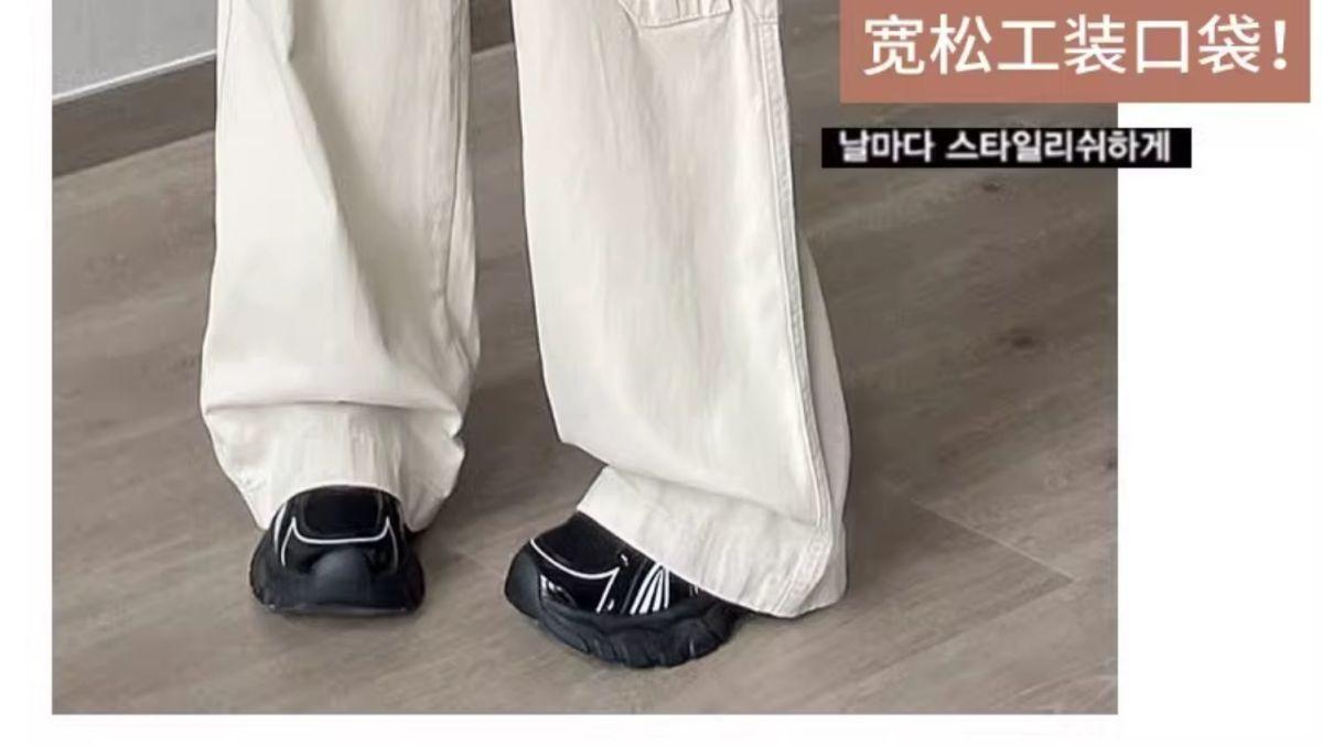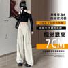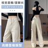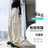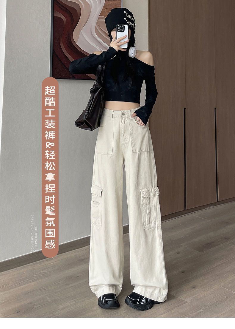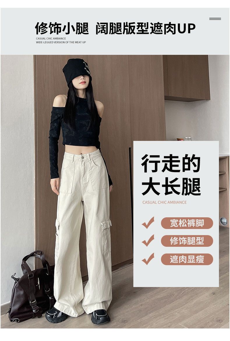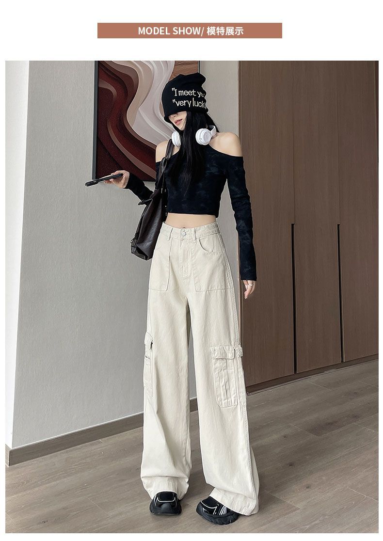 Diseño de cintura alta que cubre el sentido de la primavera. Nueva hermana gordita que cubre los pantalones vaqueros de pierna ancha. Ropa de mujer suelta que luce alta y delgada.