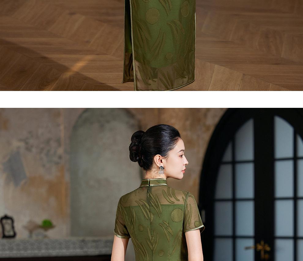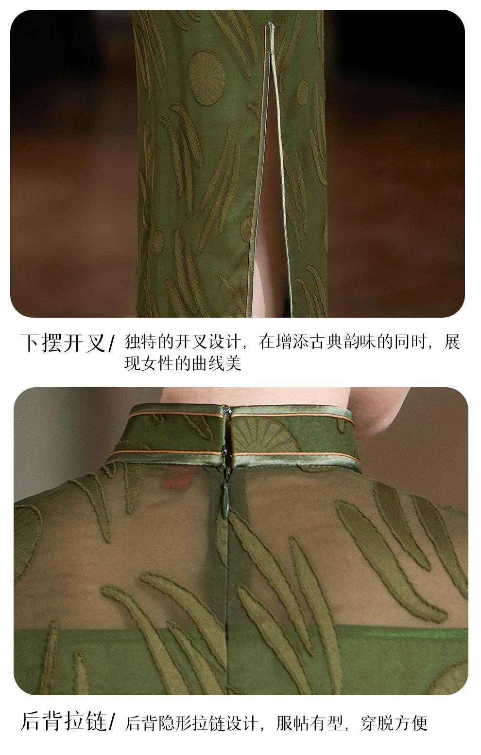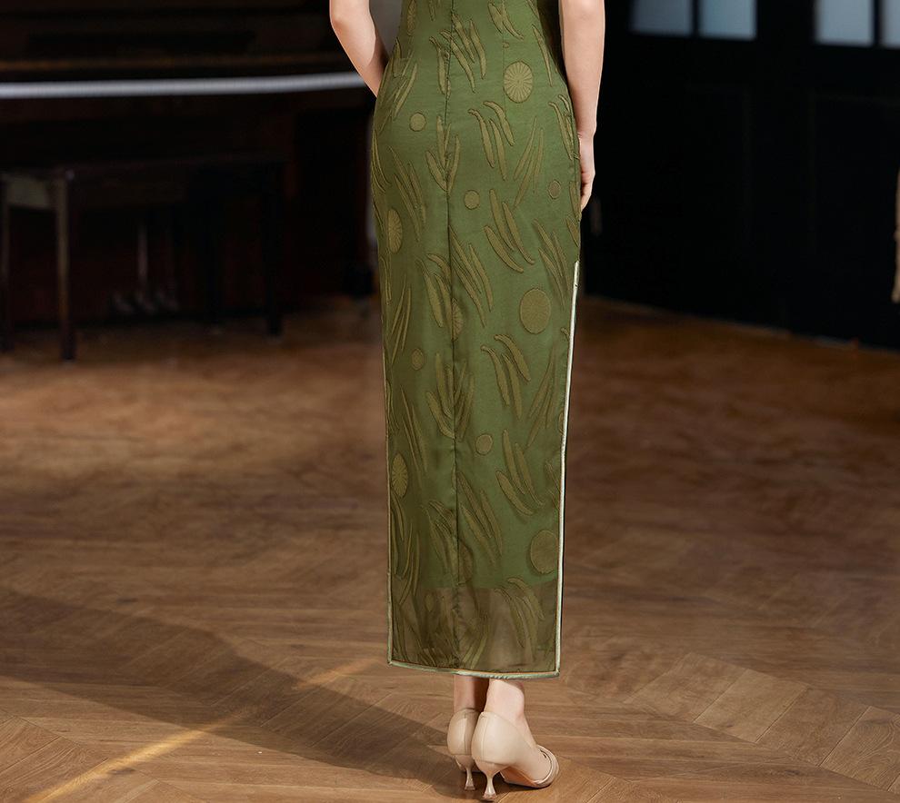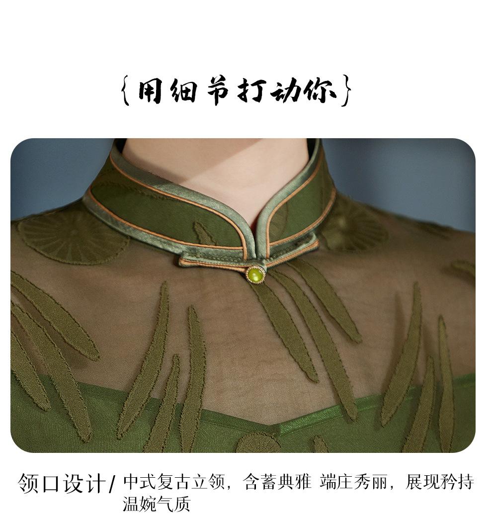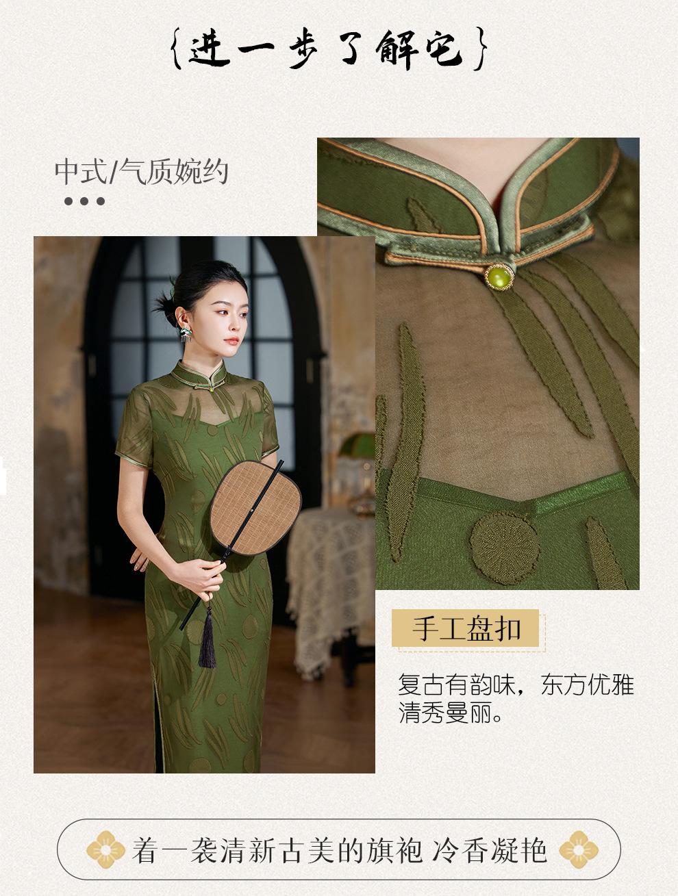 2025 Primavera y Verano Nuevo Cheongsam Verde Vestido Modificado Antiguo Hilo Ling Artesanía de Flores Quemadas Nuevo Estilo Chino Estilo Nacional Adelgazante