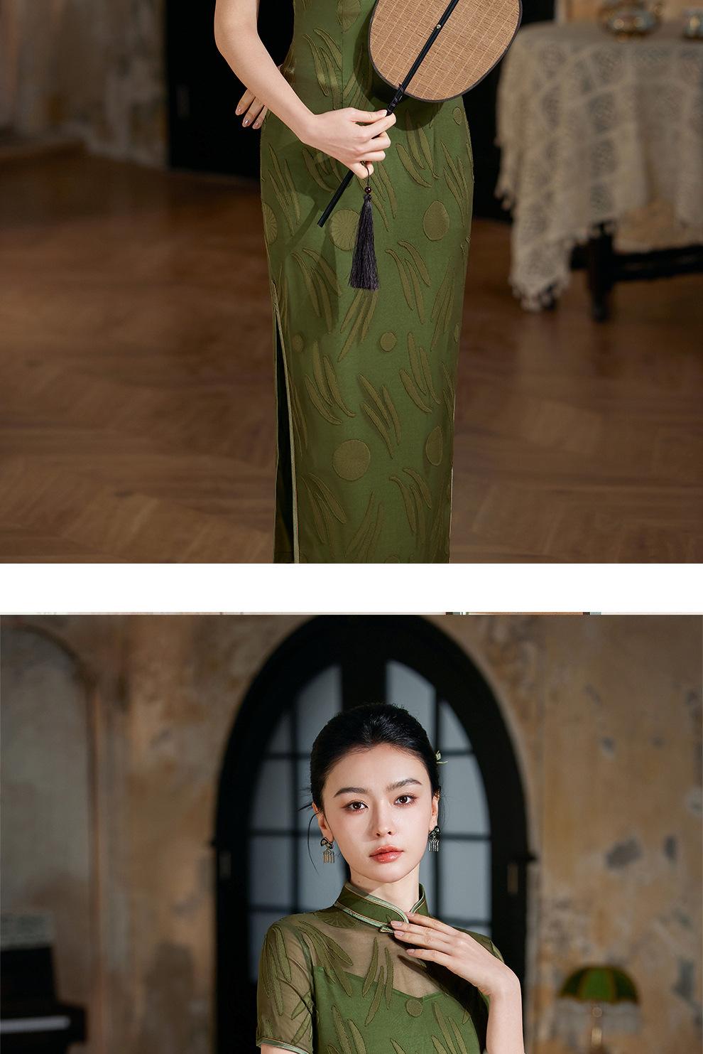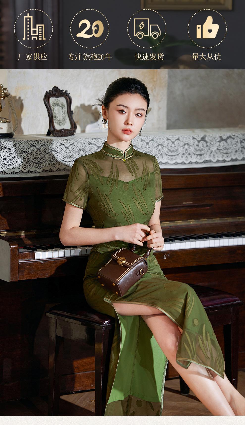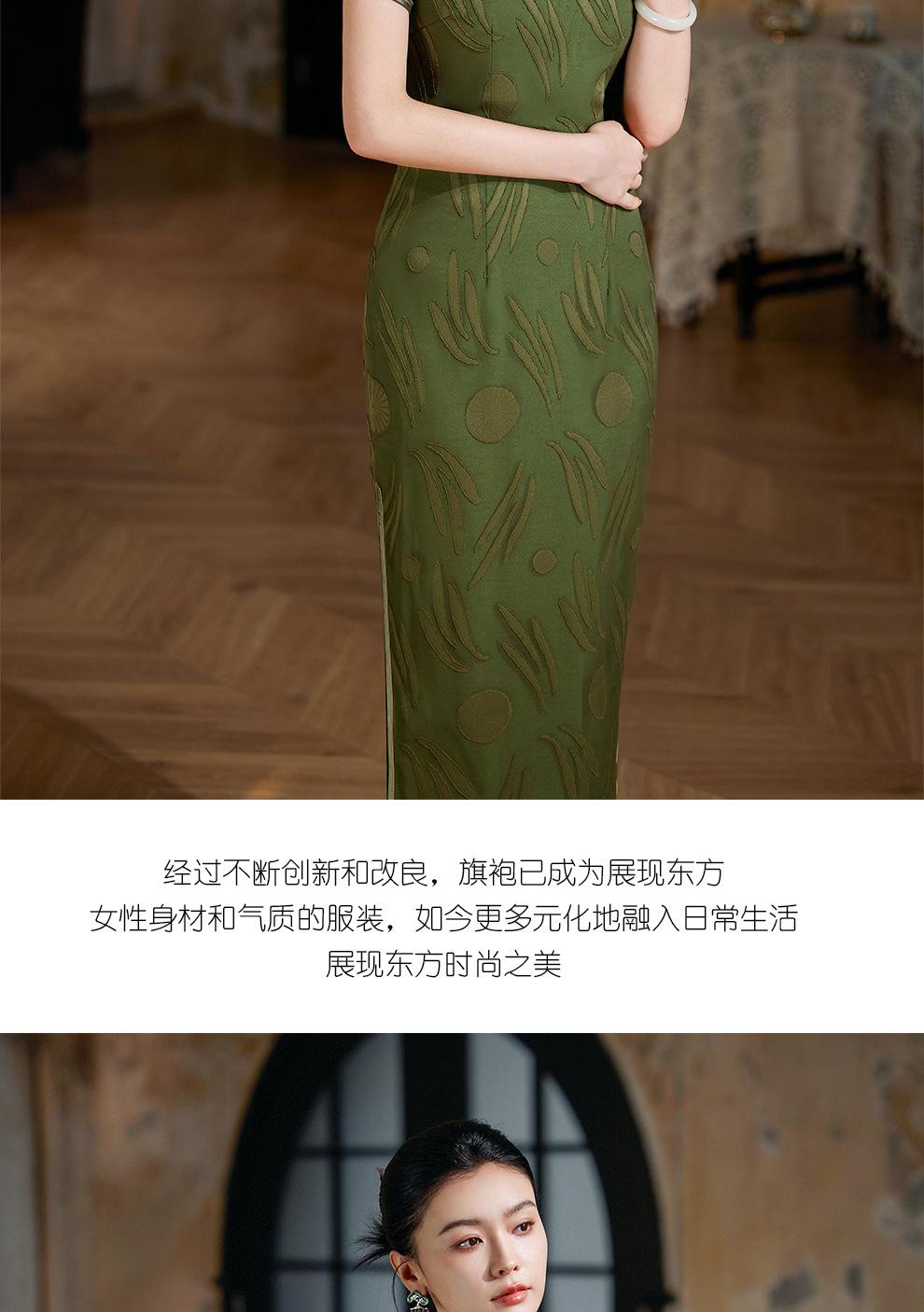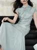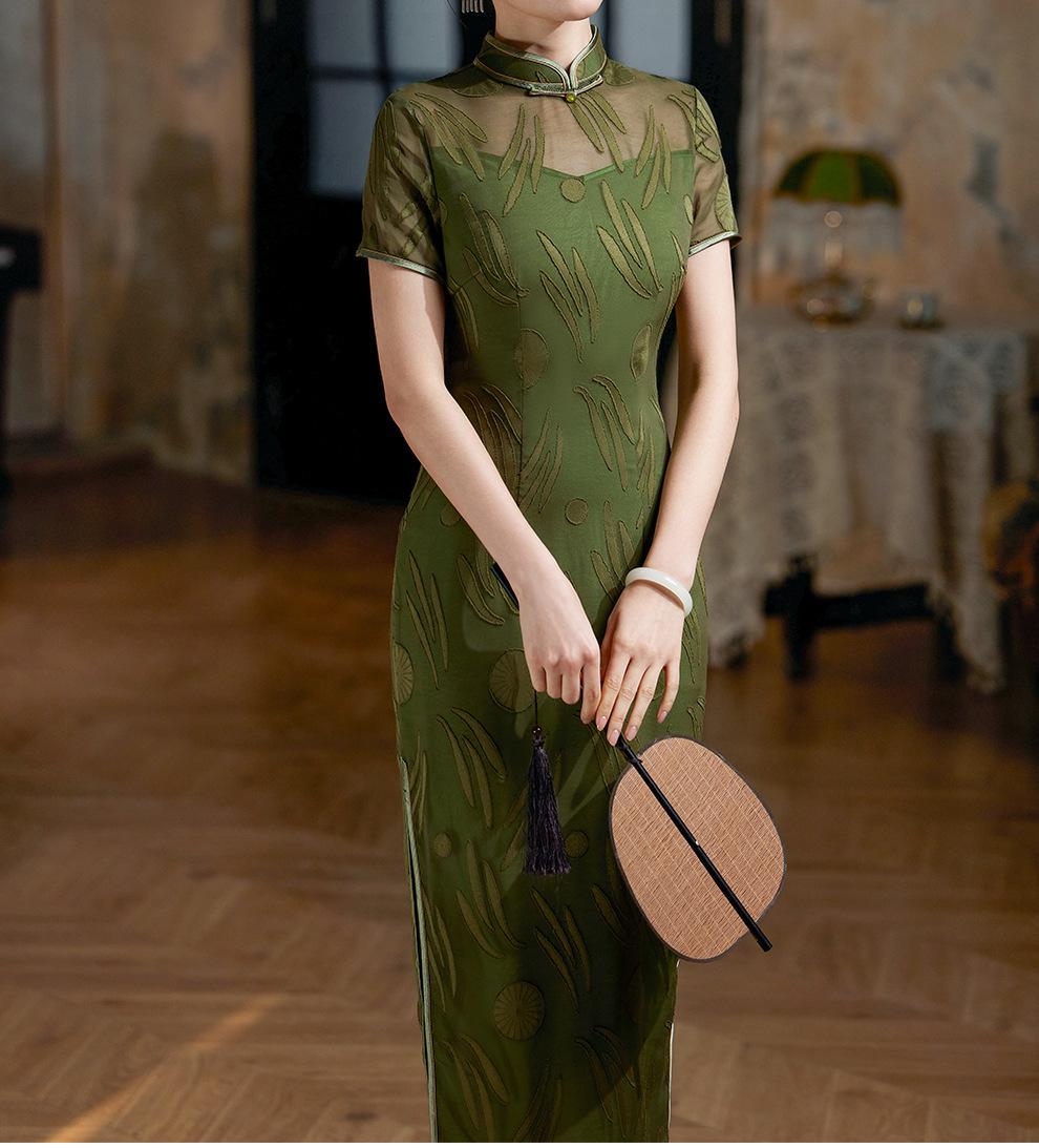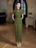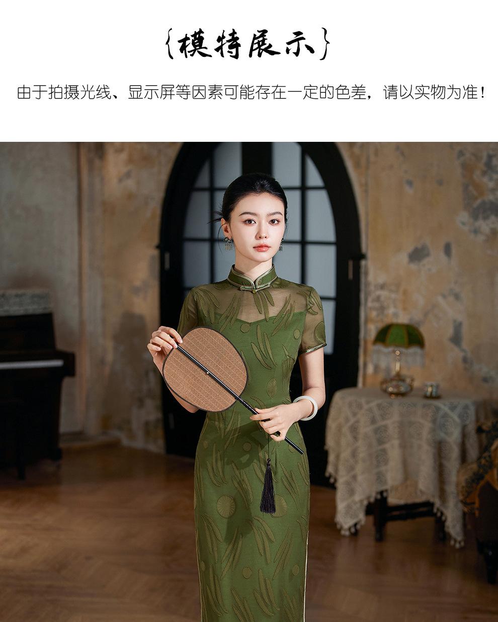 2025 Primavera y Verano Nuevo Cheongsam Verde Vestido Modificado Antiguo Hilo Ling Artesanía de Flores Quemadas Nuevo Estilo Chino Estilo Nacional Adelgazante