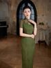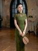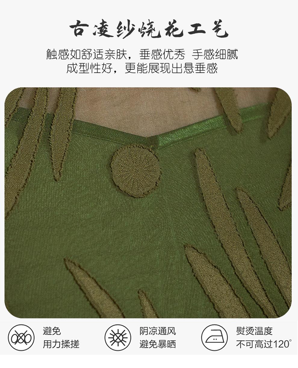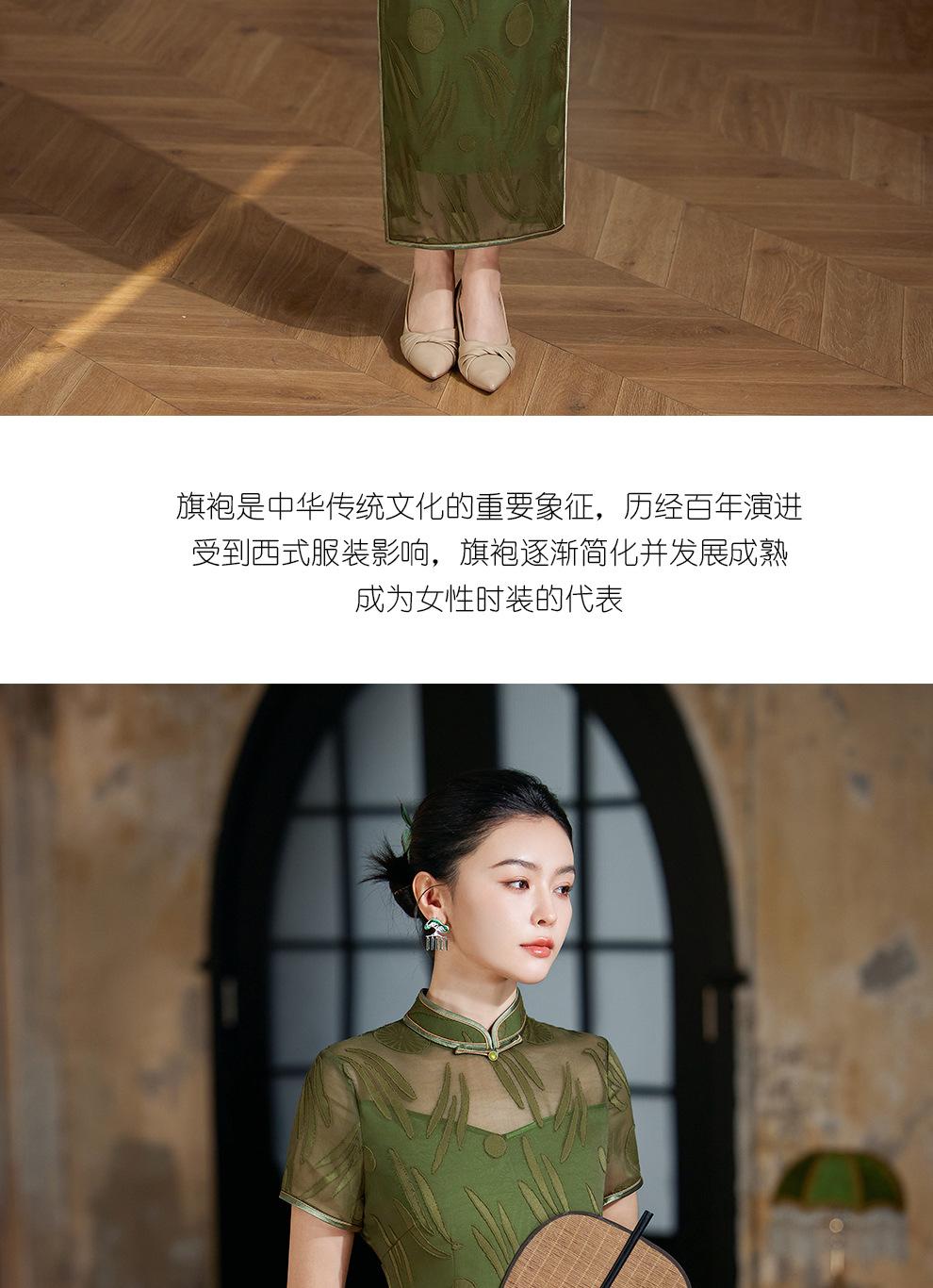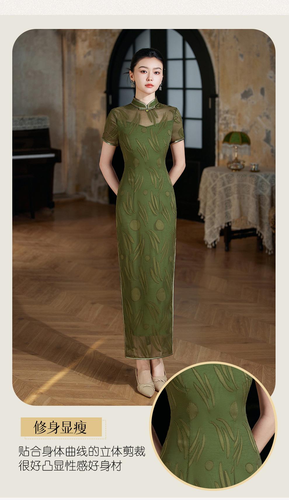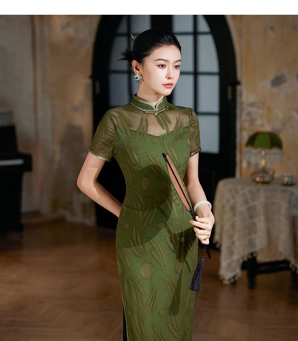 2025 Primavera y Verano Nuevo Cheongsam Verde Vestido Modificado Antiguo Hilo Ling Artesanía de Flores Quemadas Nuevo Estilo Chino Estilo Nacional Adelgazante