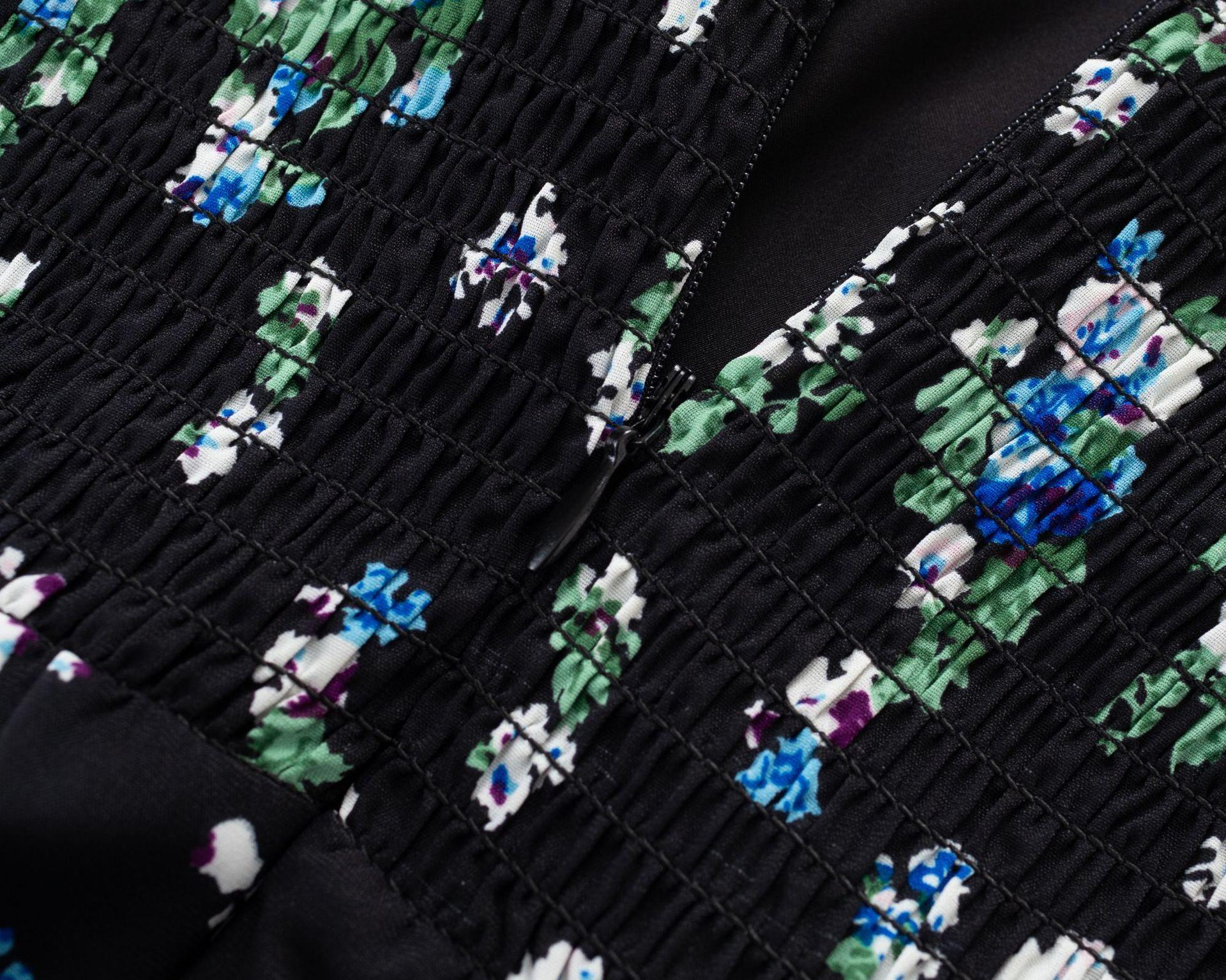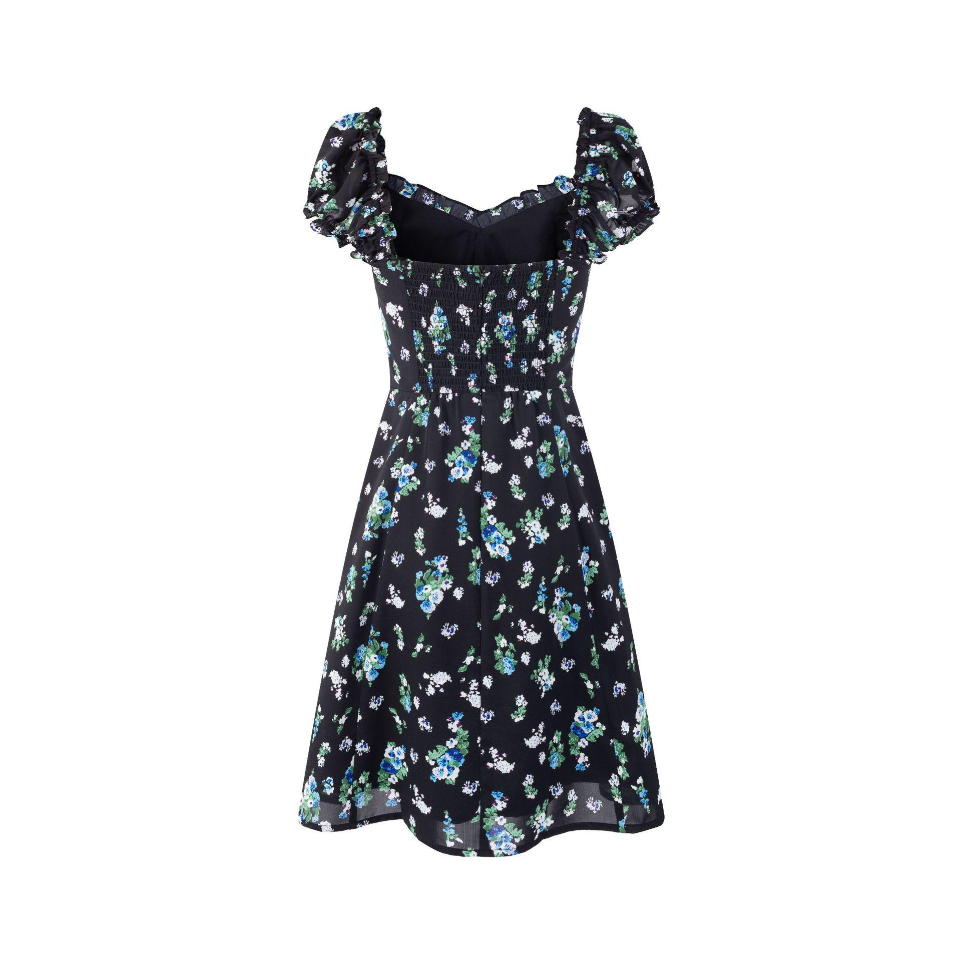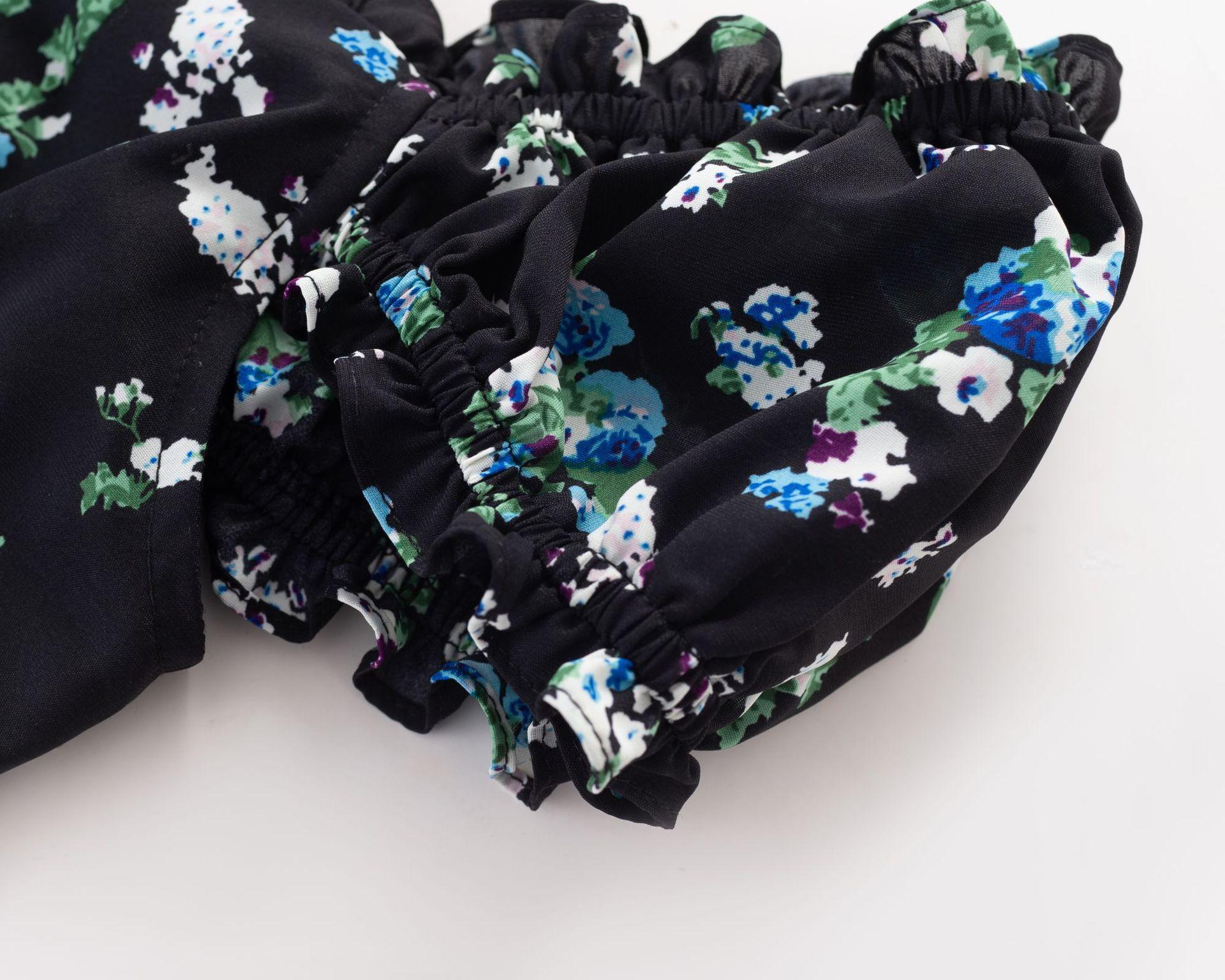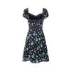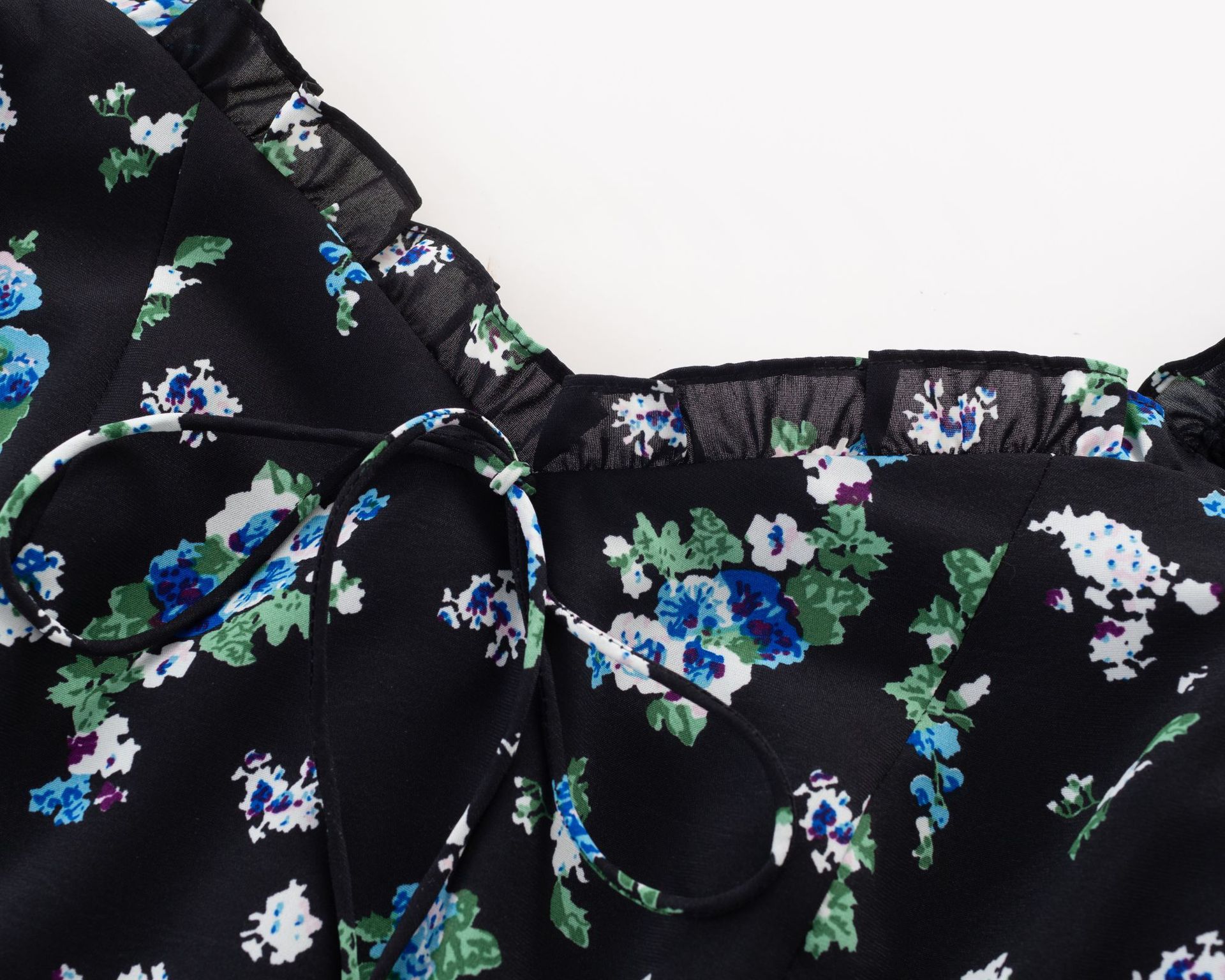 25082-25 Vestido floral con mangas abullonadas y cuello cuadrado, estilo American Girl, con tirantes de mariposa, estilo dulce y picante, para principios de primavera