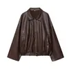 Suministro transfronterizo al por mayor nuevo otoño estilo europeo y americano lavado PU cuero solapa suelto grande abrigo de cuero top de mujer