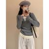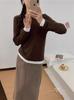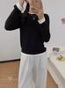 Camiseta básica de dos piezas falsa para mujer, nueva camiseta de manga larga de polar con contraste de color para desplazamientos, primavera y otoño, 2025