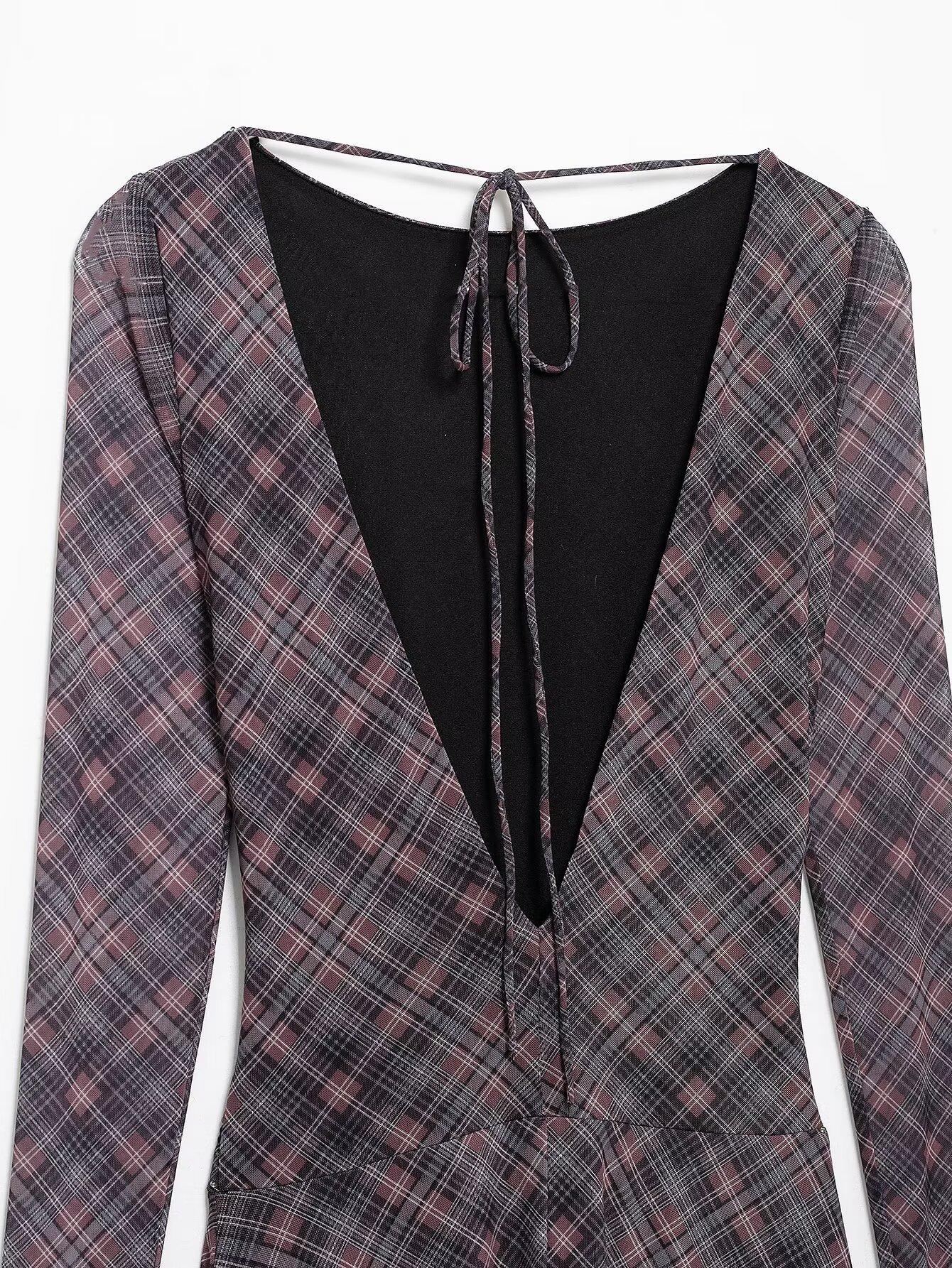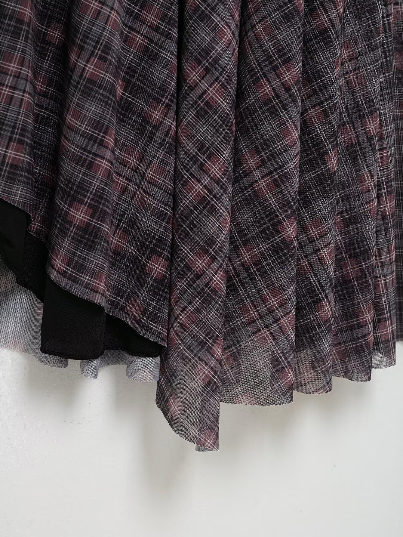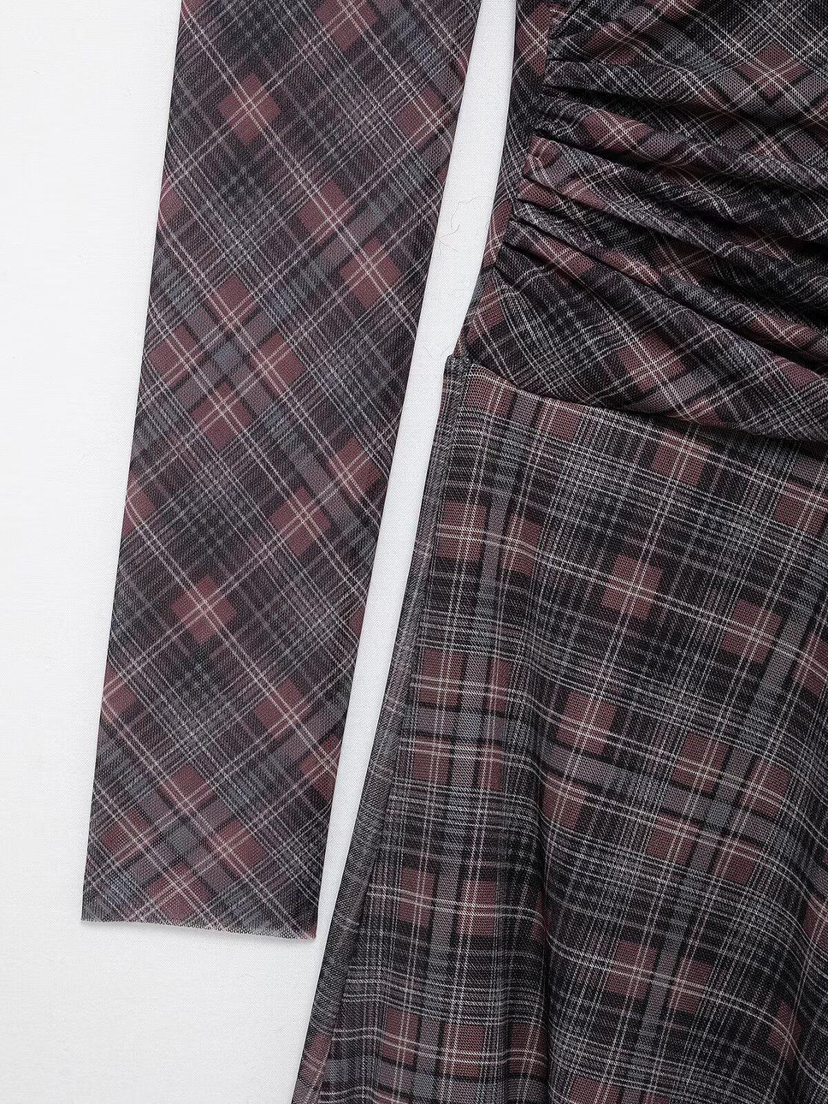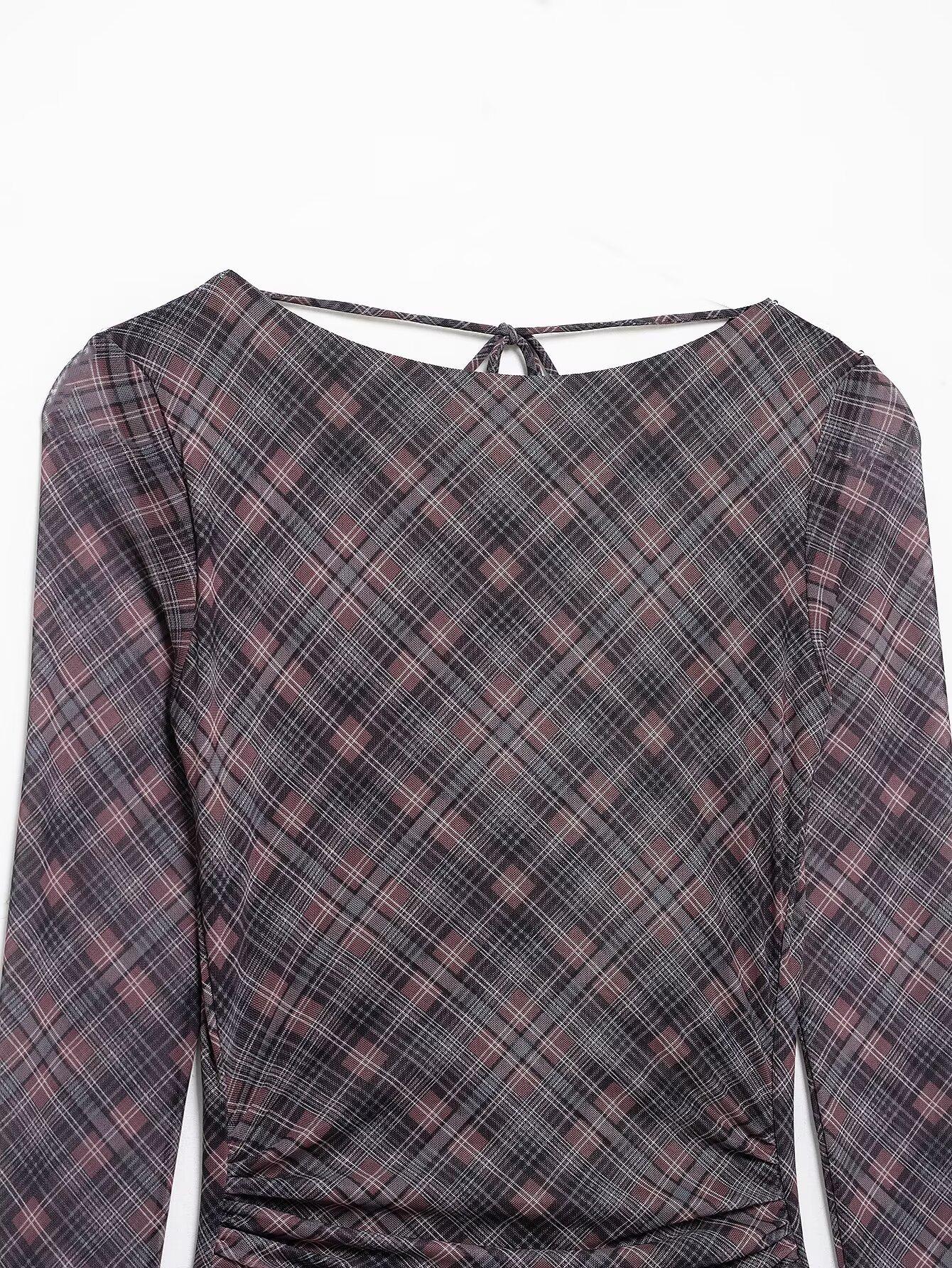 Amazon comercio exterior transfronterizo ropa de mujer europea y americana 2025 primavera nuevo vestido de red de seda plisado a cuadros moda callejera