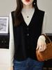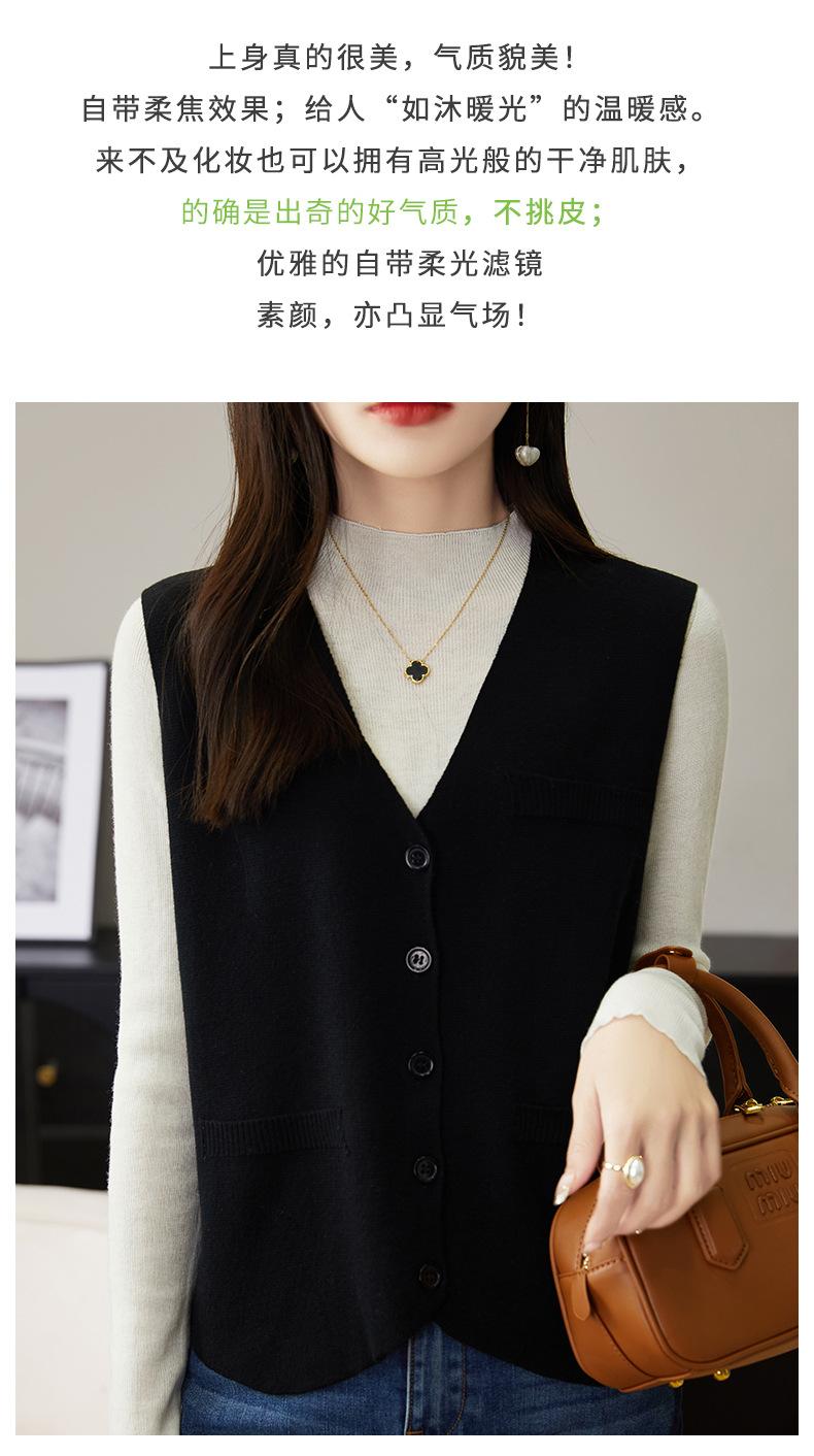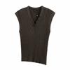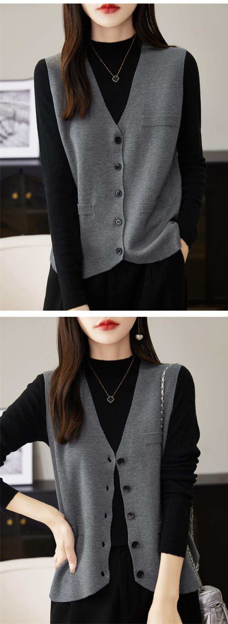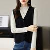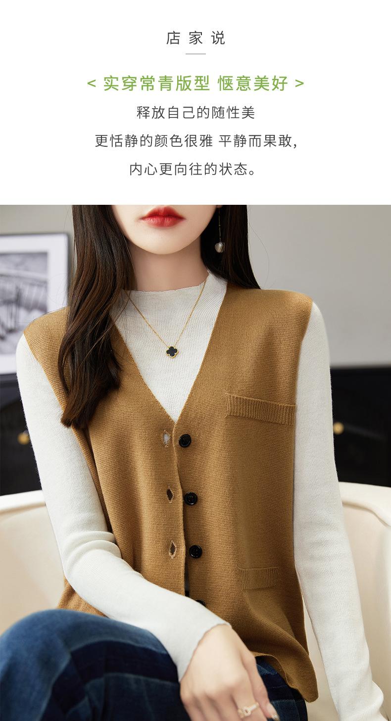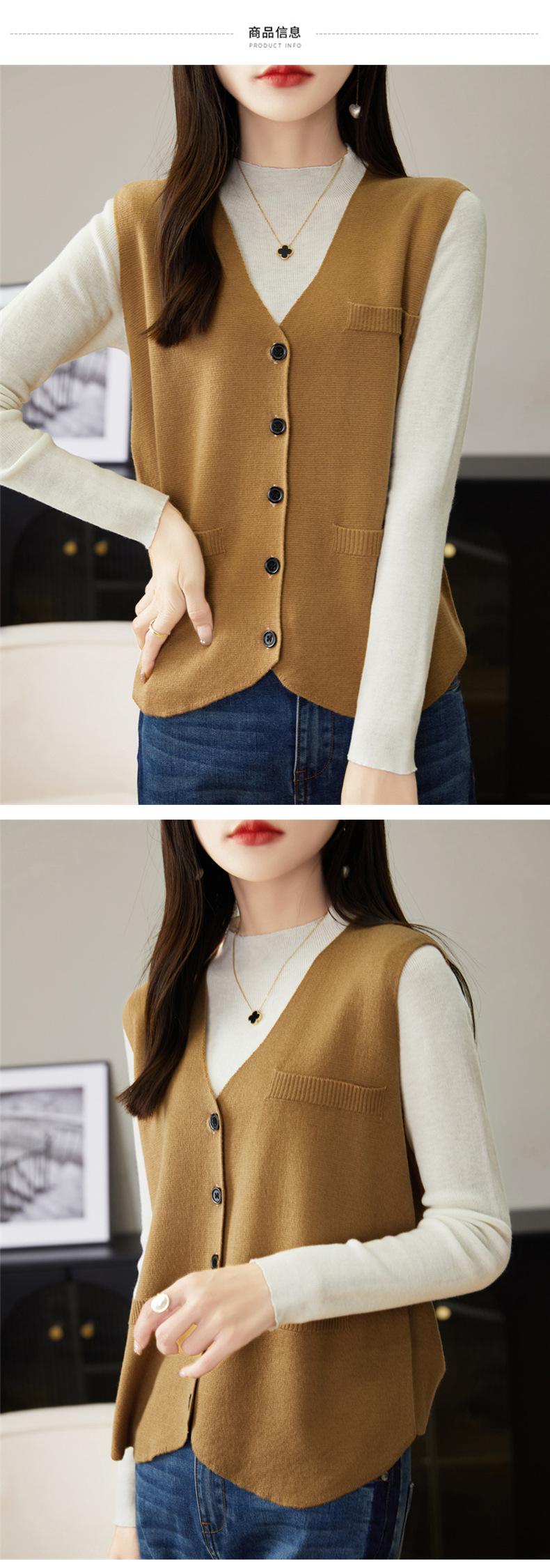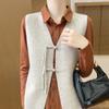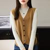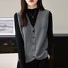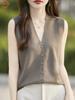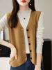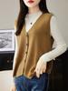 Chaleco de punto de lana peinada con cuello en V para mujer, holgado, informal, a la moda, con hebilla sencilla, sin mangas, apilado