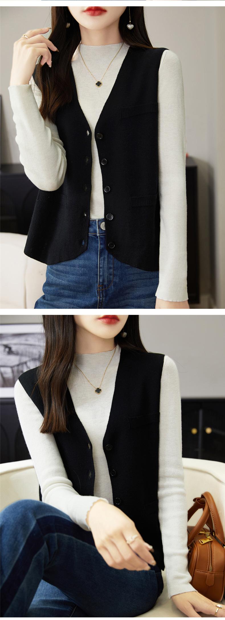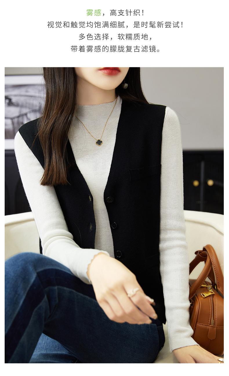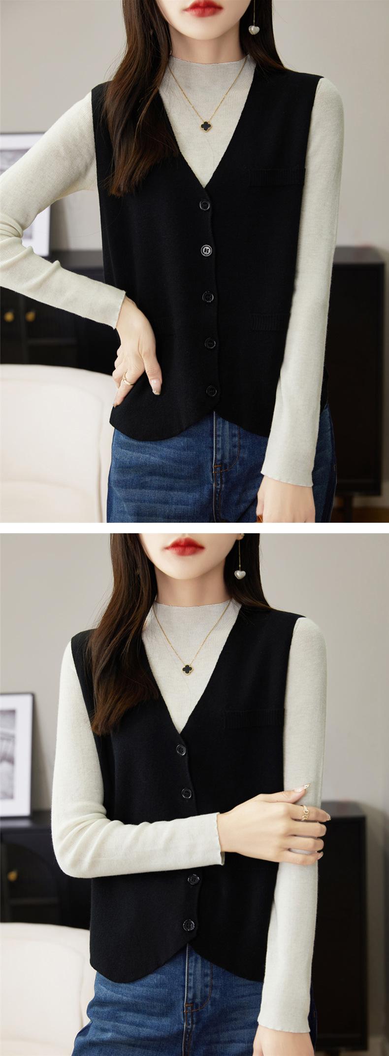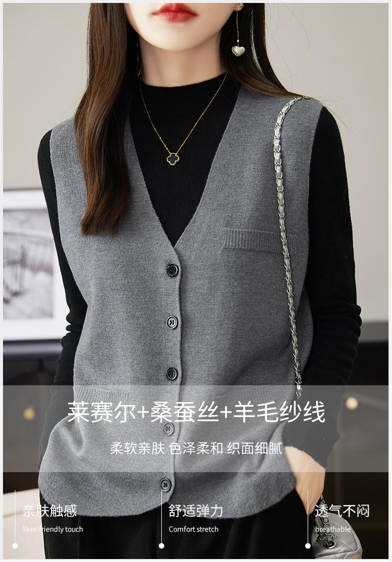 Chaleco de punto de lana peinada con cuello en V para mujer, holgado, informal, a la moda, con hebilla sencilla, sin mangas, apilado