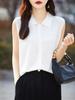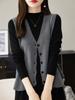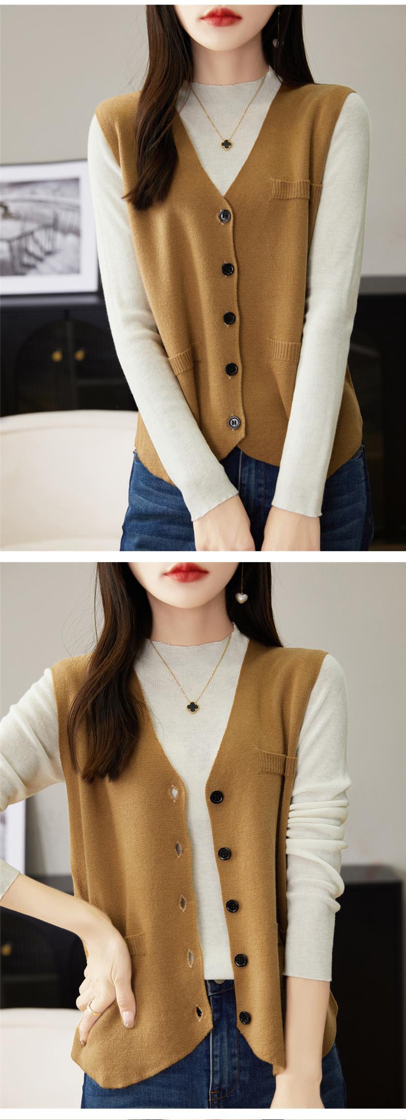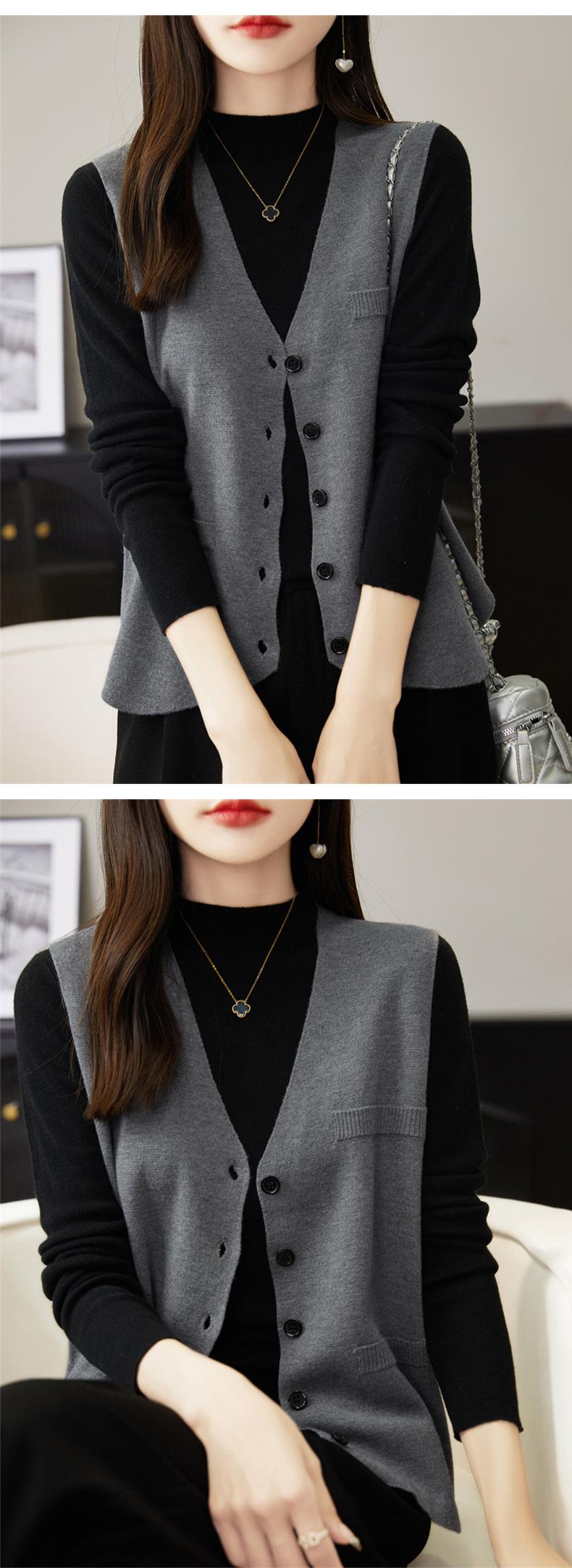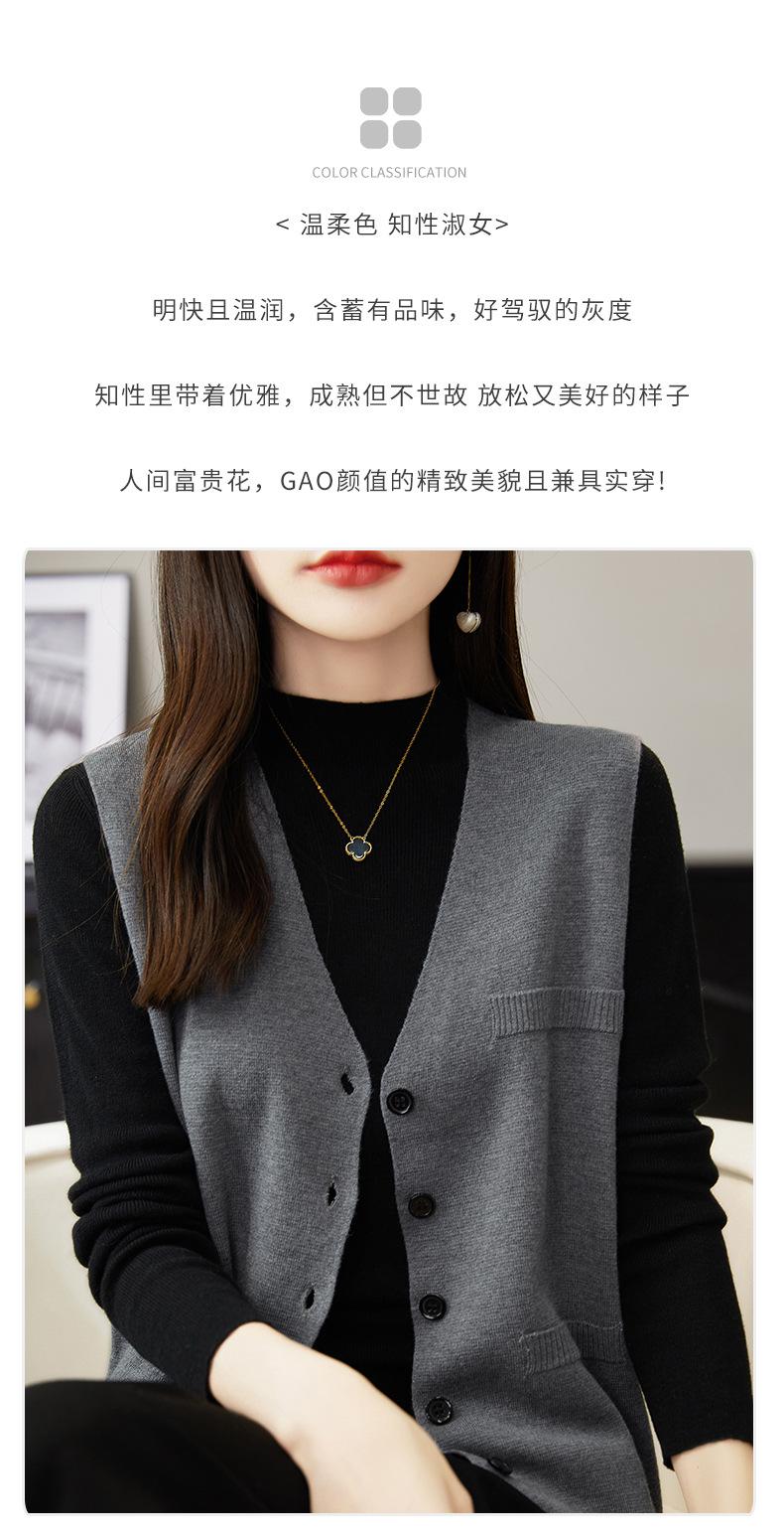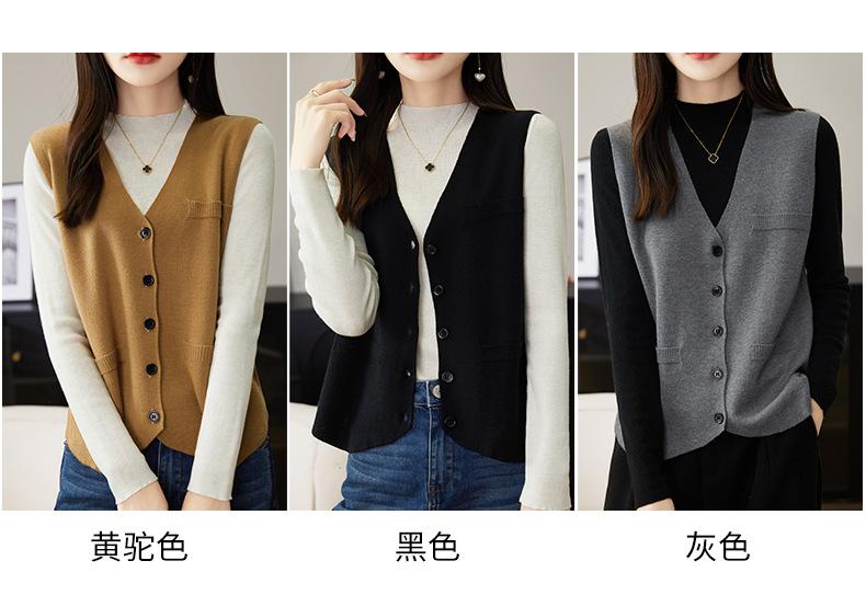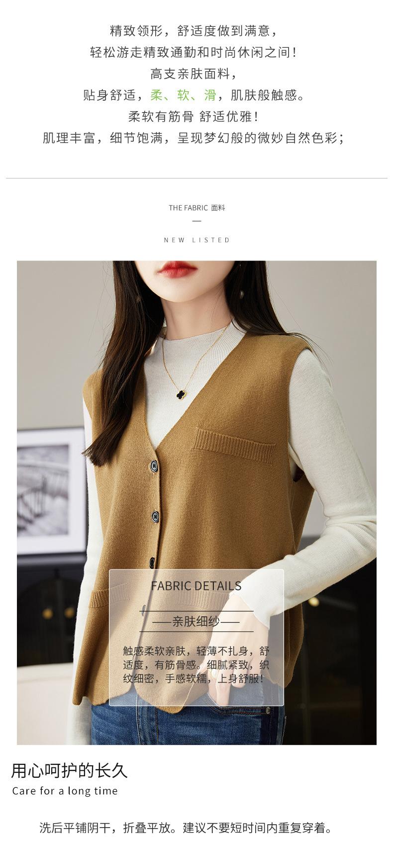 Chaleco de punto de lana peinada con cuello en V para mujer, holgado, informal, a la moda, con hebilla sencilla, sin mangas, apilado