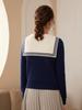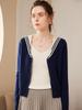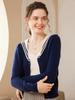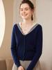 Cárdigan de punto de cachemira de moda y combinable con todo, cárdigan sencillo de manga larga para mujer, top cálido de moda y combinable con todo, con cuello azul marino