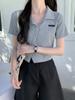 Top Corto Tipo Polo para Mujer Verano 2025 Nuevo Dulce Solapa Americano Retro Camisa Pequeña Camiseta de Manga Corta Impresionante