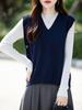 Chaleco de punto vintage con cuello en V, color liso, holgado, sin mangas, para mujer, otoño/invierno 2025