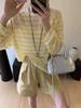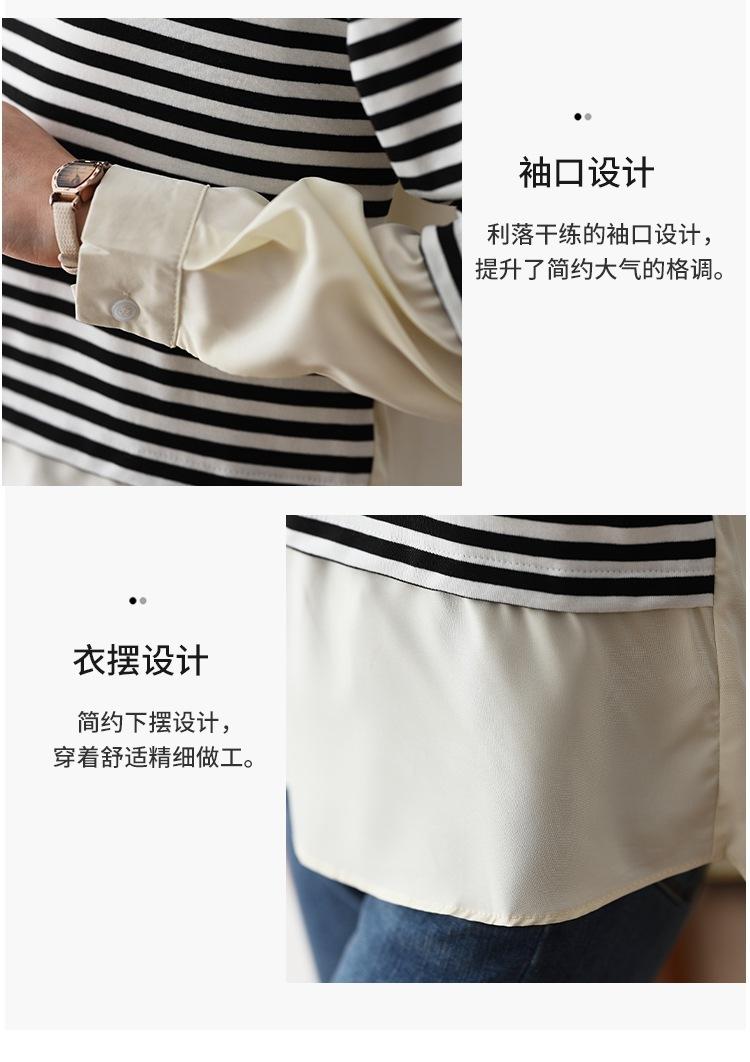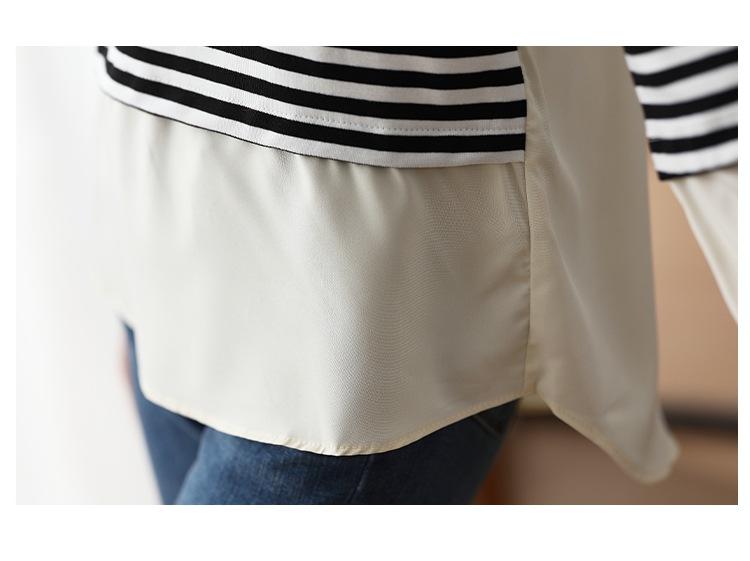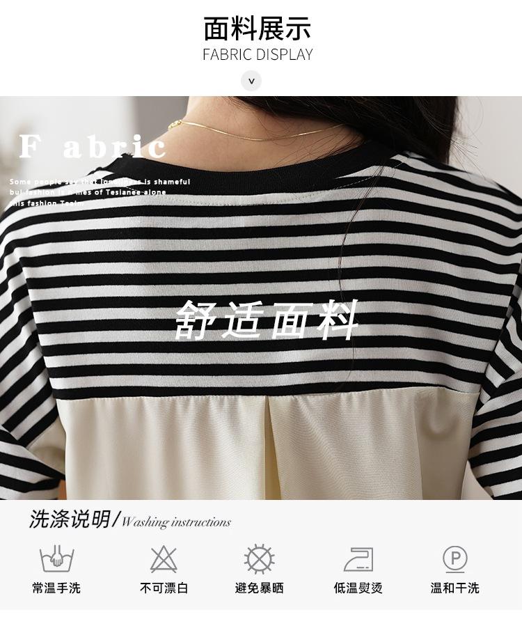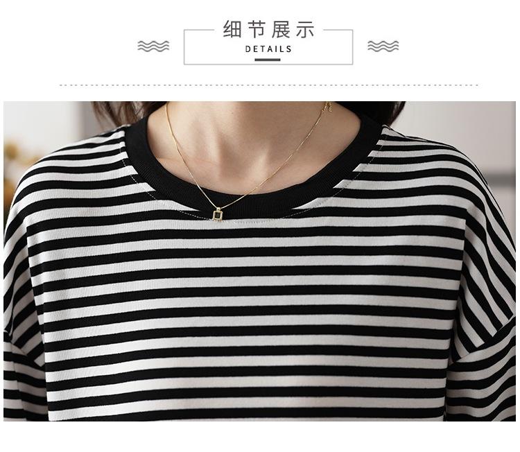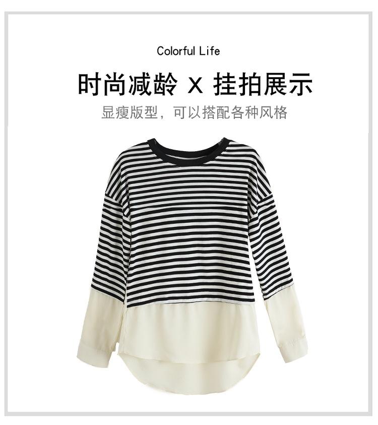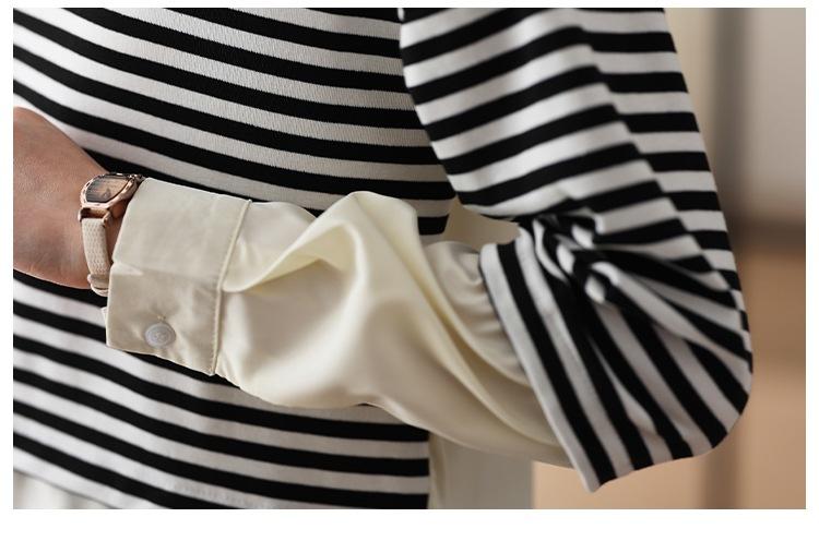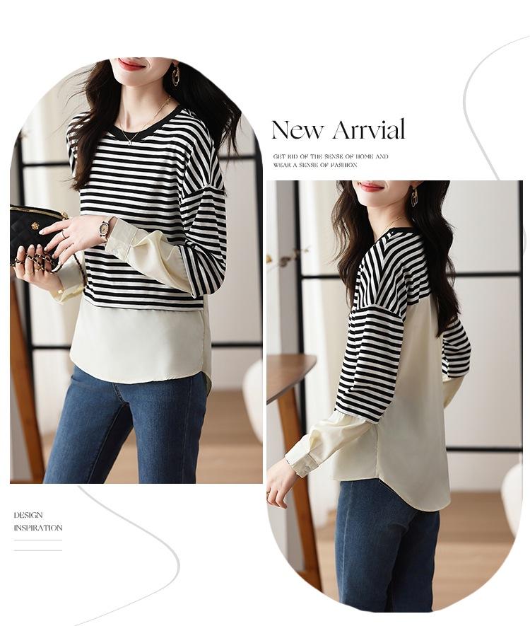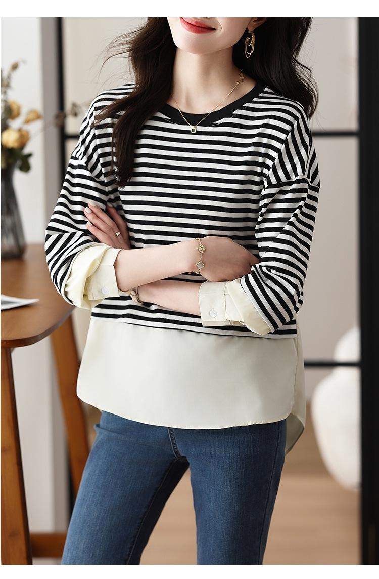 Camiseta informal de manga larga holgada con cuello redondo y costuras de colores contrastantes a rayas para mujer