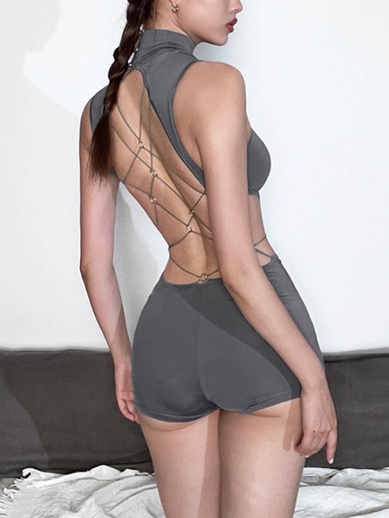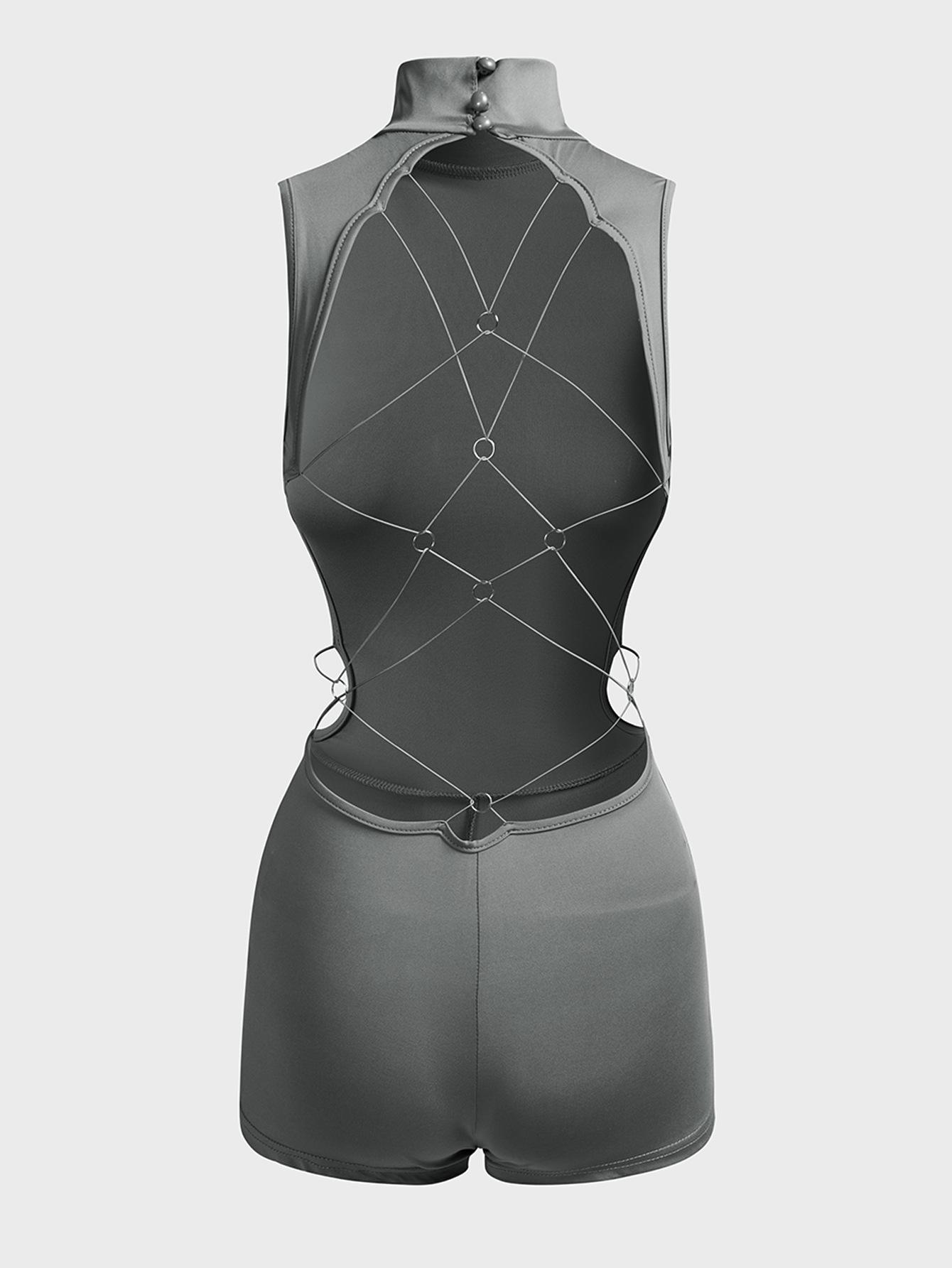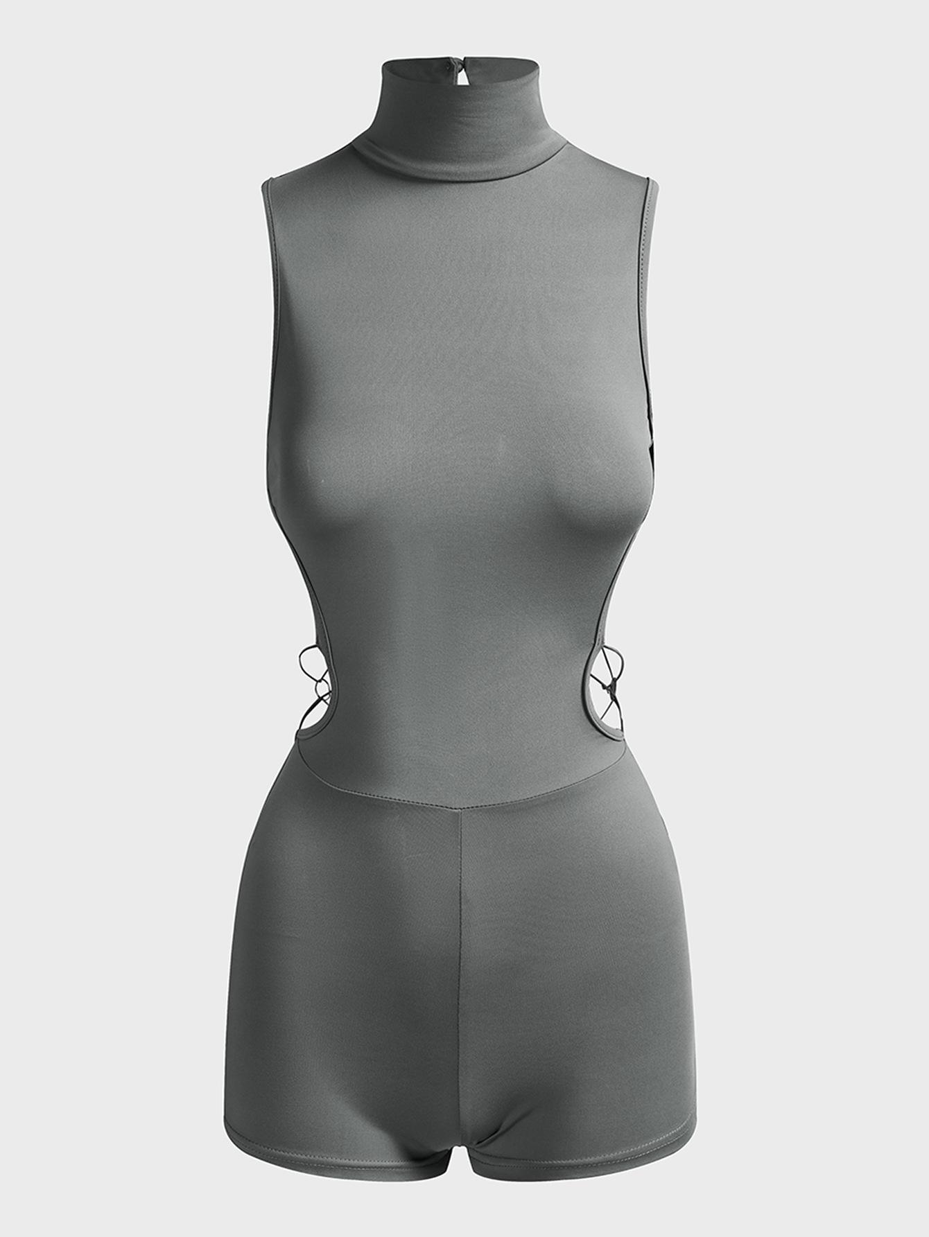 Mono de verano para mujer, de una pieza, sin mangas, con cuello, ajustado, pantalones cortos, mono sin espalda, mono sexy