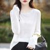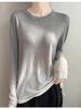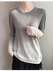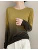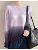 Suéter de cuello redondo de lana peinada para mujer, novedad de primavera 2025, manga larga, degradado, suelto, de punto a juego, a la moda