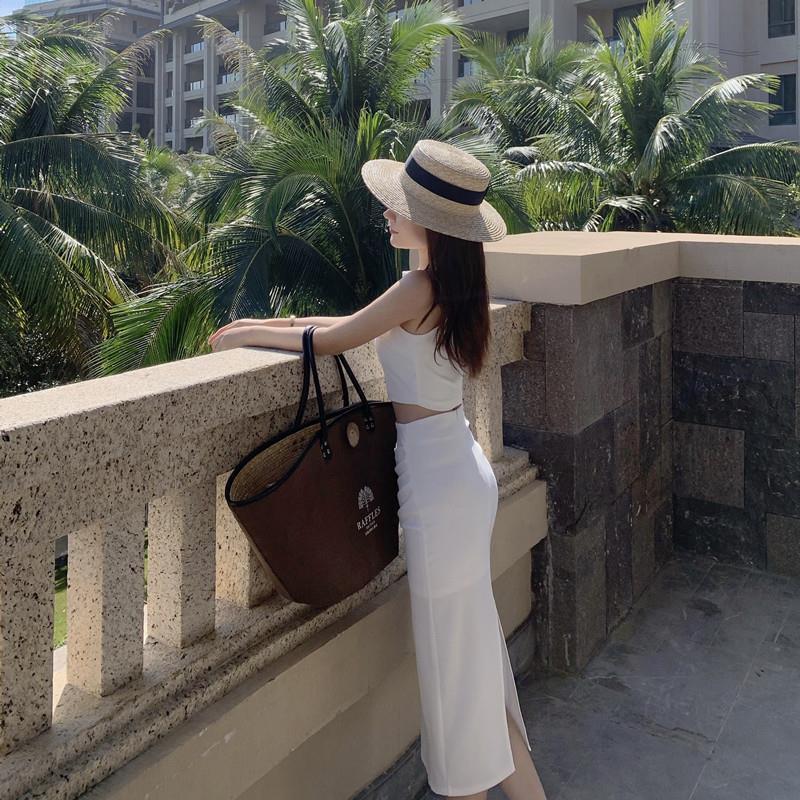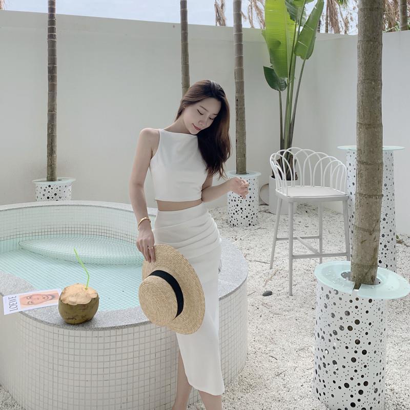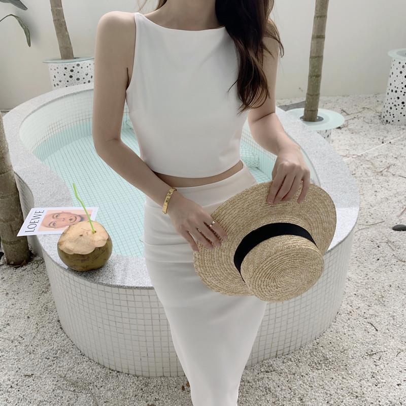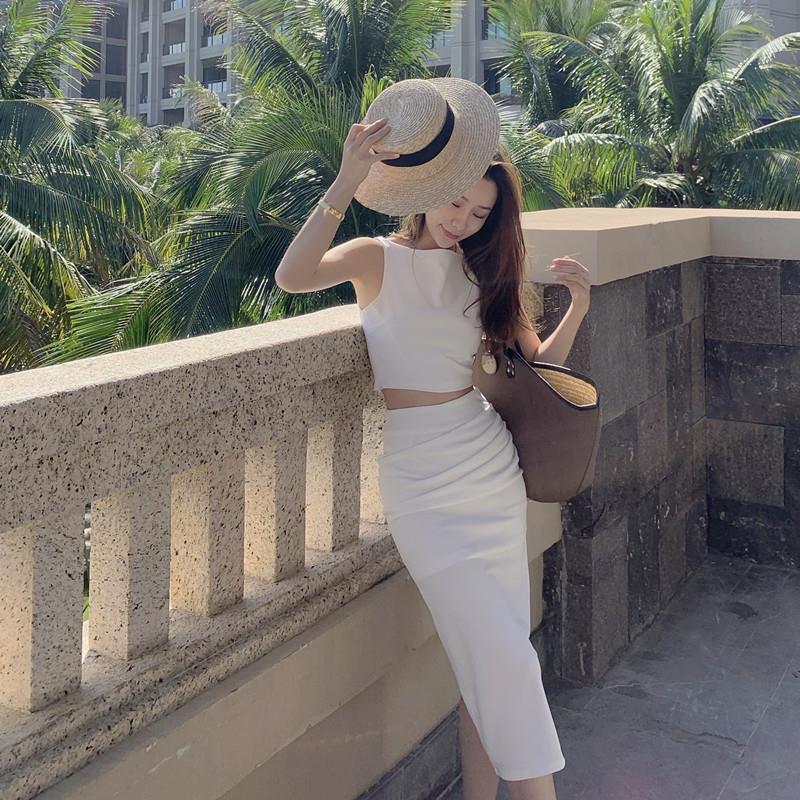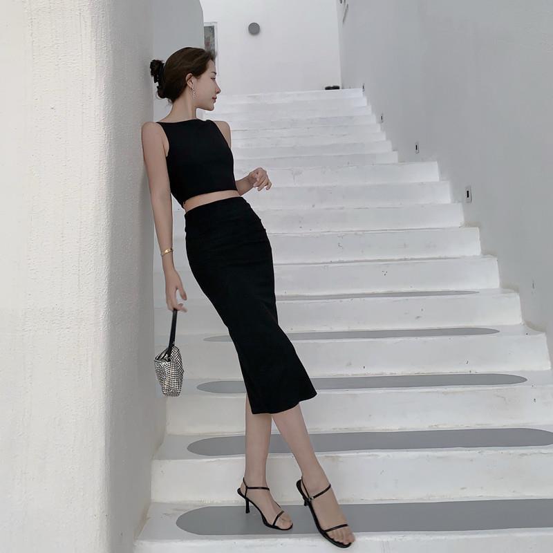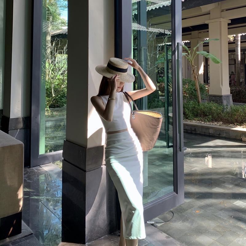 Traje elegante de estilo diosa de lujo ligero de nicho australiano para mujer, chaleco sin mangas de verano, falda, conjunto de moda de dos piezas