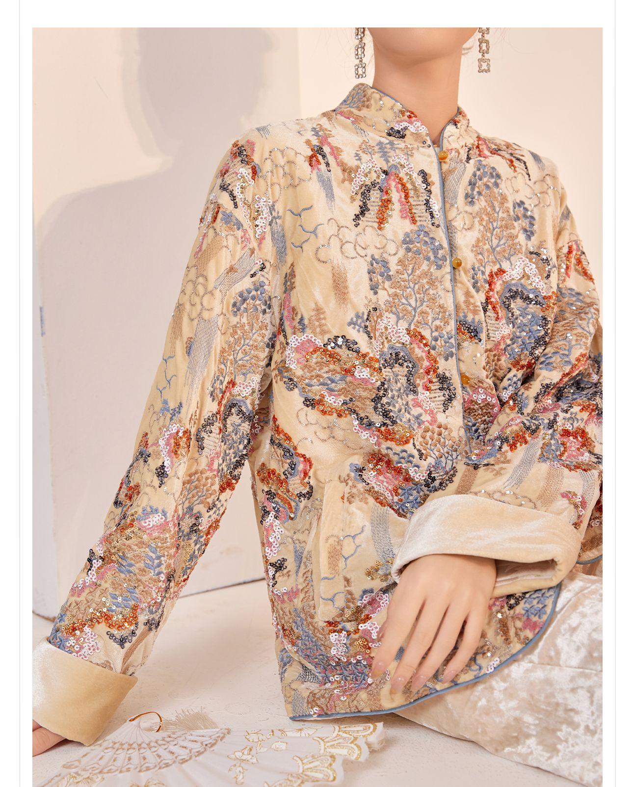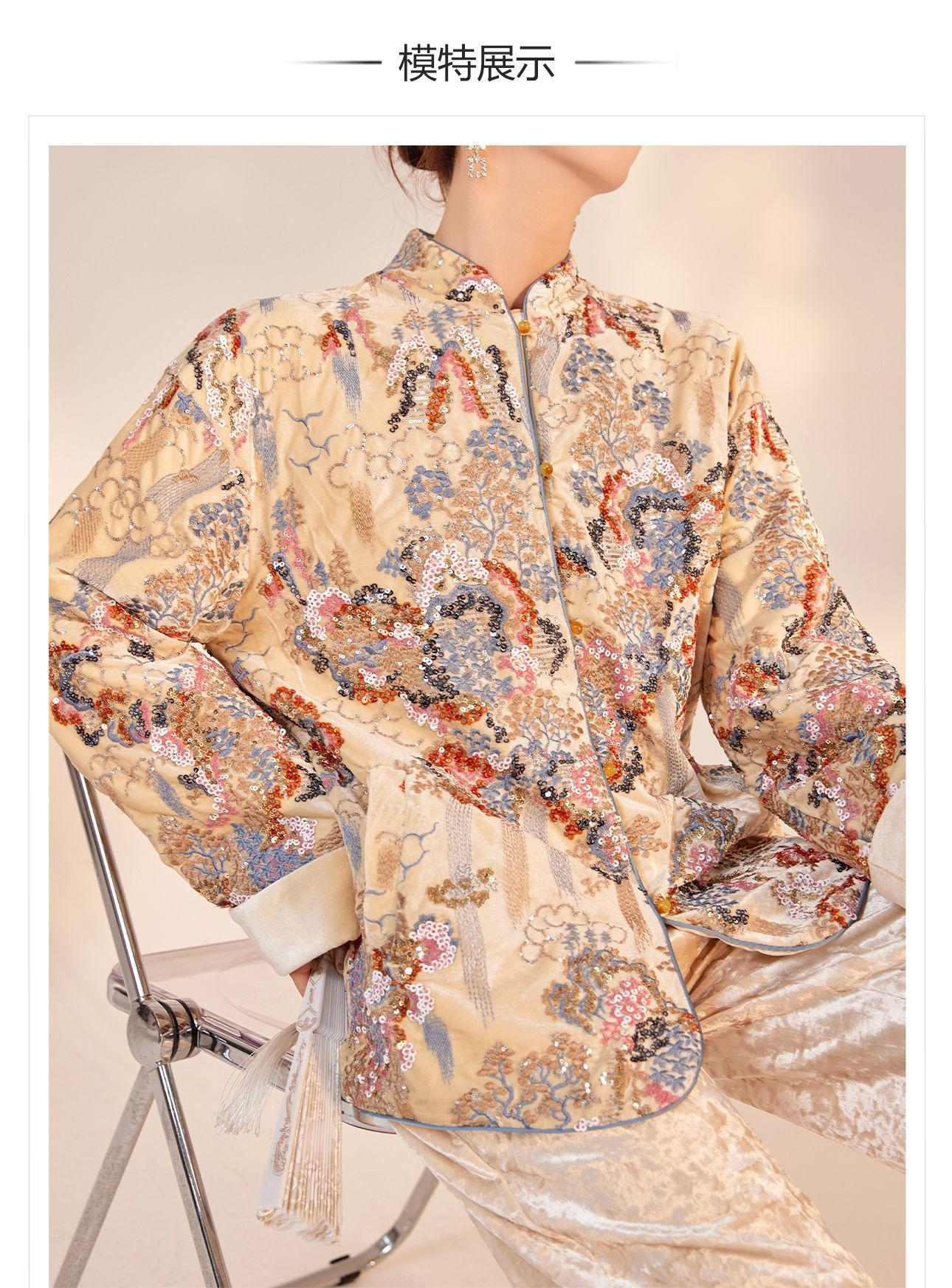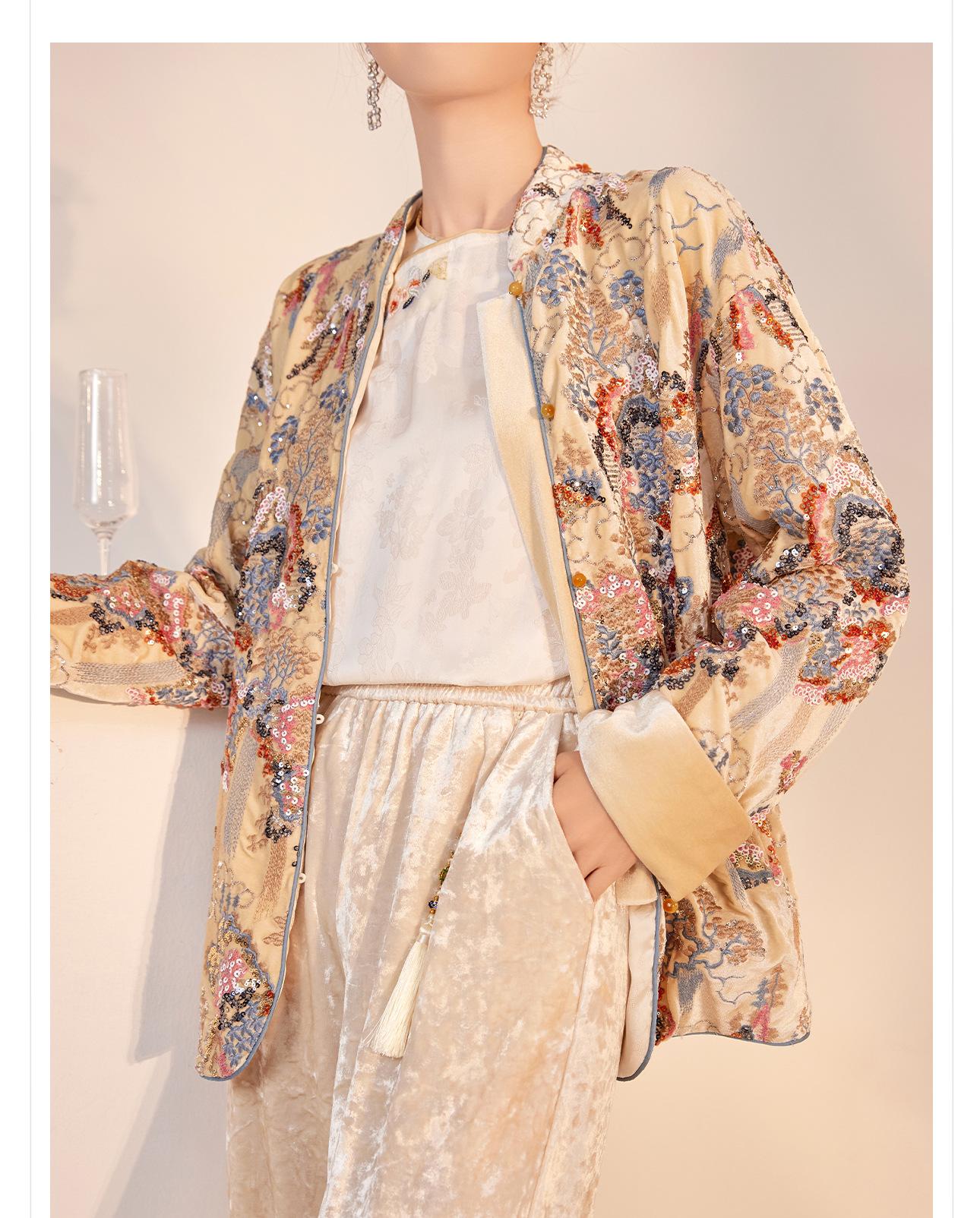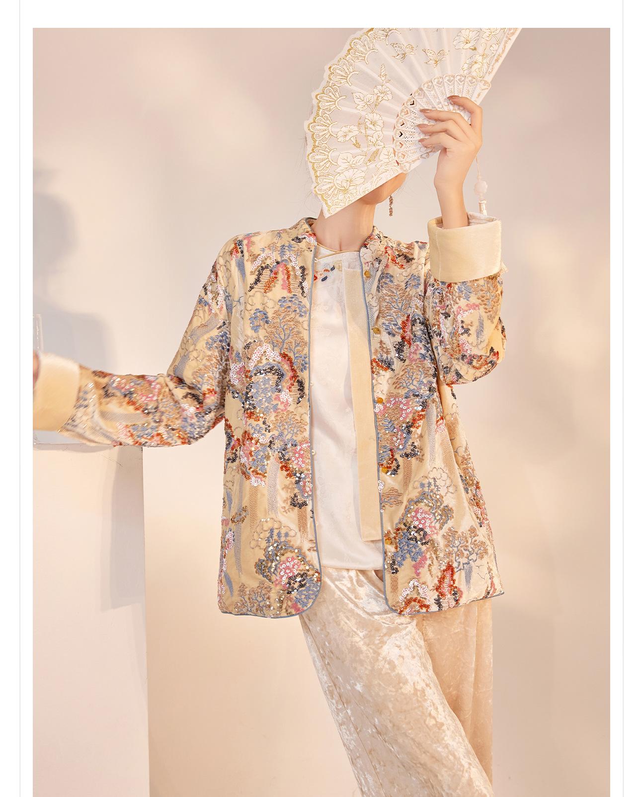 Nueva chaqueta Guofeng de estilo chino para mujer, otoño e invierno 2024, con bordado de lentejuelas, ligera y lujosa, talla M8X20