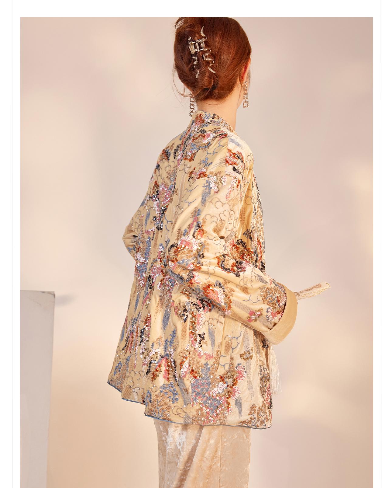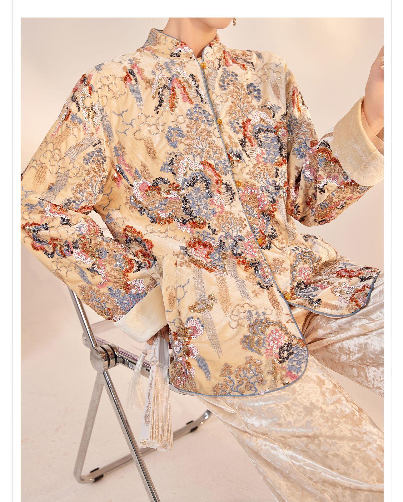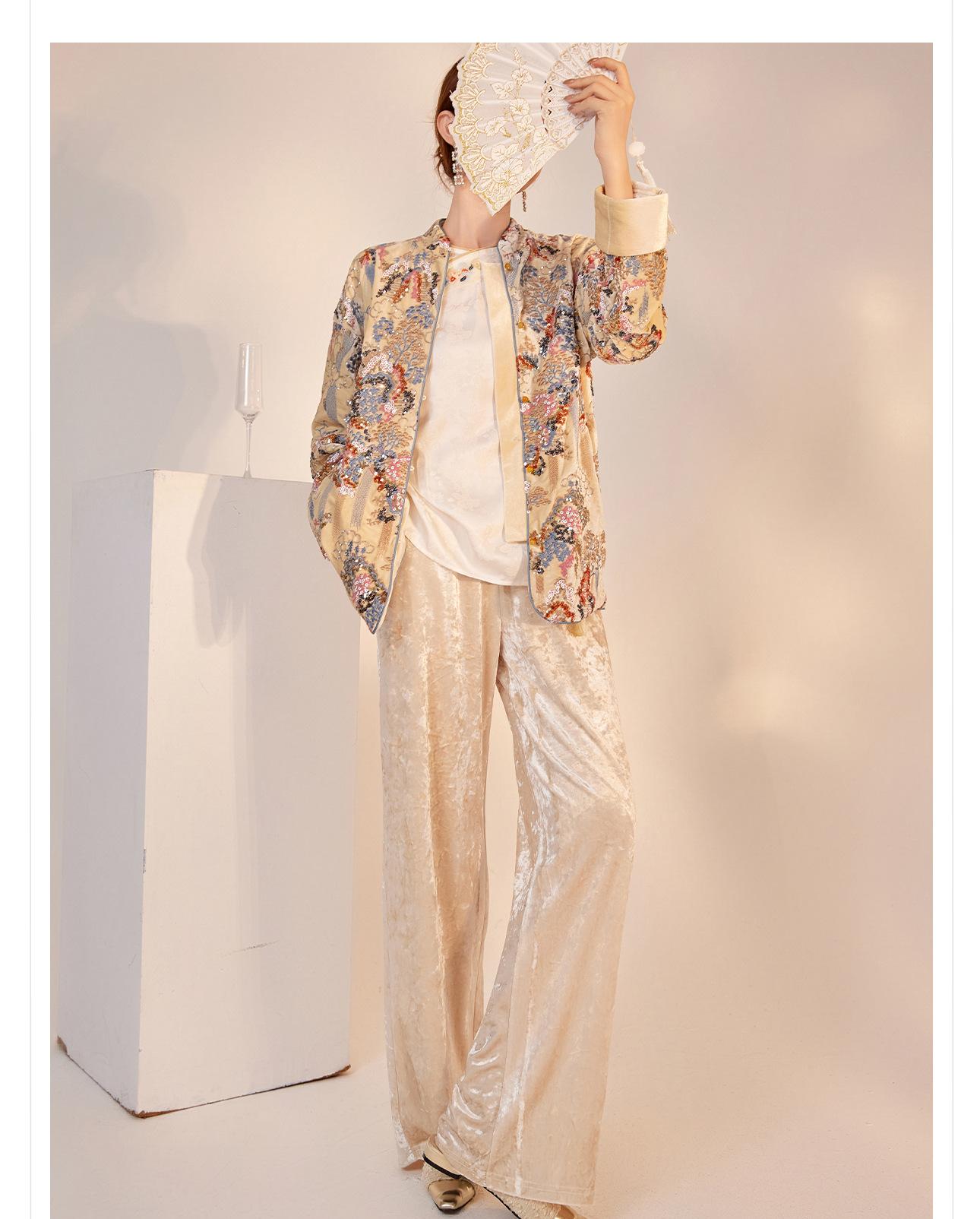 Nueva chaqueta Guofeng de estilo chino para mujer, otoño e invierno 2024, con bordado de lentejuelas, ligera y lujosa, talla M8X20