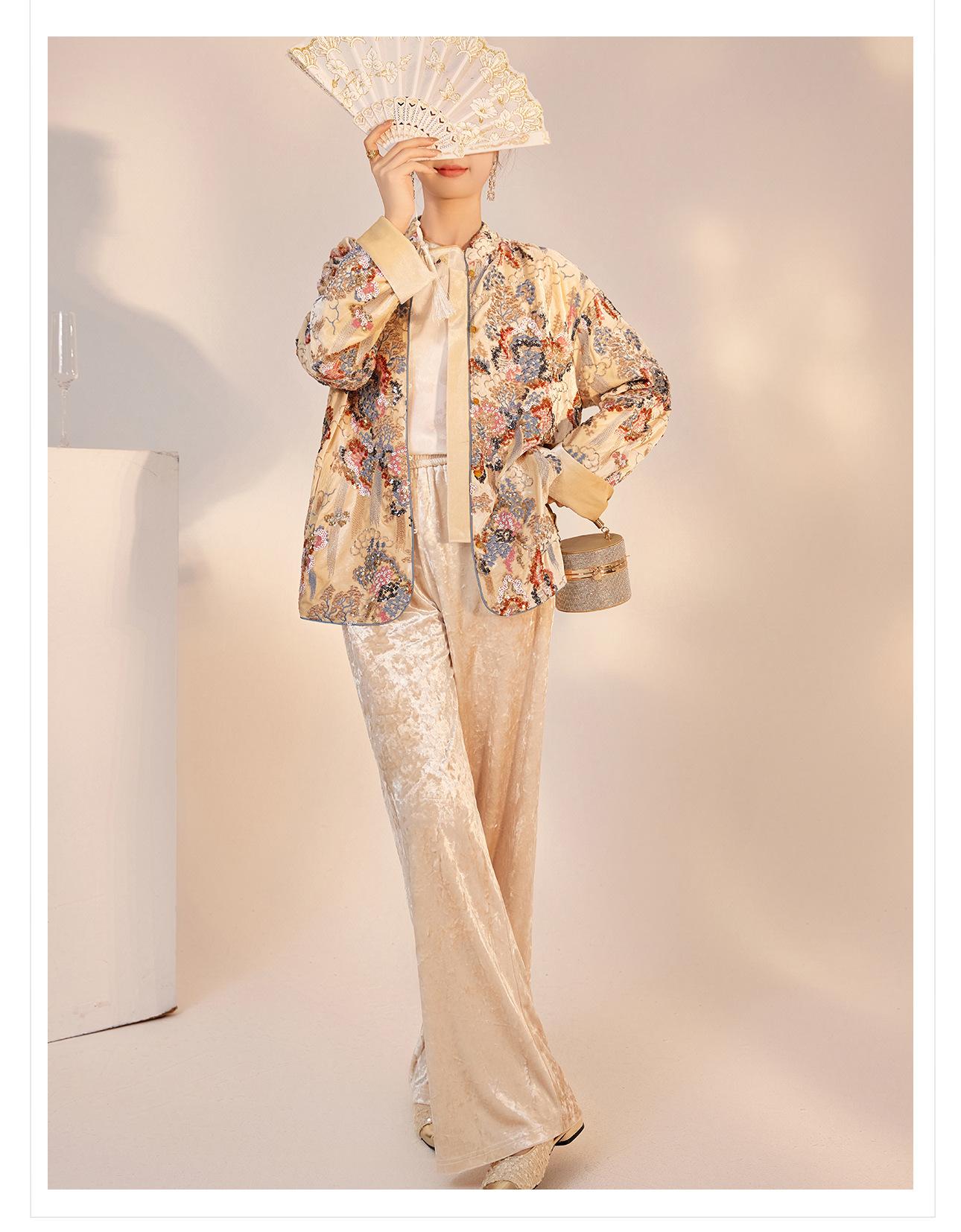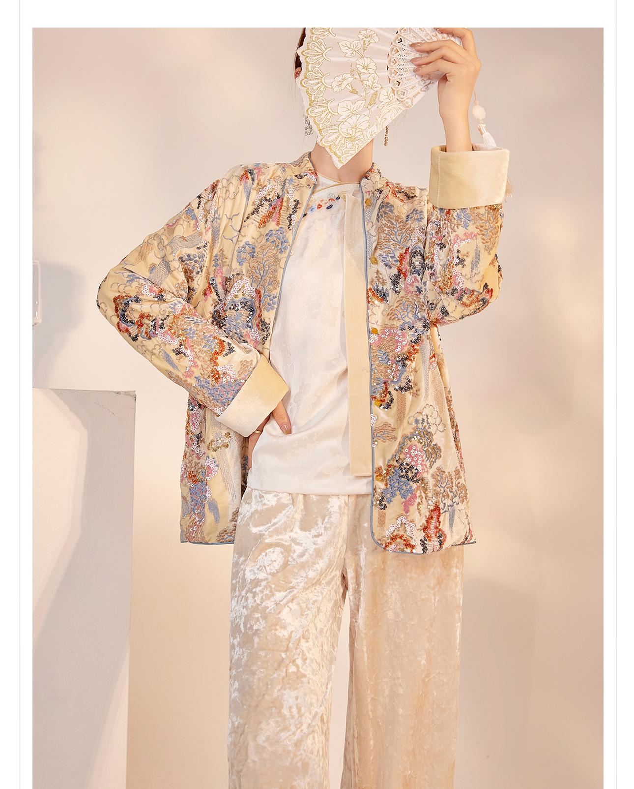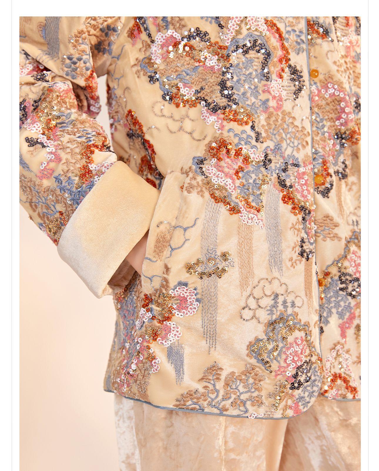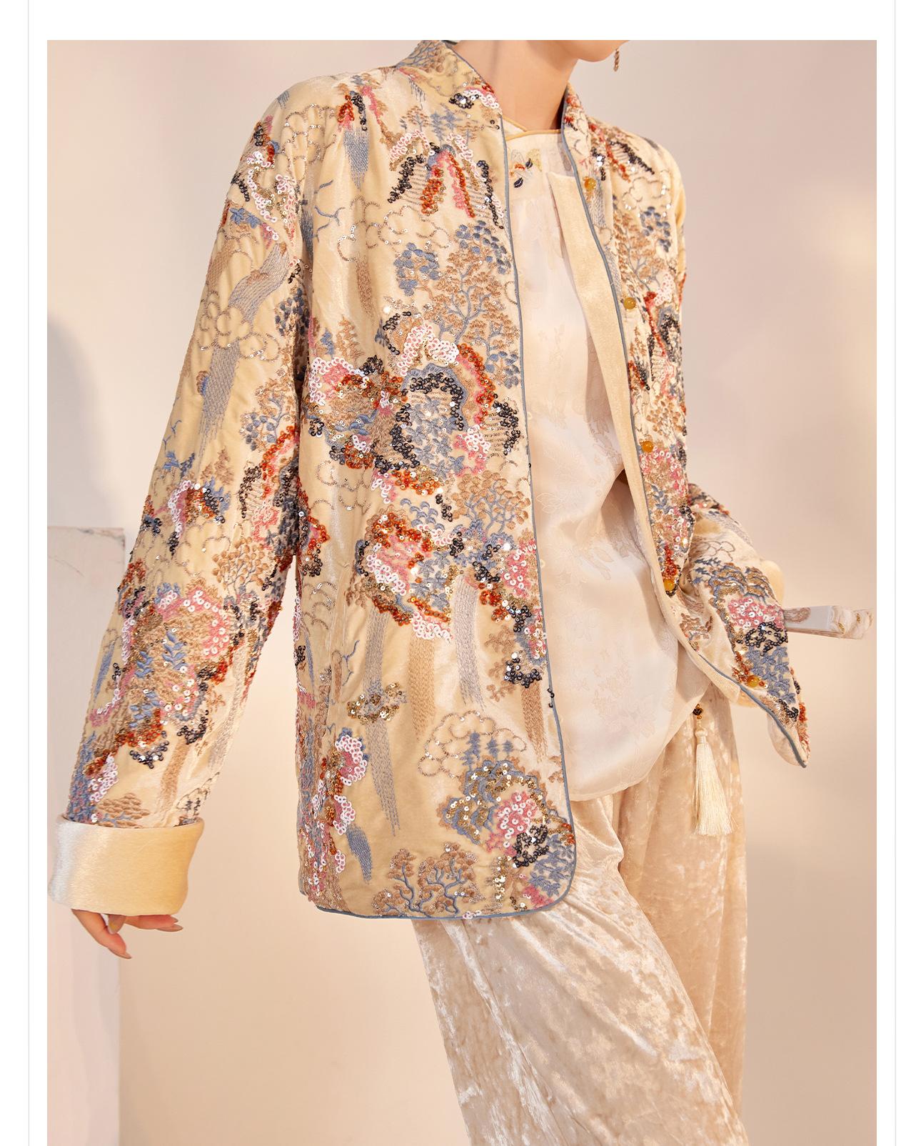 Nueva chaqueta Guofeng de estilo chino para mujer, otoño e invierno 2024, con bordado de lentejuelas, ligera y lujosa, talla M8X20