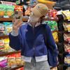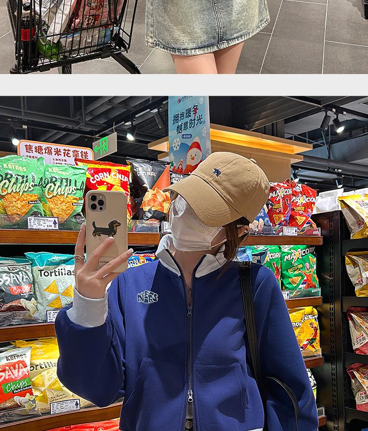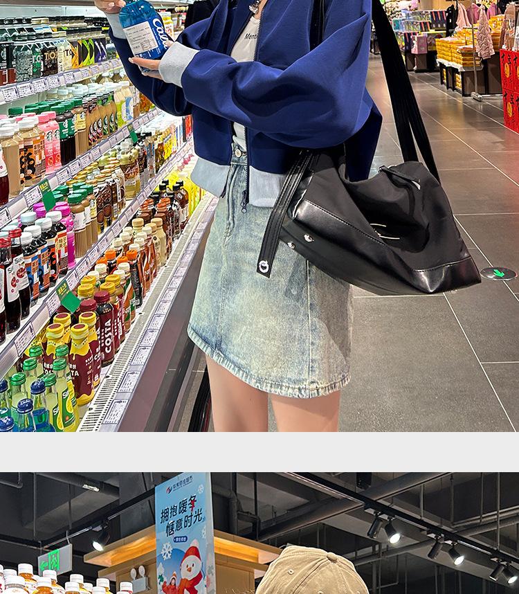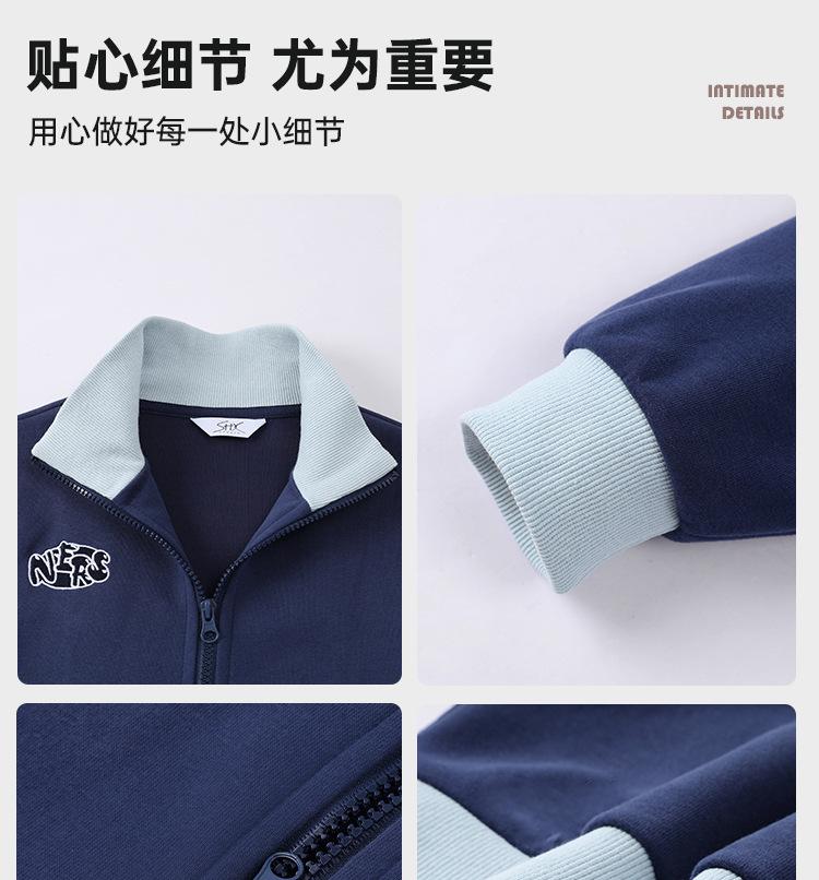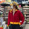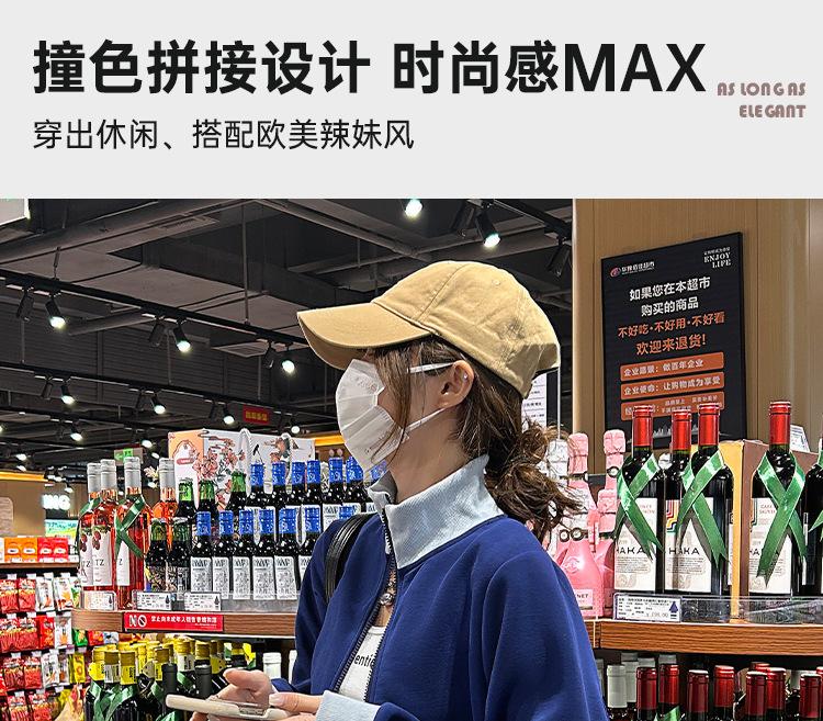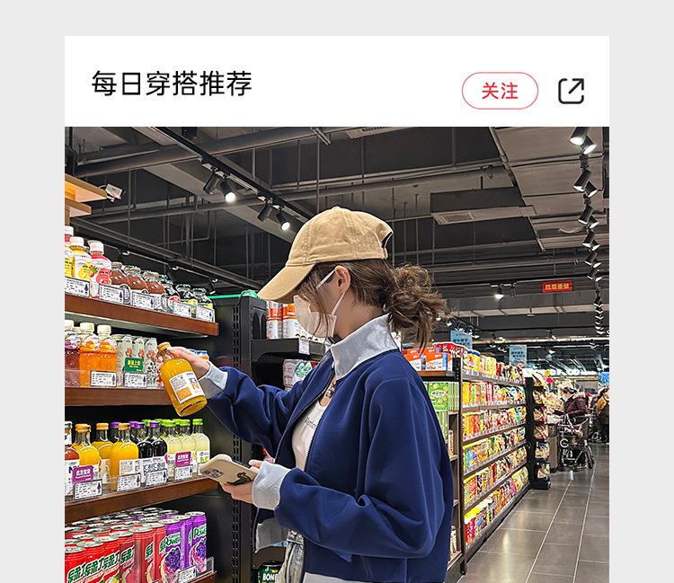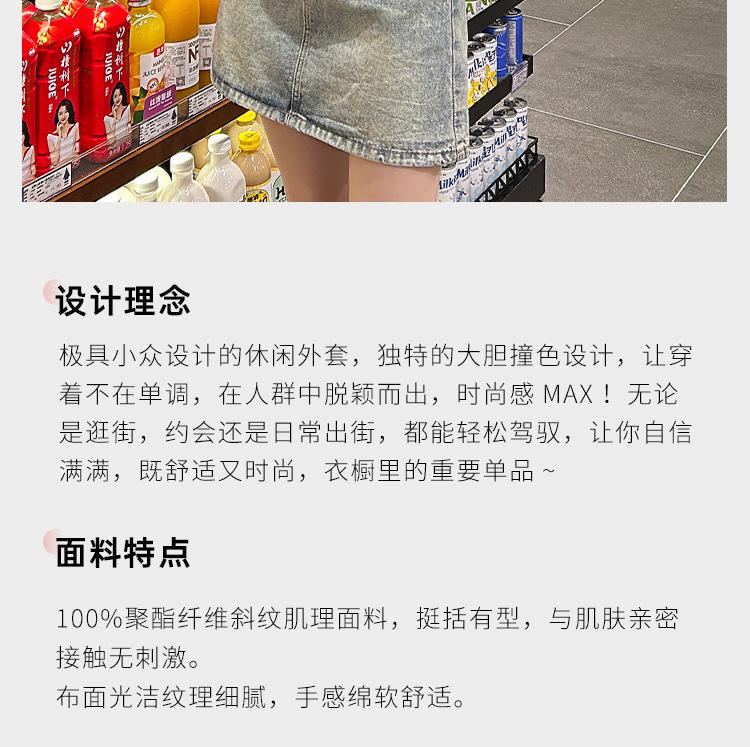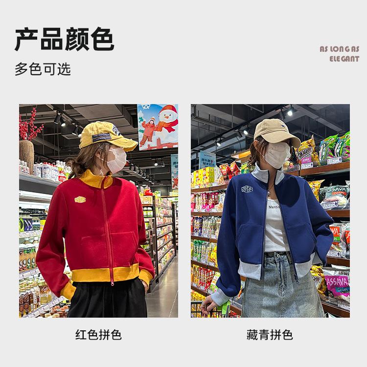 Suéter corto azul para mujer, abrigo de primavera y otoño de 2025, nuevo cárdigan con cuello pequeño y cremallera en contraste de color para hombre.
