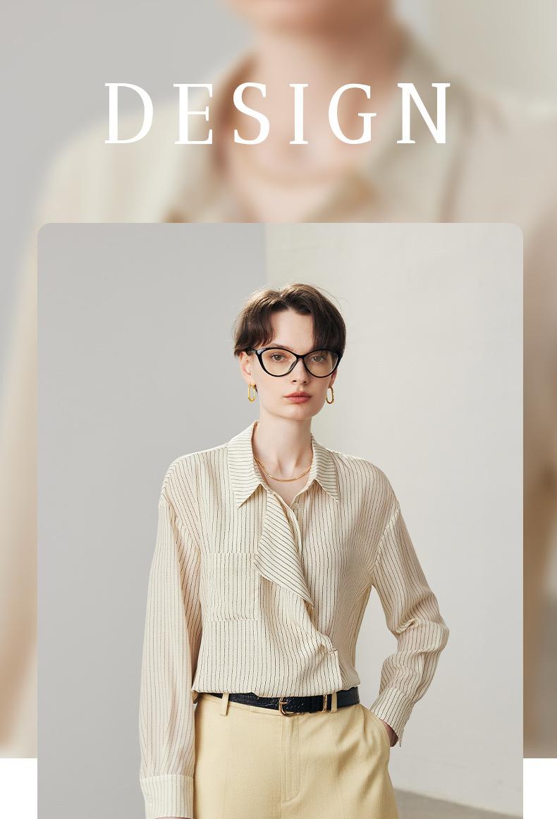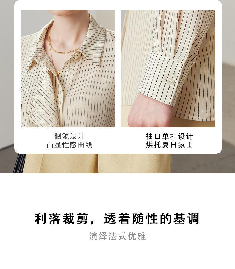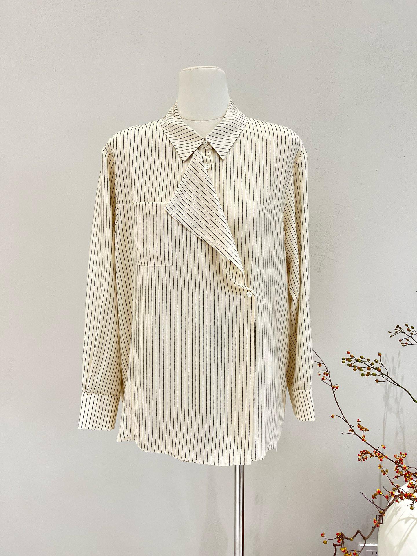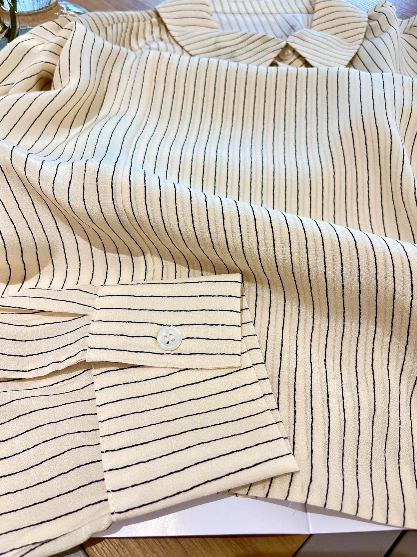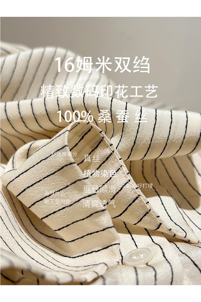Camisa de seda para mujer, primavera y verano 2025, nueva, con estampado de crepé de China a rayas distintivas, cuello irregular, 100% seda morera.