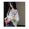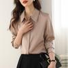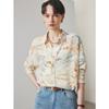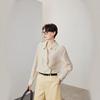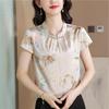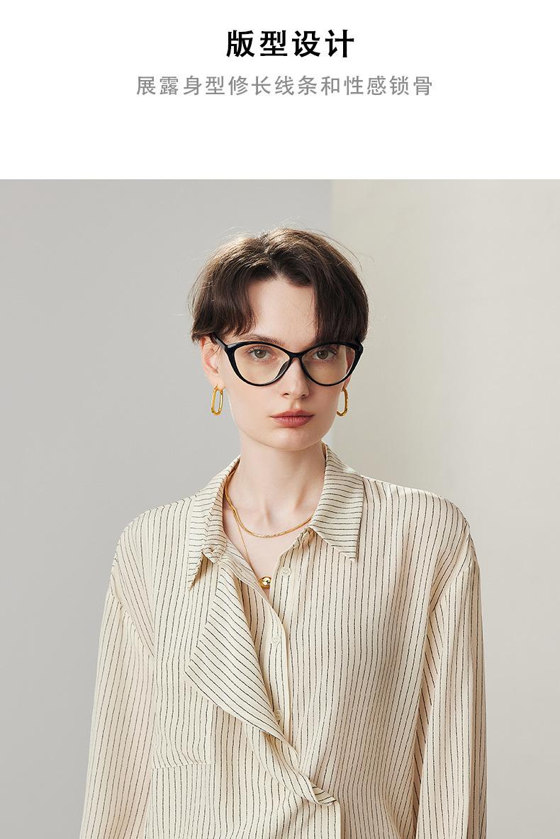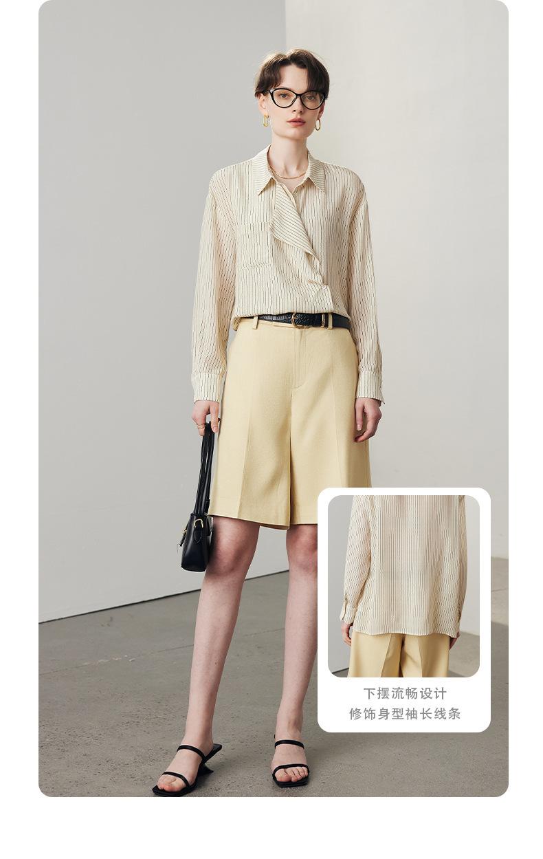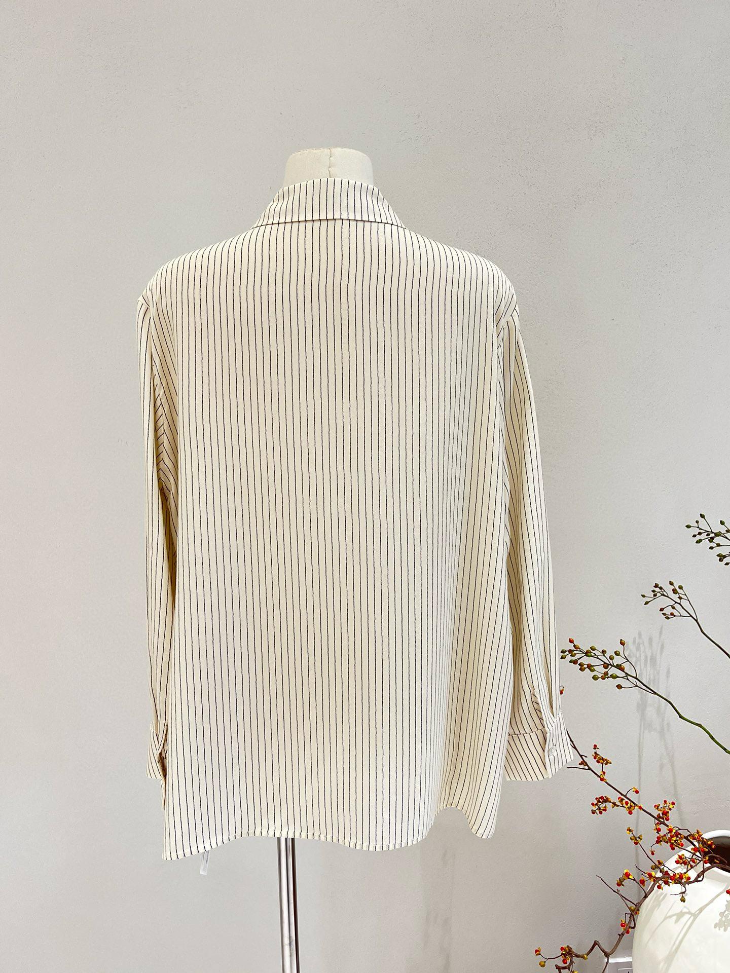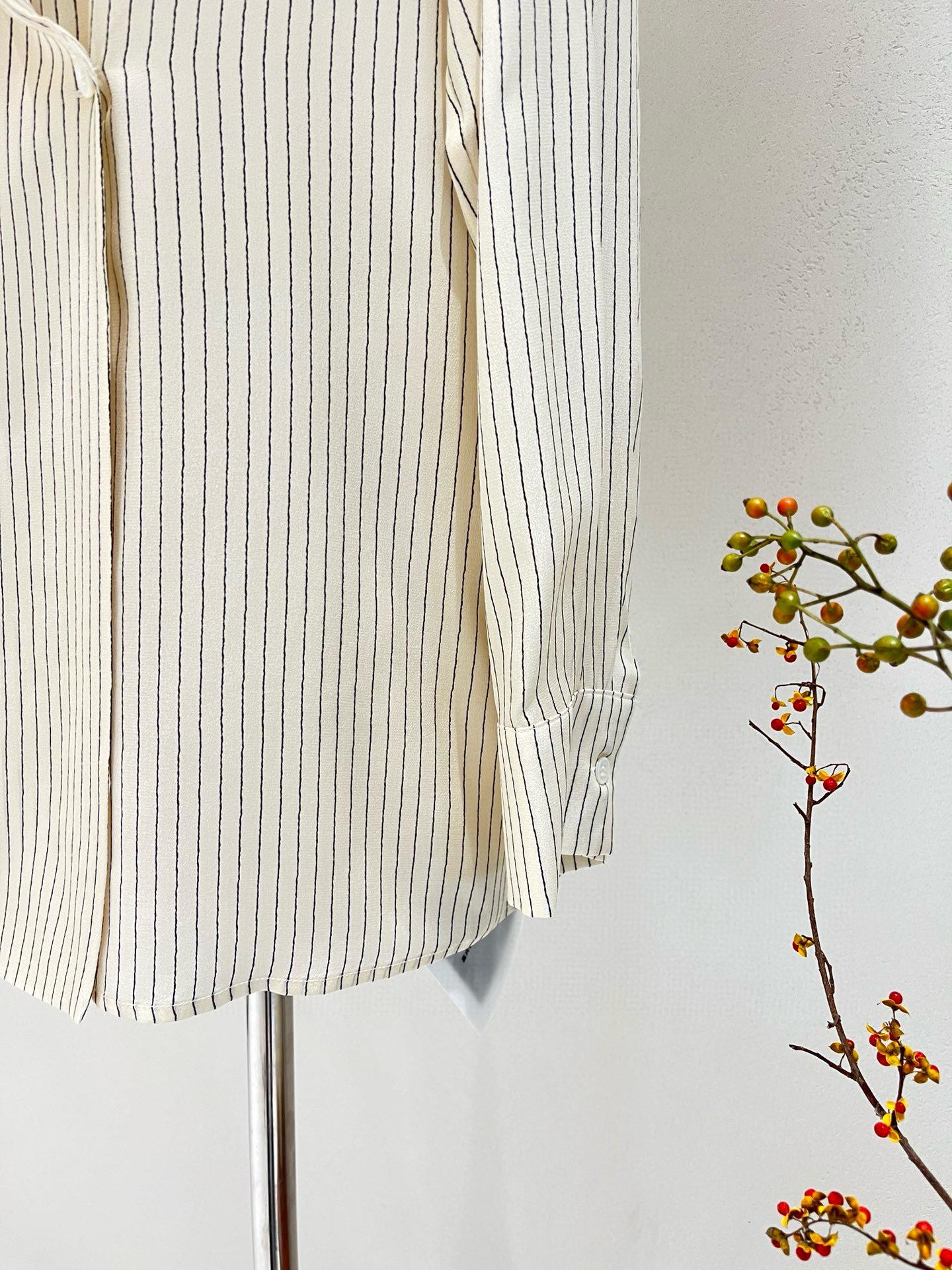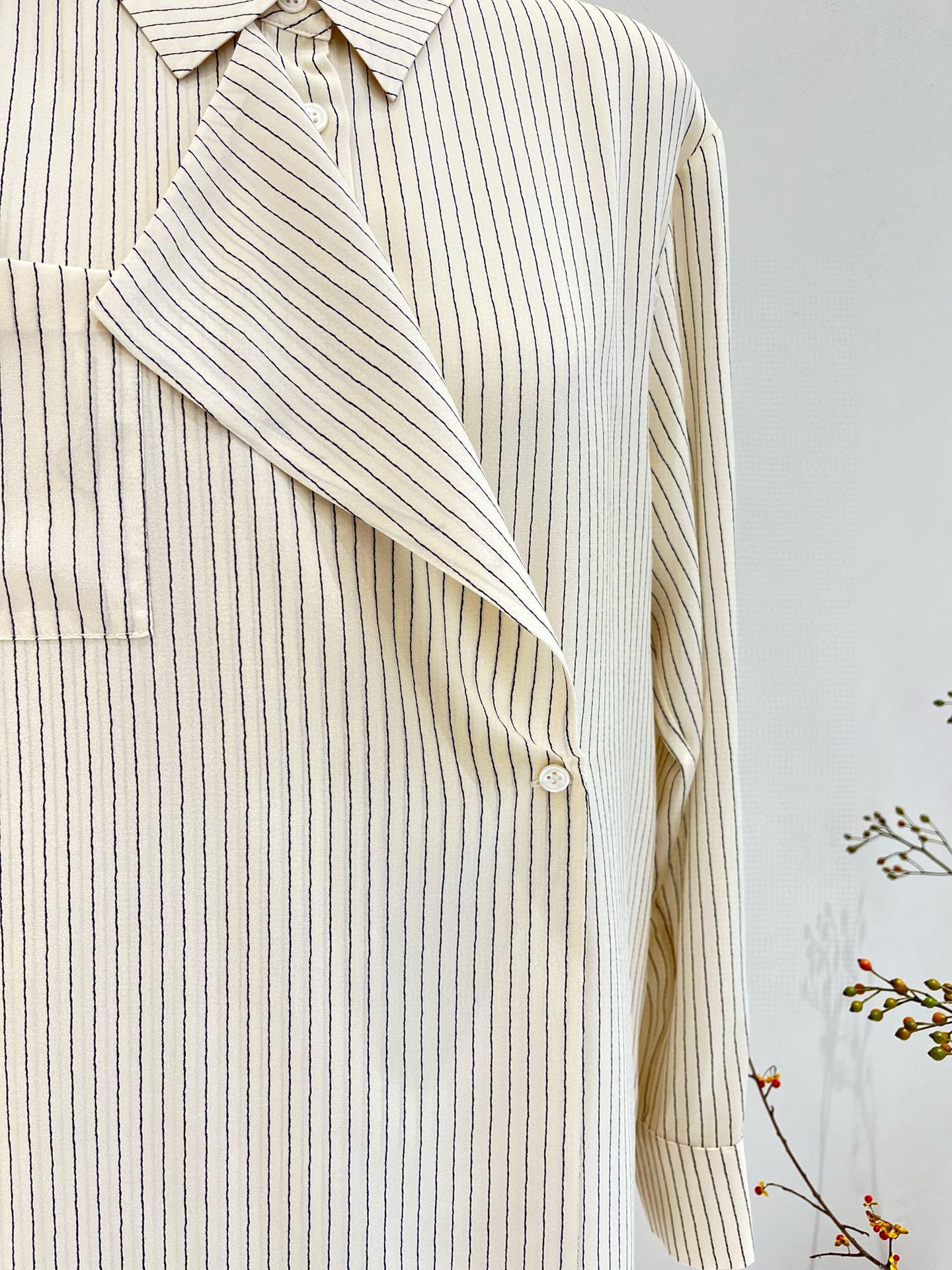Camisa de seda para mujer, primavera y verano 2025, nueva, con estampado de crepé de China a rayas distintivas, cuello irregular, 100% seda morera.