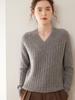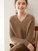 Suéter holgado de estilo perezoso para mujer, otoño e invierno 2024, nuevo suéter de cachemira grueso con cuello en V y costuras de color liso con parte superior retorcida.