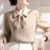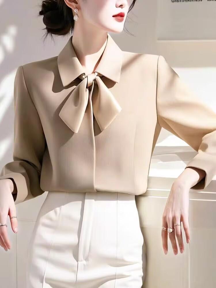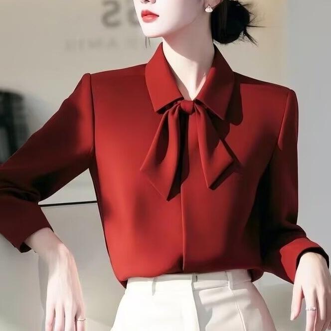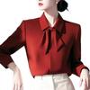 Camisa Roja con Lazo Estilo Francés para Mujer 2025 Primavera Nuevo Estilo Top para Viajar Camisa Estilo Occidental