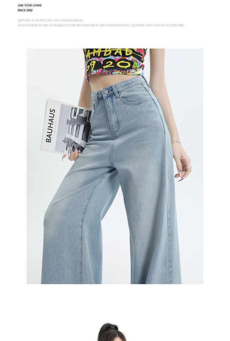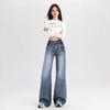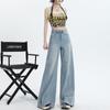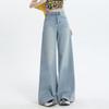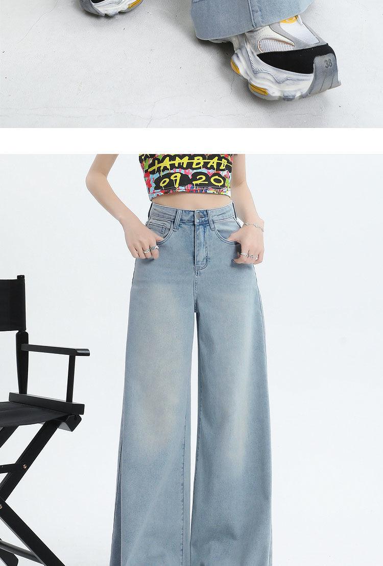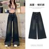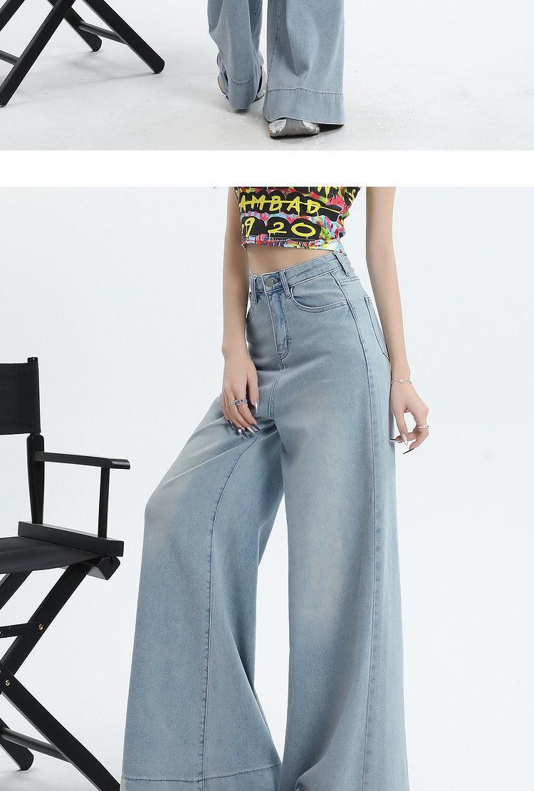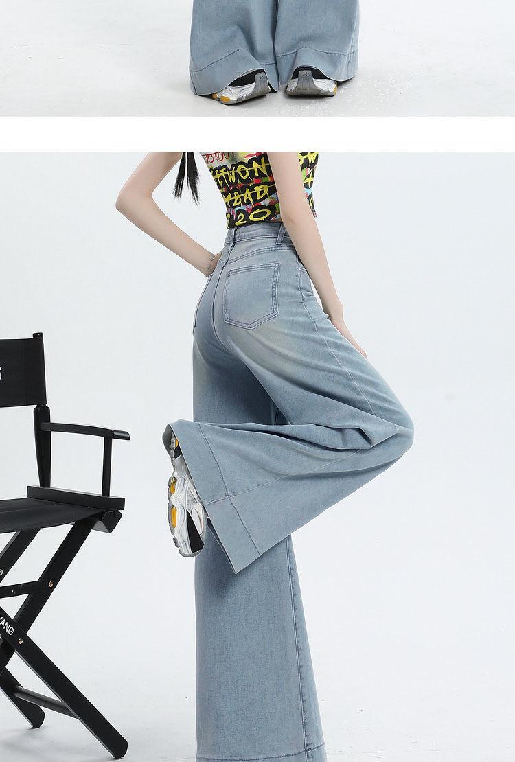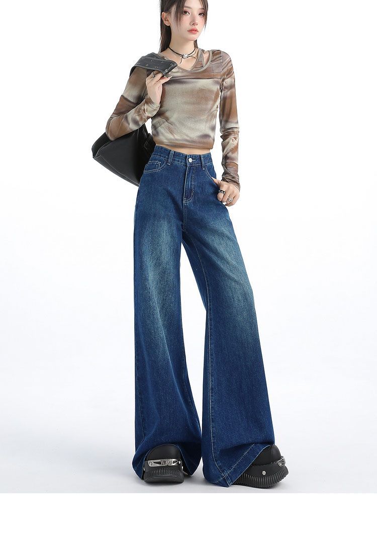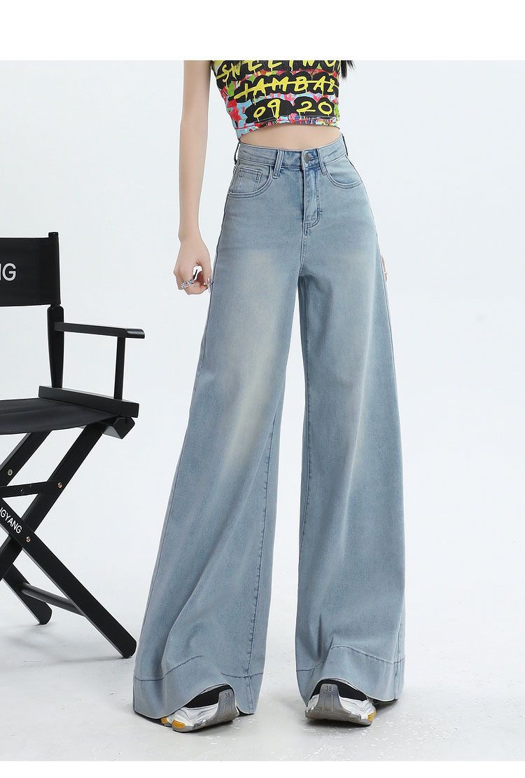 Nuevos pantalones vaqueros holgados de primavera 2025 que combinan con todo, pantalones elásticos de fregona, pierna ancha, azul claro, ajustados, de cintura alta para mujer