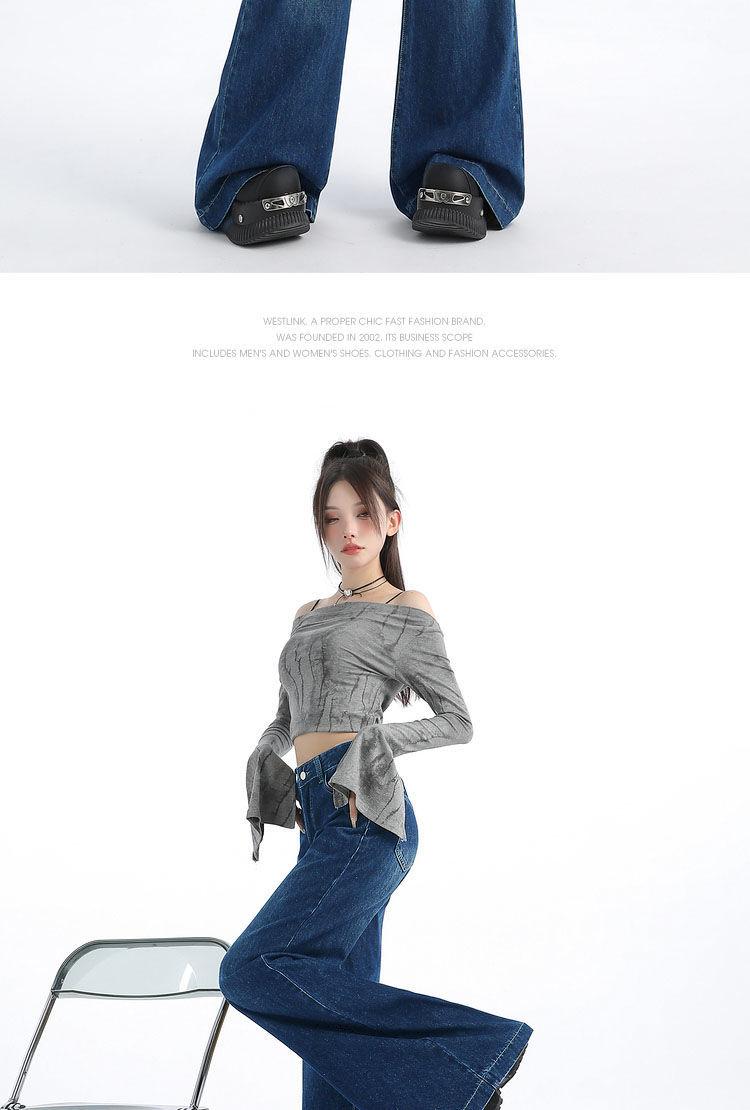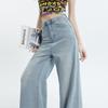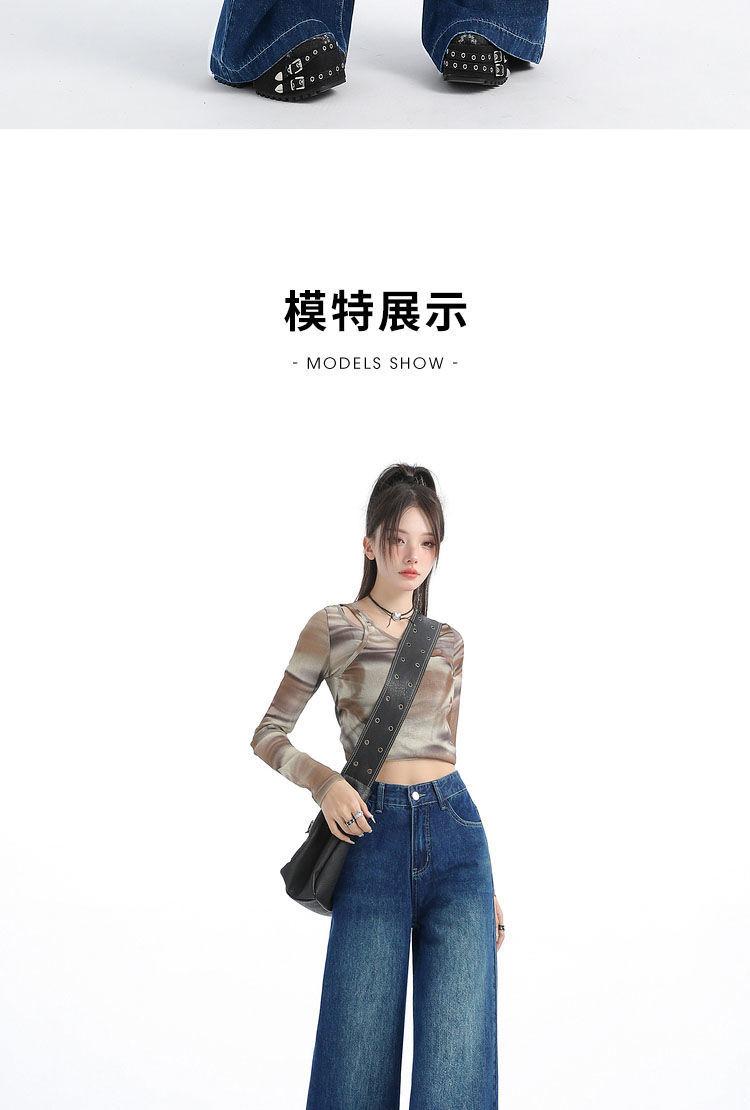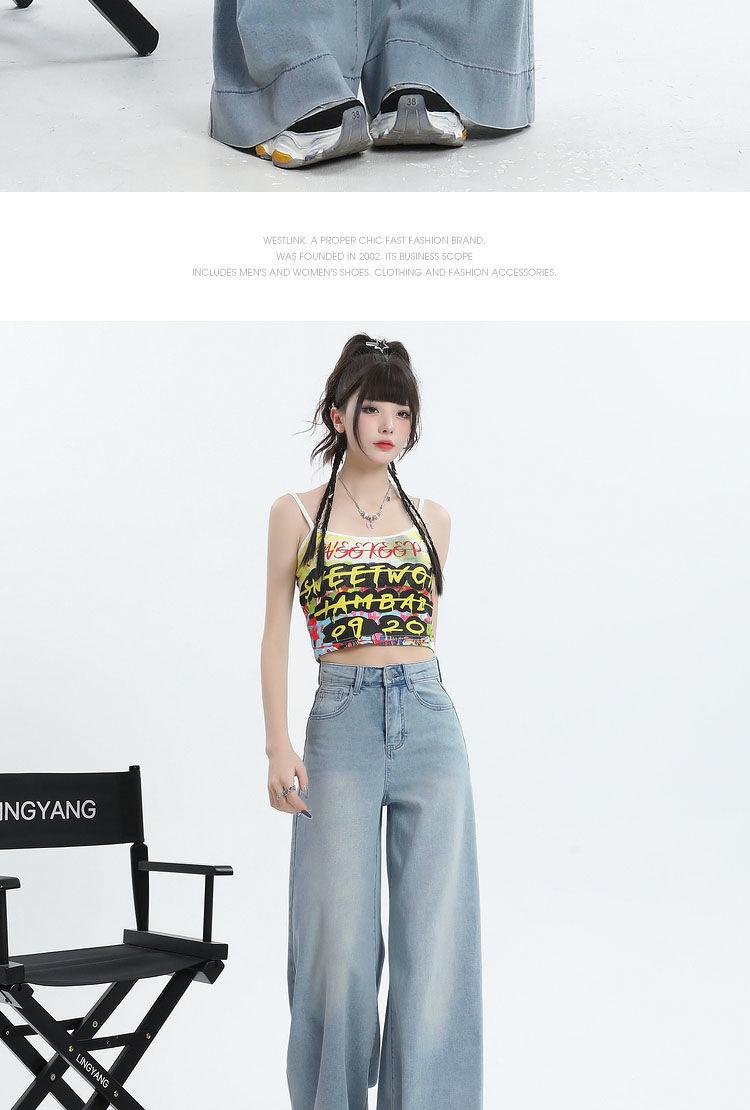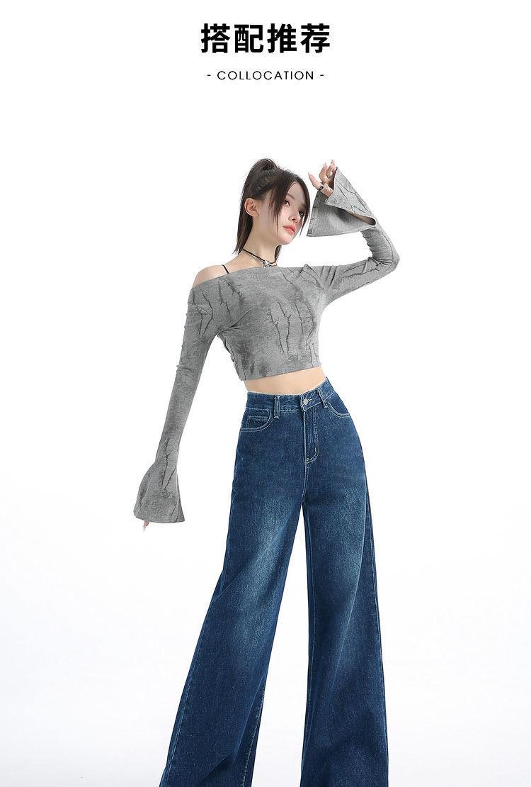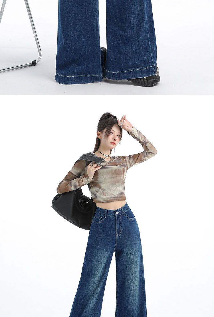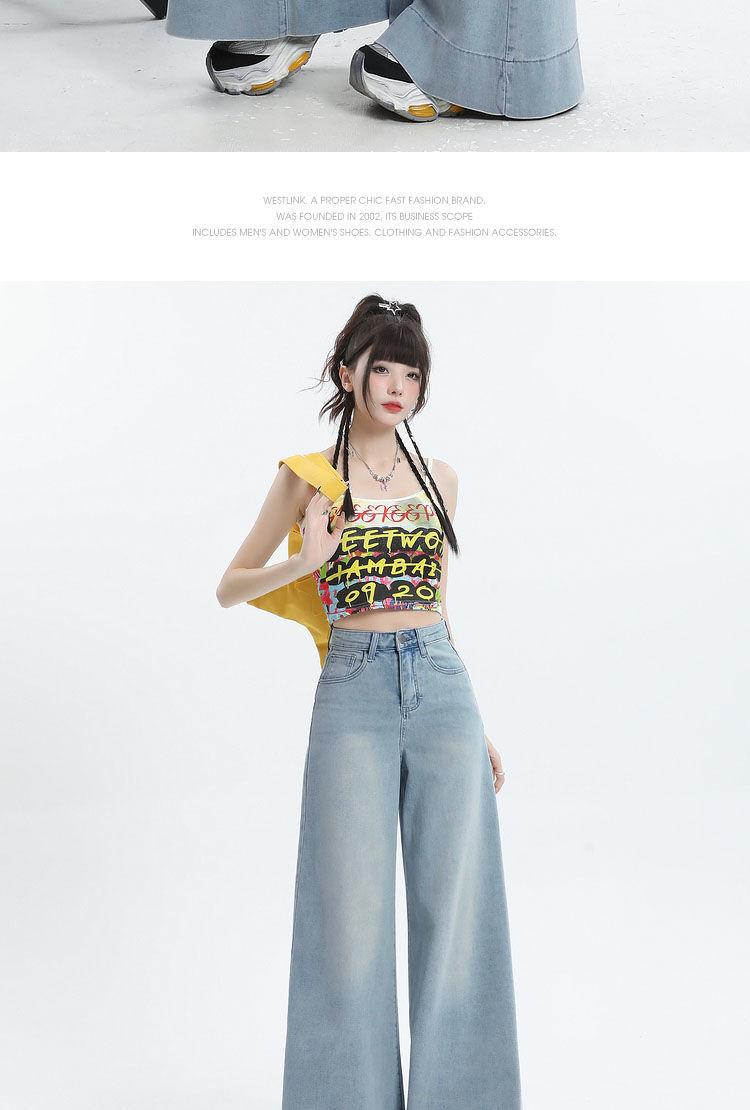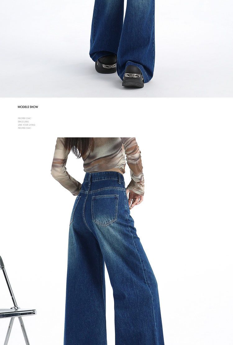 Nuevos pantalones vaqueros holgados de primavera 2025 que combinan con todo, pantalones elásticos de fregona, pierna ancha, azul claro, ajustados, de cintura alta para mujer