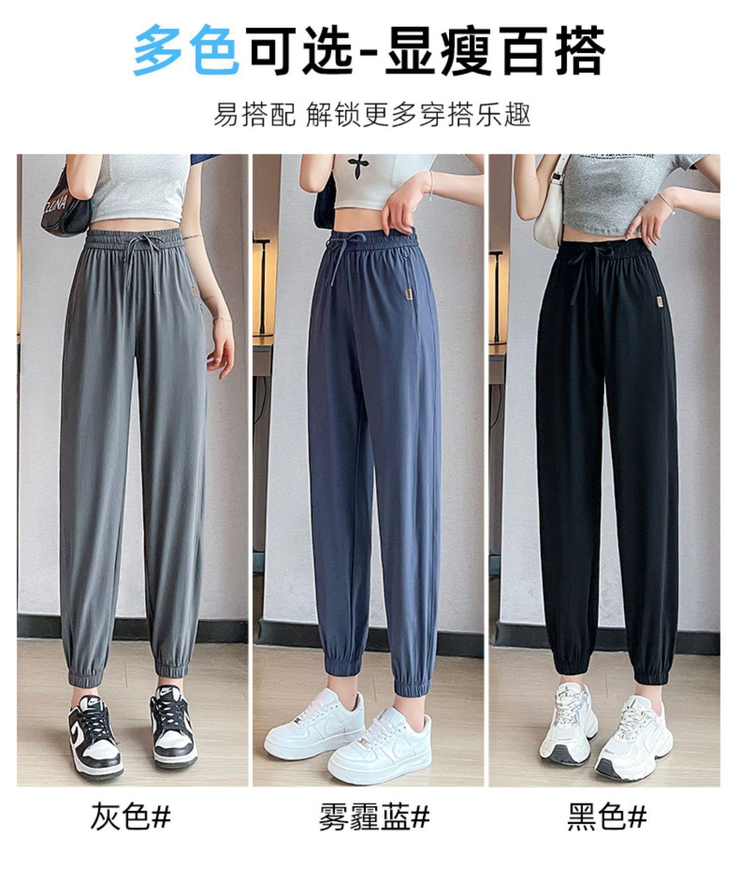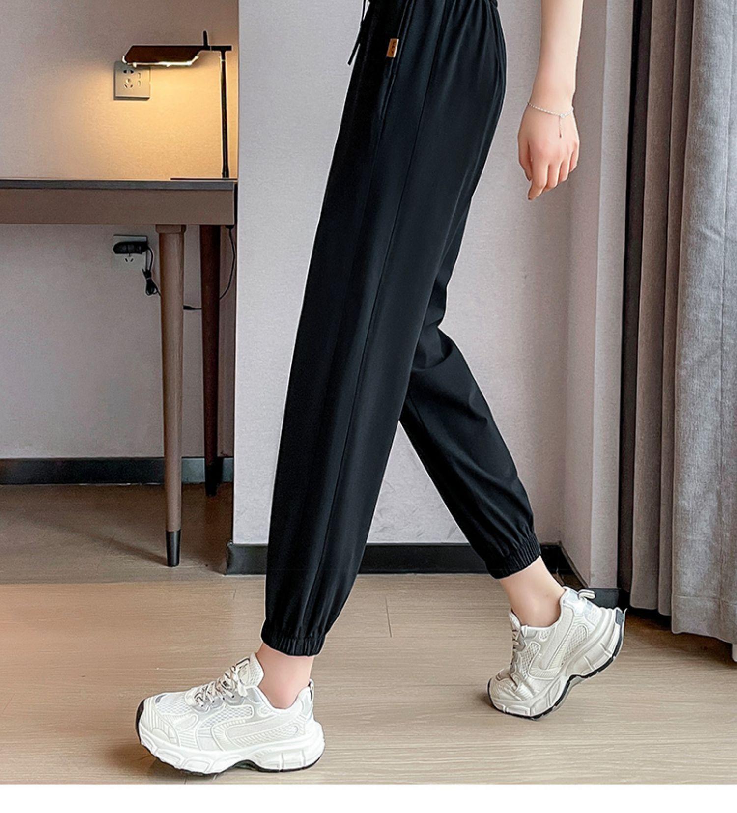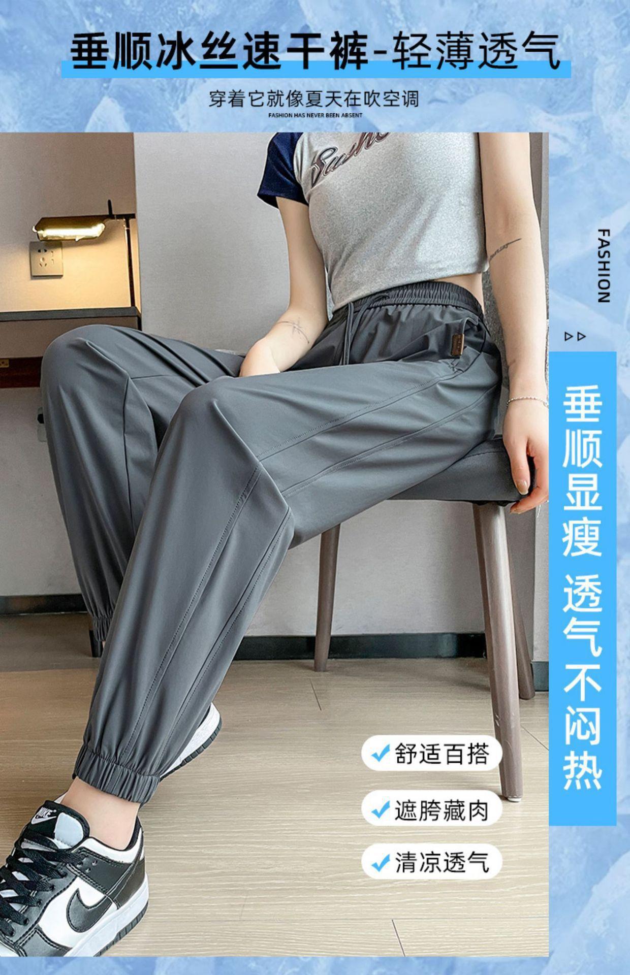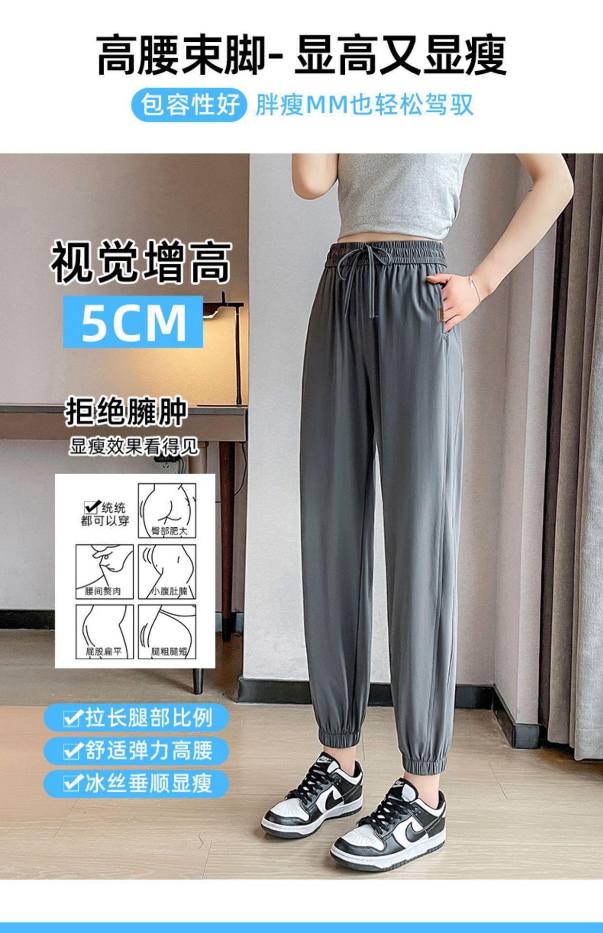 Pantalones Deportivos Nuevos de Seda de Hielo de Verano 2024 para Mujer, Delgados, de Cintura Alta, Adelgazantes, Frescos, de Secado Rápido, Sueltos, de Talla Grande, Pantalones Casuales