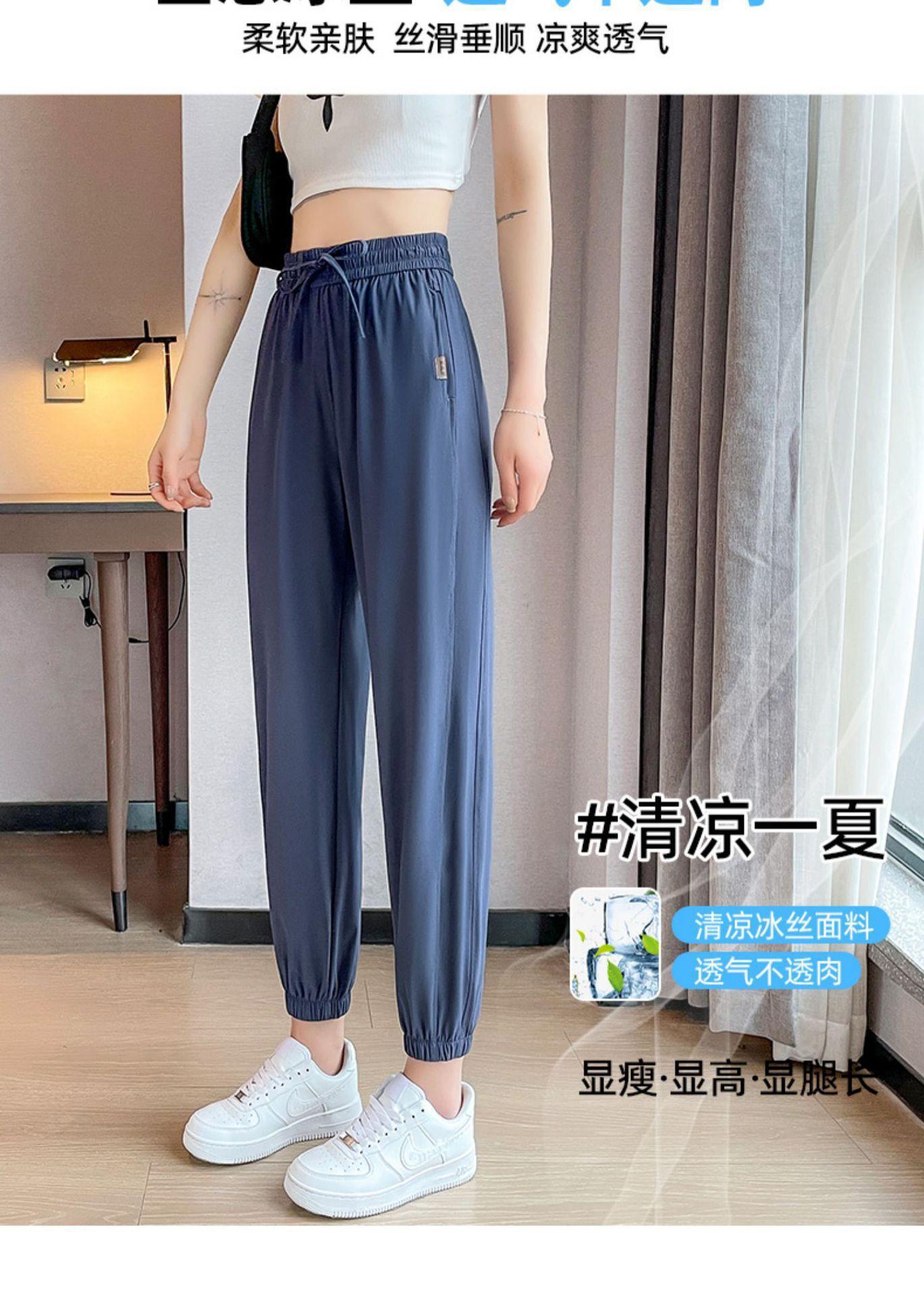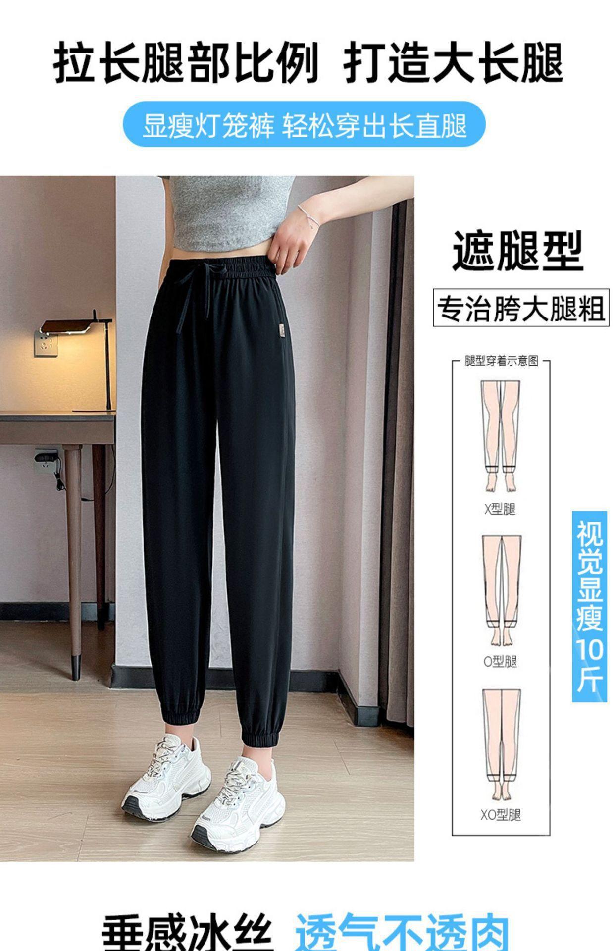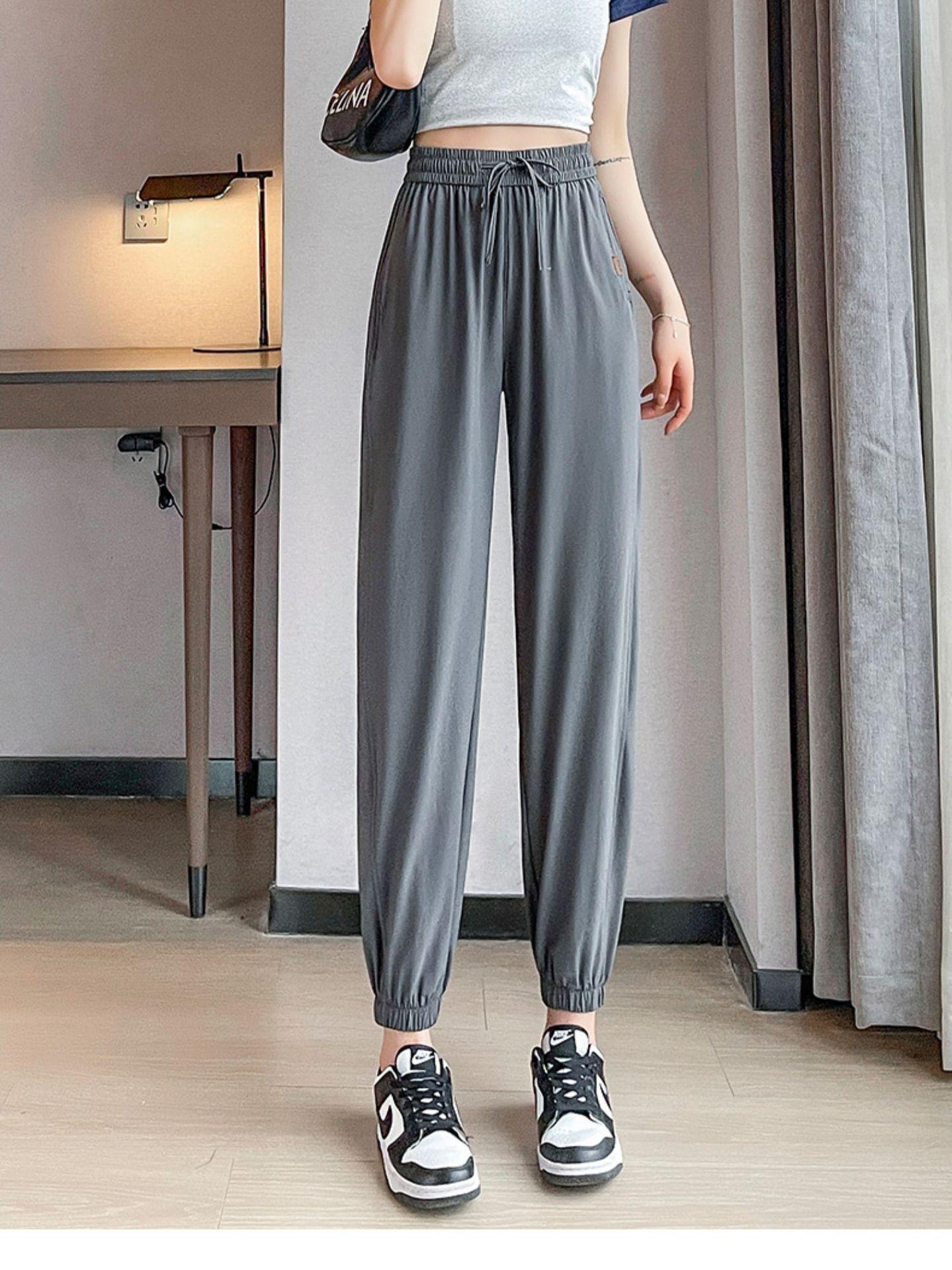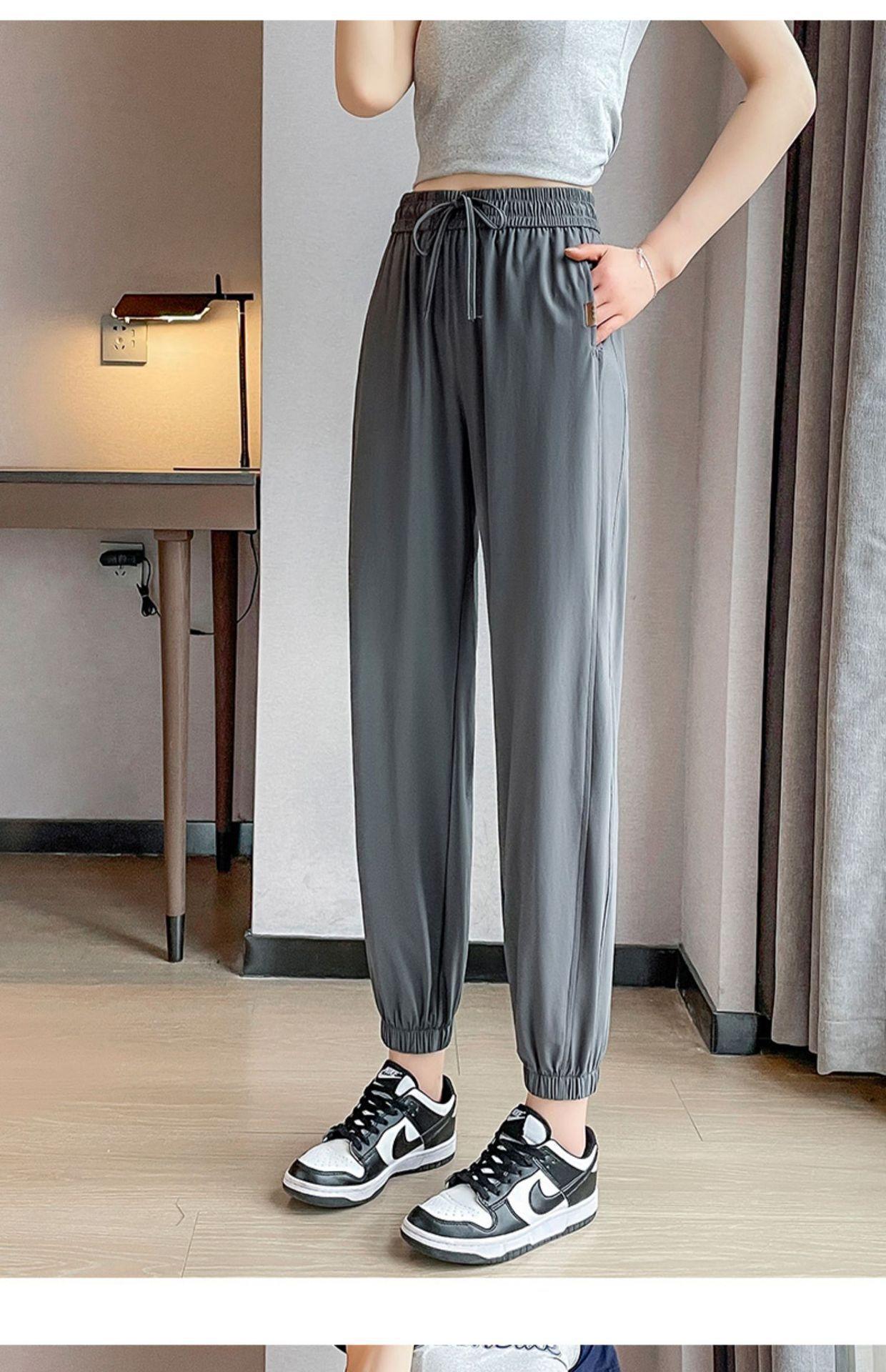 Pantalones Deportivos Nuevos de Seda de Hielo de Verano 2024 para Mujer, Delgados, de Cintura Alta, Adelgazantes, Frescos, de Secado Rápido, Sueltos, de Talla Grande, Pantalones Casuales
