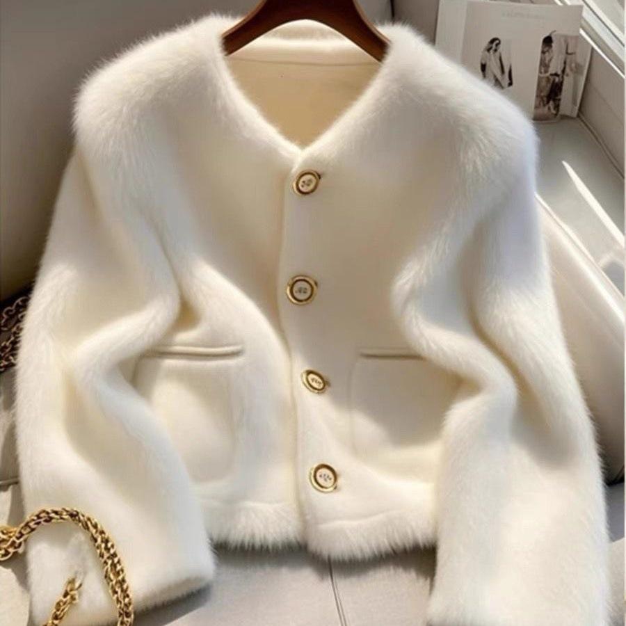 Abrigo nuevo de visón para mujer otoño e invierno 2024, abrigo de piel de una pieza de imitación, abrigo grueso de felpa estilo pequeño Chanel para mujer