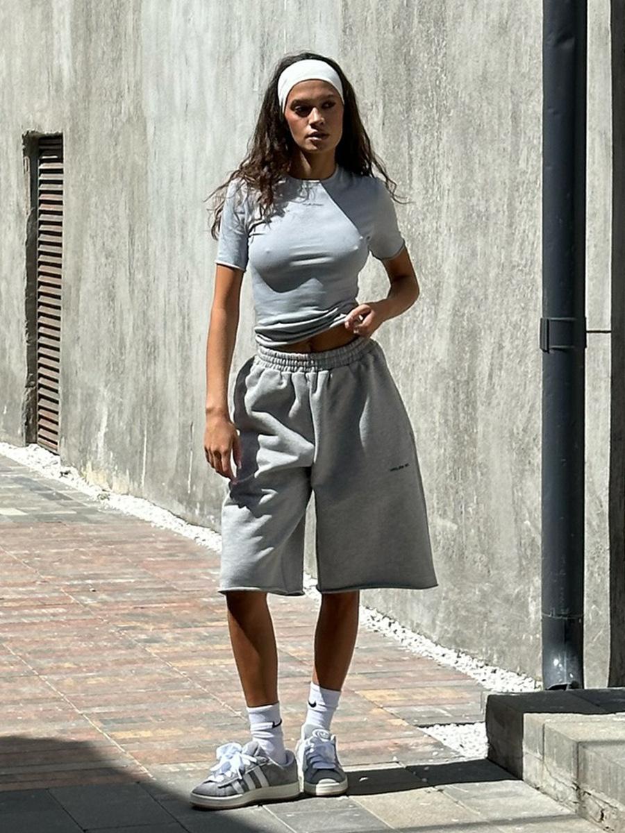 Pantalones cortos de algodón transfronterizos para mujer, estilo europeo y americano, novedad de verano 2025, pantalones deportivos casuales, cómodos, holgados y con cintura suelta.