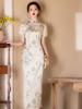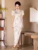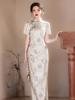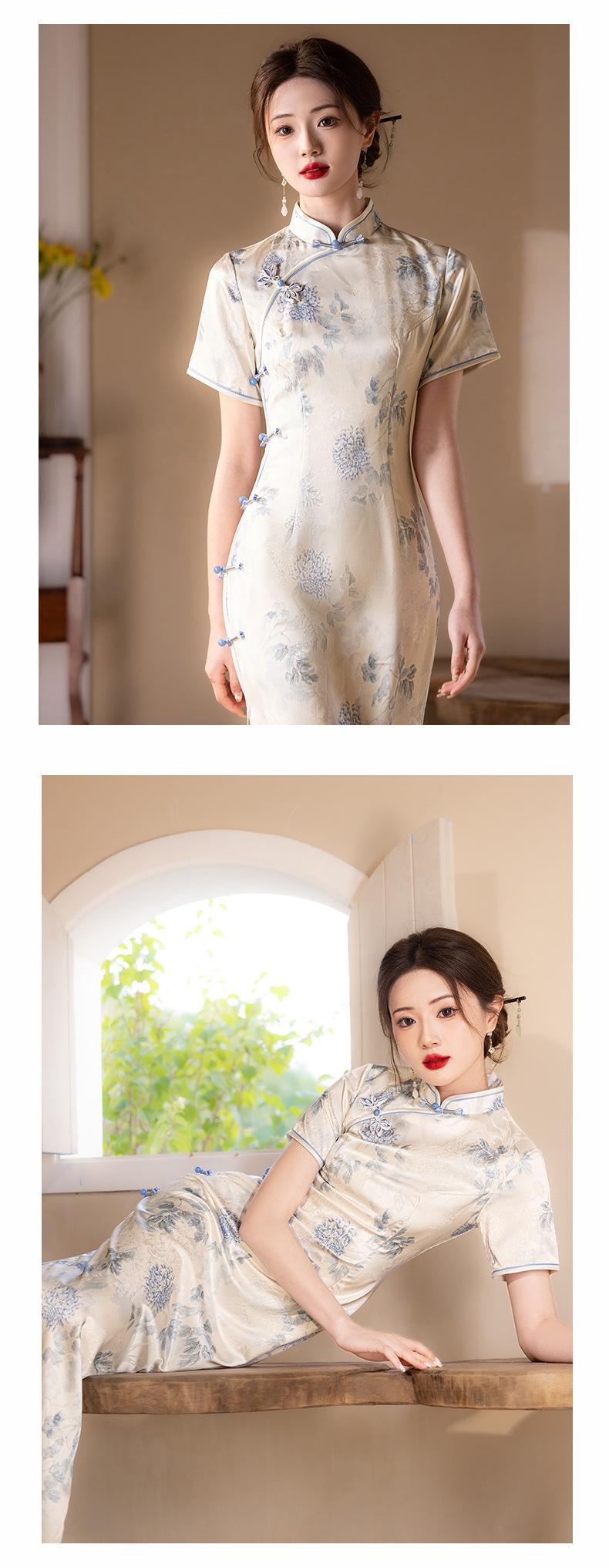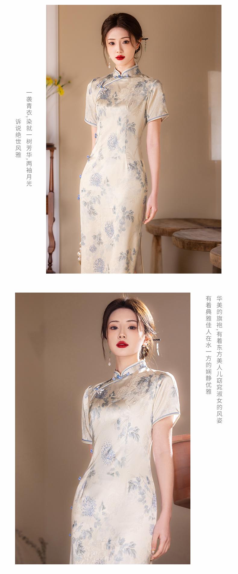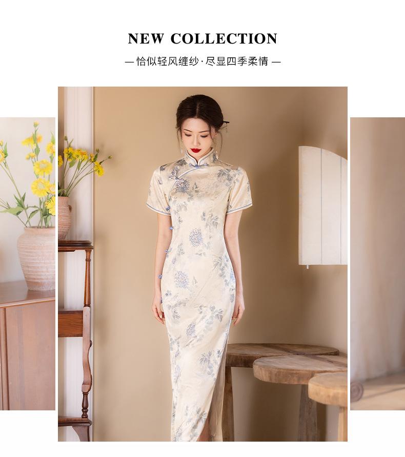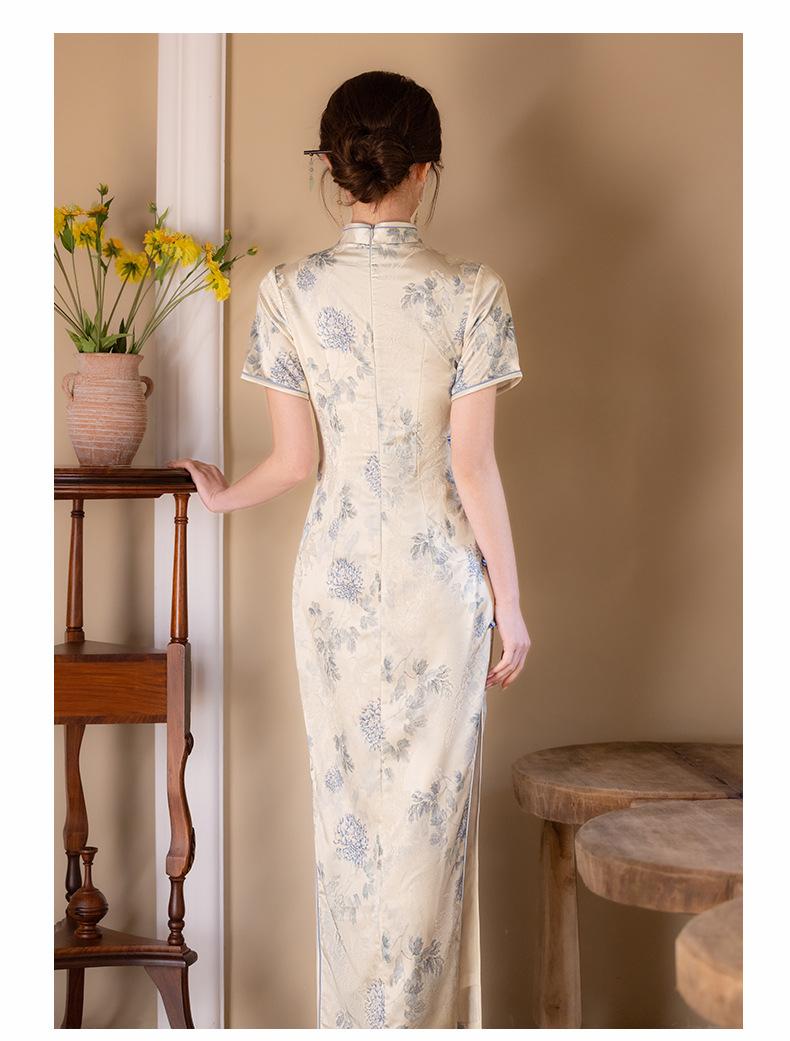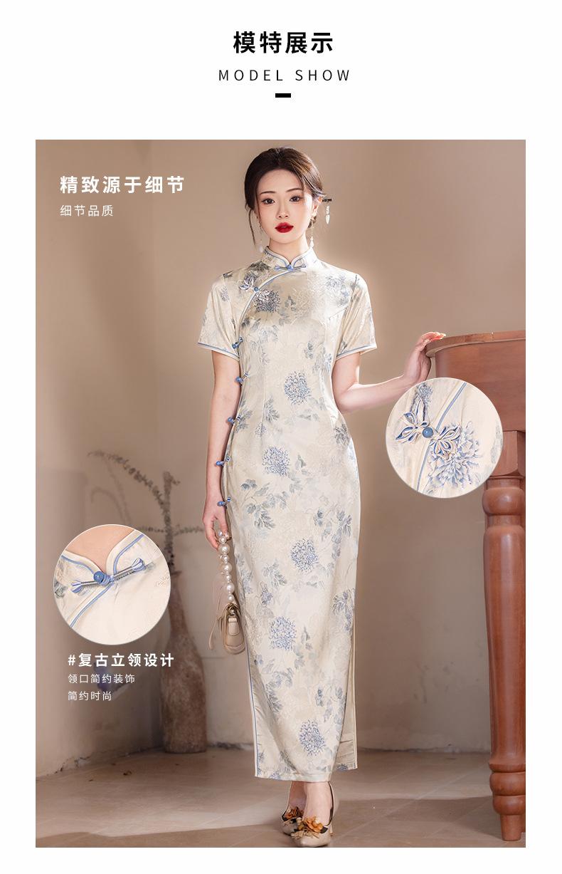Cheongsam de manga corta estilo chino retro 2025 para mujer, vestido largo fresco y elegante mejorado.