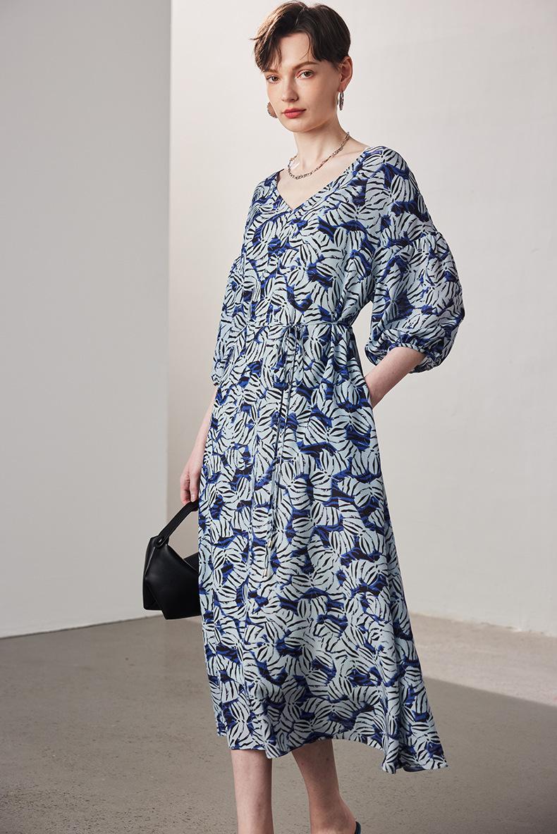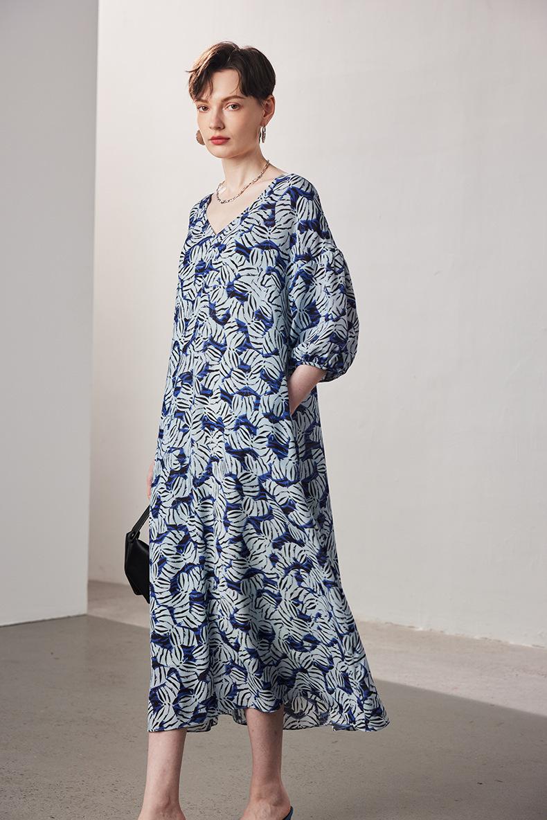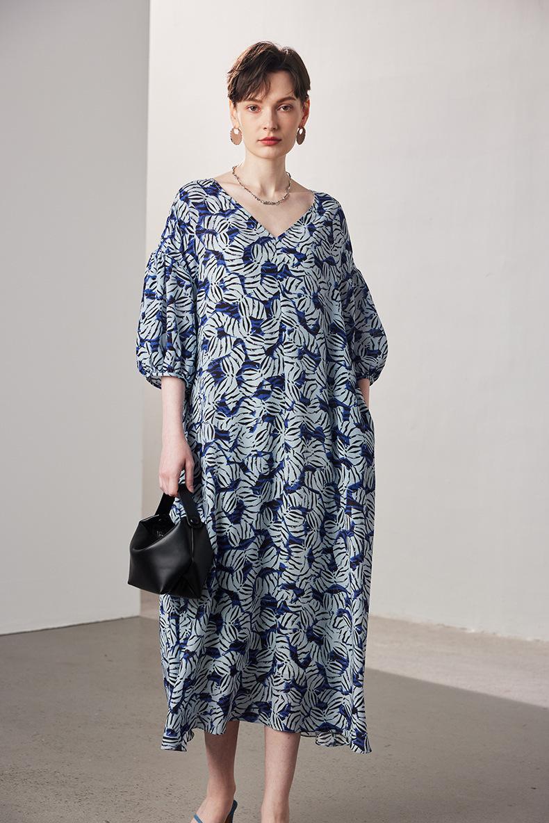 Vestido de seda de manga corta para mujer 2025 primavera y verano nuevo suelto recto sin forro estampado crepé de china 100% seda de morera falda