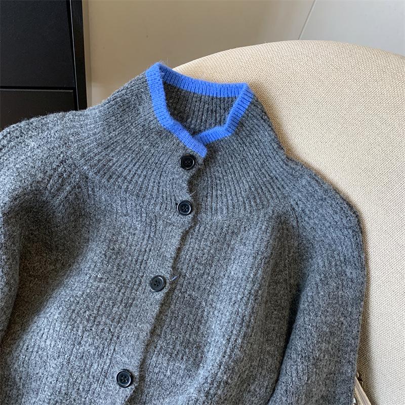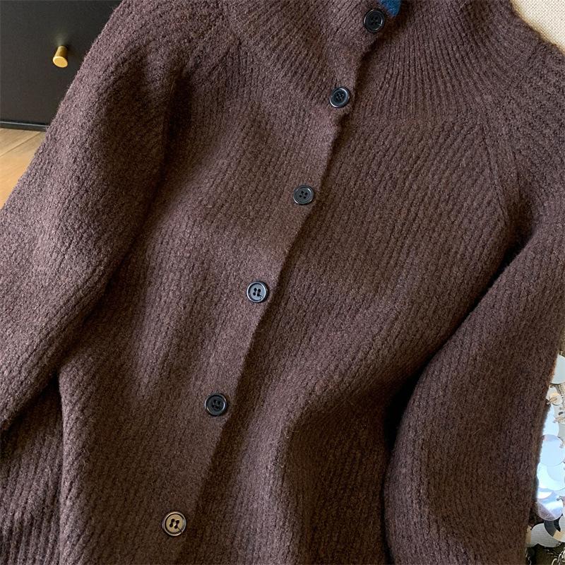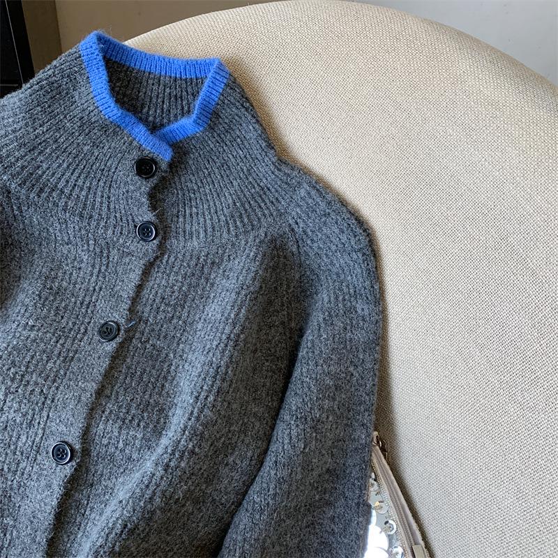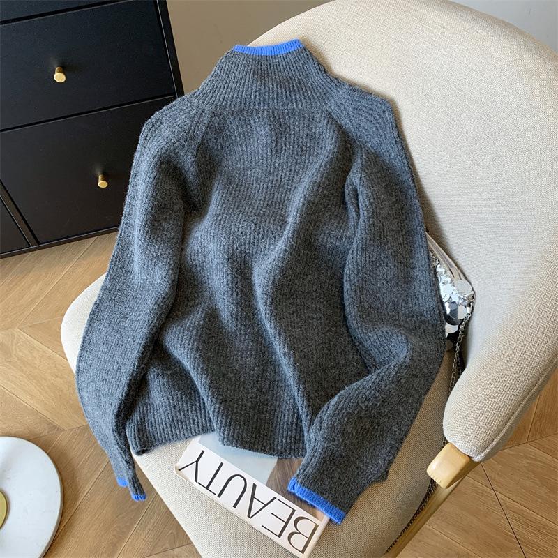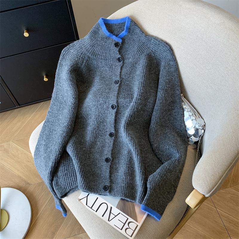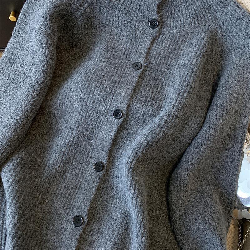 Suéter de Cuello Alto Gris Perezoso para Mujer, Cárdigan Tejido de Lana Suave, Ceroso y Amigable con la Piel, Top de Otoño e Invierno