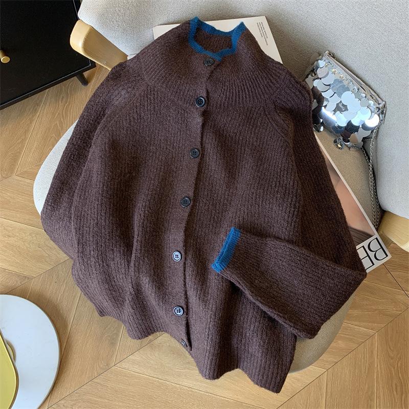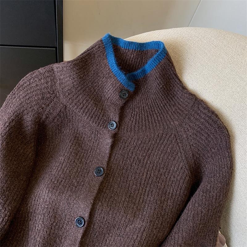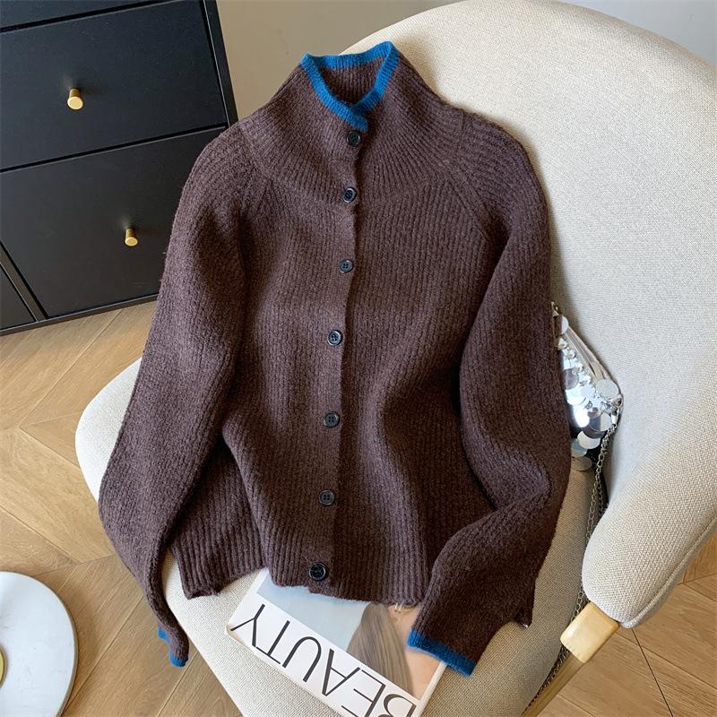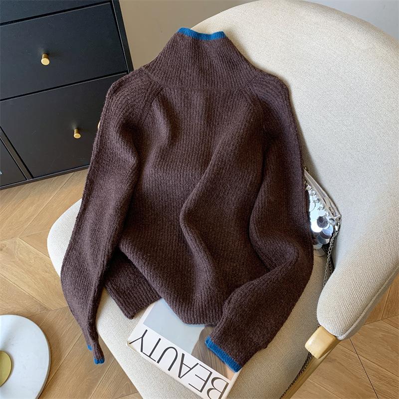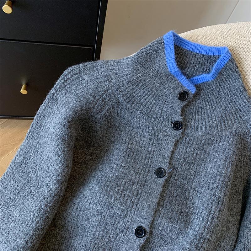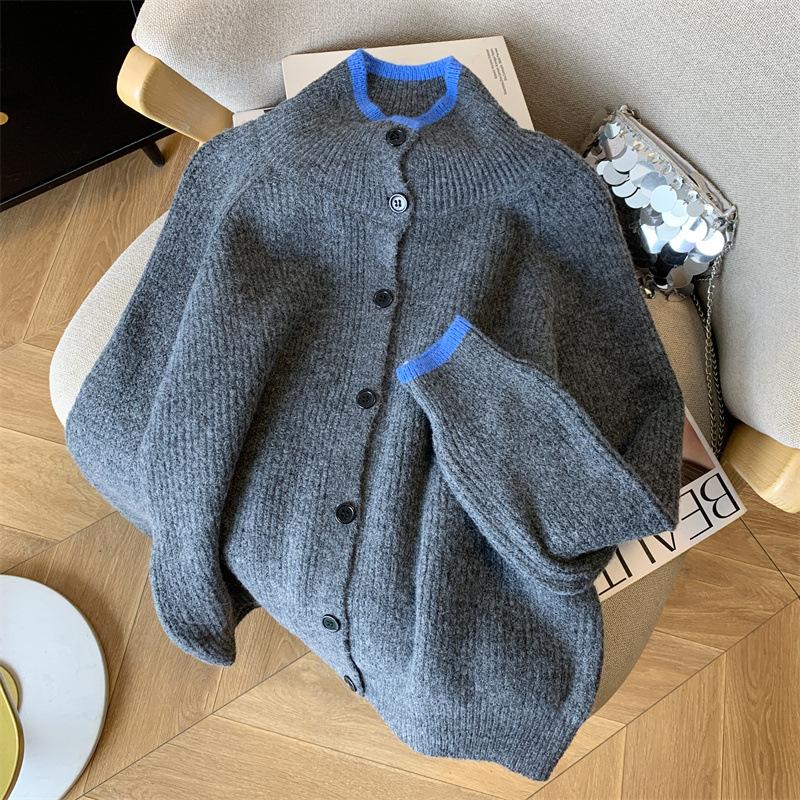 Suéter de Cuello Alto Gris Perezoso para Mujer, Cárdigan Tejido de Lana Suave, Ceroso y Amigable con la Piel, Top de Otoño e Invierno