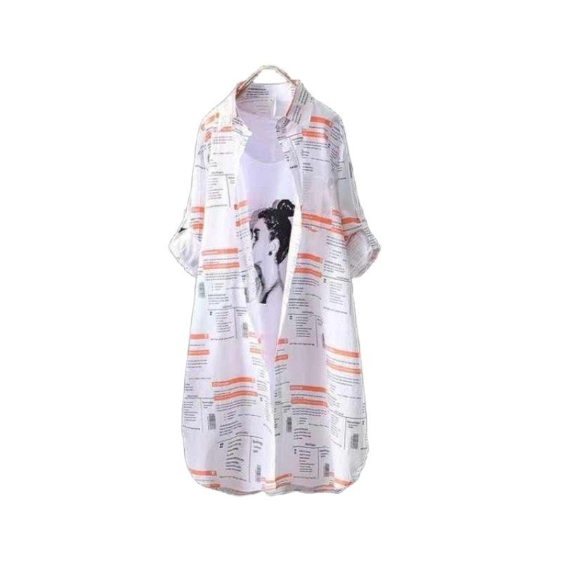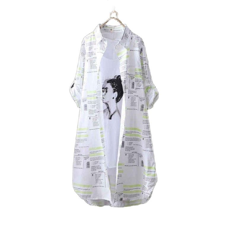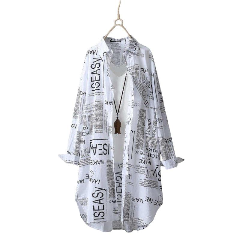 Camisa Nueva de Largo Medio para Mujer Diseño Artístico de Moda Estampado de Letras Suelta Versátil Protección Solar Chaqueta Cárdigan